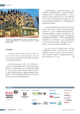 NORTHAFRICA 2024www.iccx.org SupportersPlatinum Sponsor Silver Sponsor Organisation Official AirlinesICCX%u4e13%u680f10 CPI %u2013 %u56fd%u9645%u6df7%u51dd%u571f%u751f%u4ea7%u5382 %u2013 5 | 2025 www.cpi-worldwide.com%u8be6%u60c5%u8bf7%u54a8%u8be2%u52a0%u6c14%u6df7%u51dd%u571f %u52a0%u6c14%u6df7%u51dd%u571f%u8bae%u9898%u4eca%u5e74%u4ea6%u5c06%u5728 Casablanca %u5361%u8428%u5e03%u5170%u5361%u4f1a%u8bae%u4e2d%u5360%u636e%u4e00%u5e2d%u4e4b%u5730%u3002Delta Building Systems %u6267%u884c%u4e3b%u5e2dAmany Arafa %u5c06%u5206%u4eab%u5176%u5728%u57c3%u53ca%u5e94%u7528%u52a0%u6c14%u6df7%u51dd%u571f%u7684%u7ecf%u9a8c%u53ca%u5176%u5bf9%u5317%u975e%u5176%u4ed6%u56fd%u5bb6%u7684%u501f%u9274%u4ef7%u503c%u3002 Delta Building Systems%uff08DBS%uff09%u4f5c%u4e3a%u4e00%u5bb6%u57c3%u53ca%u4f01%u4e1a%uff0c%u6b63%u901a%u8fc7%u5c06%u751f%u6001%u4e0e%u57fa%u7840%u8bbe%u65bd%u6311%u6218%u8f6c%u5316%u4e3a%u6c14%u5019%u53cb%u597d%u578b%u521b%u65b0%u673a%u9047%uff0c%u91cd%u65b0%u5b9a%u4e49%u5317%u975e%u5efa%u7b51%u9886%u57df%u683c%u5c40%u3002%u57fa%u4e8e%u5bf9%u53ef%u6301%u7eed%u53d1%u5c55%u7684%u6e05%u6670%u613f%u666f%uff0cDBS %u5df2%u53d1%u5c55%u6210%u4e3a%u6574%u5408%u73af%u4fdd%u5b9e%u8df5%u4e0e%u5c16%u7aef%u6280%u672f%u7684%u533a%u57df%u9886%u5bfc%u8005%u3002%u9762%u5bf9%u65e5%u76ca%u52a0%u5267%u7684%u6c14%u5019%u6ce2%u52a8%u3001%u8d44%u6e90%u77ed%u7f3a%u548c%u5feb%u901f%u57ce%u5e02%u5316%u8fdb%u7a0b%uff0cDBS %u81f4%u529b%u4e8e%u5f00%u53d1%u4e0d%u4ec5%u5177%u5907%u97e7%u6027%u4e14%u80fd%u9002%u5e94 North Africa %u5317%u975e%u72ec%u7279%u751f%u6001%u4e0e%u793e%u4f1a%u7ecf%u6d4e%u6761%u4ef6%u7684%u5efa%u7b51%u89e3%u51b3%u65b9%u6848%u3002%u901a%u8fc7%u91c7%u7528%u5148%u8fdb%u6280%u672f%u3001%u53ef%u6301%u7eed%u6750%u6599%u53ca%u8282%u80fd%u8bbe%u8ba1%uff0c%u8be5%u516c%u53f8%u6210%u529f%u7814%u53d1%u4e86%u65e2%u80fd%u964d%u4f4e%u73af%u5883%u8d1f%u8377%uff0c%u53c8%u80fd%u63d0%u5347%u7ed3%u6784%u5b8c%u6574%u6027%u4e0e%u957f%u671f%u6027%u80fd%u7684%u521b%u65b0%u5de5%u6cd5%u3002%u501f%u52a9%u6218%u7565%u5408%u4f5c%u4f19%u4f34%u5173%u7cfb%u3001 rigorous %u7814%u7a76%u4f53%u7cfb%u4ee5%u53ca%u5bf9%u80fd%u529b%u5efa%u8bbe%u7684%u575a%u5b9a%u627f%u8bfa%uff0cDBS %u6b63%u8d4b%u80fd%u5f53%u5730%u793e%u533a%u4e0e%u4e13%u4e1a%u7fa4%u4f53%uff0c%u63a8%u52a8%u73af%u4fdd%u5efa%u7b51%u6280%u672f%u7684%u89c4%u6a21%u5316%u5e94%u7528%u3002%u8fd9%u4e9b%u5b9e%u8df5%u5df2%u50ac%u751f%u9694%u70ed%u9694%u97f3%u521b%u65b0%u89e3%u51b3%u65b9%u6848%uff0c%u5e76%u5728%u57fa%u7840%u8bbe%u65bd%u9879%u76ee%u4e2d%u5b9e%u73b0%u78b3%u8db3%u8ff9%u7684%u663e%u8457%u524a%u51cf%u3002%u4ece%u5176%u5728%u653f%u7b56%u5021%u5bfc%u9886%u57df%u7684%u9886%u5bfc%u4f5c%u7528%u5230%u53c2%u4e0e%u6807%u6746%u6027%u9879%u76ee%u7684%u5b9e%u8df5%uff0cDBS %u5145%u5206%u5c55%u793a%u4e86%u79c1%u8425%u90e8%u95e8%u521b%u65b0%u5982%u4f55%u6709%u6548%u63a8%u52a8%u5b9e%u8d28%u6027%u6c14%u5019%u884c%u52a8%u3002%u8be5%u4f01%u4e1a%u4ece%u613f%u666f%u5230%u5b9e%u6548%u7684%u53d1%u5c55%u5386%u7a0b%u8bc1%u660e%uff1a%u53ef%u6301%u7eed%u6027%u5e76%u975e%u9650%u5236%u56e0%u7d20%uff0c%u800c%u662f%u589e%u957f%u4e0e%u8f6c%u578b%u7684%u50ac%u5316%u5242%u3002%u9762%u5bf9North Africa %u5317%u975e%u5730%u533a%u7d27%u8feb%u7684%u6c14%u5019%u6311%u6218%uff0cDBS %u6301%u7eed%u4e3a%u6c14%u5019%u53cb%u597d%u578b%u5efa%u7b51%u9886%u57df%u8bbe%u7acb%u65b0%u6807%u6746%uff0c%u4e3a%u6574%u4e2a%u5730%u533a%u53ca%u5176%u4ed6%u9886%u57df%u63d0%u4f9b%u53ef%u590d%u5236%u7684%u8303%u5f0f%u3002%u4f5c%u4e3a%u52a0%u6c14%u6df7%u51dd%u571f%uff08AAC%uff09%u9886%u57df%u7684%u5e02%u573a%u9886%u5bfc%u8005%uff0cDBS %u4e3a%u57c3%u53ca%u53ca%u5468%u8fb9%u56fd%u5bb6%u5de5%u5382%u63d0%u4f9b%u6db5%u76d6%u4ea7%u54c1%u5236%u9020%u3001%u5e02%u573a%u8425%u9500%u3001%u8bbe%u8ba1%u54a8%u8be2%u548c%u5de5%u7a0b%u670d%u52a1%u7684%u5168%u94fe%u6761%u89e3%u51b3%u65b9%u6848%u3002%u8bf7%u4e8e 10 %u6708 29 %u65e5%u81f3 30 %u65e5%u63d0%u524d%u6ce8%u518c%u6d3b%u52a8%uff0c%u9501%u5b9a%u8fd9%u573a%u884c%u4e1a%u72ec%u7279%u76db%u4f1a%u7684%u5165%u573a%u51ed%u8bc1%u3002ICCX-North Africa %u5317%u975e 2025%u5c06%u7ee7%u7eed%u9009%u5740 Casablanca. %u5361%u8428%u5e03%u5170%u5361 Barcel%u00f3 Anfa %u9152%u5e97%u3002%u66f4%u591a%u5173%u4e8e%u89c2%u4f17%u53c2%u5c55%u3001%u5c55%u5546%u53c2%u4e0e%u3001%u4ea4%u901a%u6307%u5357%u53ca%u9152%u5e97%u9884%u8ba2%u4fe1%u606f%uff0c%u8bf7%u8bbf%u95ee%u6d3b%u52a8%u5b98%u7f51 www.iccx.org%u3002 %u25a0%u7b2c%u56db%u5c4a ICCX %u5317%u975e%u5cf0%u4f1a%u5c06%u7ee7%u7eed%u9009%u5740%u5361%u8428%u5e03%u5170%u5361%u5df4%u585e%u7f57%u5b89%u6cd5%u9152%u5e97%u3002%u8be5%u573a%u5730%u5b8c%u7f8e%u878d%u5408%u5c55%u89c8%u7a7a%u95f4%u3001%u4e13%u4e1a%u4f1a%u8bae%u4e0e%u665a%u95f4%u4ea4%u6d41%u6d3b%u52a8%uff0c%u5b9e%u73b0%u7406%u60f3%u7684%u6d3b%u52a8%u4f53%u9a8c