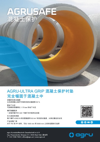 AGRUSAFE %u6df7%u51dd%u571f%u4fdd%u62a4AGRU-ULTRA GRIP %u6df7%u51dd%u571f%u4fdd%u62a4%u886c%u57ab %u5b8c%u5168%u951a%u56fa%u4e8e%u6df7%u51dd%u571f%u4e2d%u5353%u8d8a%u7684%u6297%u62d4%u51fa%u5f3a%u5ea6%u6bd4%u4f20%u7edf%u6df7%u51dd%u571f%u4fdd%u62a4%u886c%u677f%u7684%u6297%u62d4%u51fa%u5f3a%u5ea6%u9ad8 50 %%u8010%u5730%u4e0b%u6c34%u538b%u53ef%u6301%u7eed%u627f%u53d7%u6700%u9ad8%u8fbe 1.75 bar %u7684%u5730%u4e0b%u6c34%u538b%u951a%u9489%u6570%u91cf%u6781%u591a%u4e00%u6b65%u5c31%u5c06%u6bcf%u5e73%u7c73 420 %u4e2a%u951a%u9489%u4e0e%u886c%u677f%u6324%u538b%u6210%u578b%u6c38%u4e45%u5bc6%u5c01%u7684%u8868%u9762%u6bcf%u4e2a%u951a%u9489>2200 N %u7684%u6297%u526a%u5f3a%u5ea6%u548c 82 t/m%u00b2 %u7684%u6297%u62d4%u51fa%u5f3a%u5ea6%uff0c%u4ee5%u4fdd%u8bc1%u6700%u4f73%u5b89%u5168%u6027%u4ea7%u54c1%u8303%u56f4%u5e7f%u9614%u5bf9%u4e8e PE %u548c PP %u6750%u6599%uff0c%u53ef%u5728 1500 mm %u548c 5000 mm %u4e4b%u95f4%u7684%u8303%u56f4%u8fdb%u884c%u9009%u62e9agru Kunststofftechnik Gesellschaft m.b.H. Ing.-Pesendorfer-Strasse 31 | 4540 Bad Hall, %u5965%u5730%u5229T. +43 7258 7900 | office@agru.at | www.agru.at