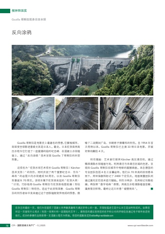 Photos: TM & %u00a9 TOHO CO., LTD., provided by K%u00e4rcher%u5728%u6742%u5fd7%u7684%u6700%u540e%u4e00%u9875%uff0c%u6211%u4eec%u4e3a%u60a8%u63d0%u4f9b%u4e86%u6df7%u51dd%u571f%u4e16%u754c%u517c%u5177%u8da3%u5473%u4e0e%u6ee1%u8db3%u597d%u5947%u5fc3%u7684%u4e00%u9762%uff0c%u5e76%u7b80%u77ed%u63cf%u8ff0%u5b83%u662f%u4ec0%u4e48%u4e14%u5b83%u662f%u5982%u4f55%u5f62%u6210%u7684%u3002%u5982%u679c%u60a8%u5bf9%u8fd9%u4e00%u9875%u9762%u6709%u4ec0%u4e48%u89c2%u70b9%uff08%u5305%u62ec%u4e00%u5f20%u7167%u7247%u548c%u4e00%u6bb5%u7b80%u77ed%u7684%u6587%u5b57%uff09%uff0c%u8bf7%u5c06%u60a8%u7684%u5efa%u8bae%u8fde%u540c%u60a8%u7684%u540d%u5b57%u548c%u516c%u53f8%u7684%u8be6%u7ec6%u4fe1%u606f%u901a%u8fc7%u7535%u5b50%u90ae%u4ef6%u53d1%u9001%u7ed9%u6211%u4eec%u3002%u6210%u529f%u7684%u53c2%u8d5b%u4f5c%u54c1%u5c06%u83b7%u5f97%u4e00%u652f%u6df7%u51dd%u571f%u7b14%u4f5c%u4e3a%u5956%u52b1%u3002%u5c06%u60a8%u7684%u63d0%u6848%u53d1%u9001%u81f3editor@cpi-worldwide.com78 CPI %u2013 %u56fd%u9645%u6df7%u51dd%u571f%u751f%u4ea7%u5382 %u2013 5 | 2025 www.cpi-worldwide.com%u6405%u62cc%u548c%u538b%u5b9eGozilla %u54e5%u65af%u62c9%u73b0%u8eab%u65e5%u672c%u6c34%u575d%u53cd%u5411%u6d82%u9e26Gozilla %u54e5%u65af%u62c9%u662f%u7535%u5f71%u53f2%u4e0a%u6700%u8457%u540d%u7684%u602a%u517d%uff0c%u5b83%u6467%u6bc1%u57ce%u5e02%uff0c%u5374%u6df1%u53d7%u5168%u7403%u5f71%u8ff7%u559c%u7231%u5c24%u5176%u662f%u65e5%u672c%u4eba%u3002%u6700%u8fd1%uff0c%u65e5%u672c%u4f50%u8d3a%u53bf%u7528%u9ad8%u538b%u6c34%u67aa%u4e3a%u5b83%u6253%u9020%u4e86%u4e00%u5ea7%u9707%u64bc%u7684%u4e34%u65f6%u7eaa%u5ff5%u7891%uff1a%u5728%u6df7%u51dd%u571f%u6c34%u575d%u5899%u9762%u4e0a%uff0c%u901a%u8fc7 \%u5f62%u8c61%u3002 %u8fd9%u9879%u540d%u4e3a \%u6280%u672f%u652f%u6301%uff09\%u753b%u5e03 \%u5f62%u8c61%u8bde%u751f 70 %u5468%u5e74%u3002%u8be5%u9879%u76ee%u5c5e%u4e8e%u4f50%u8d3a%u53bf%u53d1%u8d77%u7684 \\ %u8ba1%u5212%uff0c%u5de7%u5999%u5730%u5c06 Gozilla %u54e5%u65af%u62c9%u4e0e%u4f50%u8d3a%u53bf%u5730%u56fe%u8f6e%u5ed3%uff08%u5f62%u4f3cGozilla %u54e5%u65af%u62c9%uff09%u76f8%u7ed3%u5408%u3002%u9009%u5740%u4e8e%u6b64%u522b%u6709%u6df1%u610f%uff1aGozilla %u54e5%u65af%u62c9%u7684%u521b%u4f5c%u8005%u7530%u4e2d%u53cb%u5e78%u901a%u8fc7%u8fd9%u4e2a%u56e0%u6838%u8f90%u5c04%u53d8%u5f02%u800c%u6210%u7684%u602a%u517d%uff0c%u9690%u55bb%u4e86%u4e8c%u6218%u671f%u95f4%u5e7f%u5c9b%u3001%u957f%u5d0e%u539f%u5b50%u5f39%u7206%u70b8%u7684%u521b%u4f24%u3002%u81ea 1954 %u5e74%u9996%u6b21%u4eae%u76f8%u4ee5%u6765%uff0cGozilla %u54e5%u65af%u62c9%u5df2%u4e3b%u6f14 33 %u90e8%u65e5%u672c%u7535%u5f71%uff0c%u5e76%u88ab%u597d%u83b1%u575e%u7ffb%u62cd 4 %u6b21%u3002 %u521b%u4f5c%u63ed%u79d8%uff1a%u827a%u672f%u5bb6%u4eec%u4f7f%u7528 K%u00e4rcher %u9ad8%u538b%u6e05%u6d17%u673a%uff0c%u901a%u8fc7%u7cbe%u51c6%u6e05%u9664%u6c34%u575d%u5899%u9762%u6c61%u57a2%uff0c%u5229%u7528%u6e05%u6d01%u4e0e%u672a%u6e05%u6d01%u533a%u57df%u7684%u8272%u5dee%uff0c%u5448%u73b0%u51fa Gozilla %u54e5%u65af%u62c9%u5728%u57ce%u5e02%u4e2d%u5486%u54ee%u7684%u9707%u64bc%u753b%u9762%u3002%u6765%u81ea%u5fb7%u56fd%u7684%u4e13%u4e1a%u56e2%u961f%u5305%u62ec 4 %u540d%u5de5%u4e1a%u6500%u5ca9%u5e08%uff0c%u4ed6%u4eec%u4ece 70 %u7c73%u9ad8%u7684%u575d%u9876%u60ac%u540a%u800c%u4e0b%uff0c%u7528%u73af%u4fdd%u989c%u6599%u6807%u8bb0%u4e86 2400 %u4e2a%u5b9a%u4f4d%u70b9%u3002%u5730%u9762%u6d4b%u91cf%u56e2%u961f%u5219%u901a%u8fc7%u6fc0%u5149%u5b9a%u4f4d%u6280%u672f%u8fdb%u884c%u8f85%u52a9%u3002%u521b%u4f5c%u5206%u4e24%u6b65%uff1a%u5148%u7528%u6807%u8bb0%u52fe%u52d2%u8f6e%u5ed3%uff0c%u518d%u6309%u7167 \%u85fb%u7c7b%u7b49%u6c89%u79ef%u7269%uff0c%u6700%u7ec8%u8ba9%u8fd9%u53ea%u5de8%u517d \%u25a0