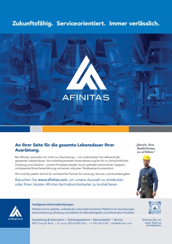 Ausstattung & Automation | Schalungssysteme | Betonzubeh%u00f6r | Service8027 Forsyth Blvd. | St. Louis, MO 63105 USA | +1 314-726-2178 | info@afinitas.comIntelligente Infrastrukturl%u00f6sungenAfinitas ist eine globale, umfassende und kundenorientierte Plattform f%u00fcr Ausr%u00fcstungen, Automatisierung, Schalung und Zubeh%u00f6r f%u00fcr Betonfertigteile und Infrastruktur-Produkte.Zukunftsf%u00e4hig. Serviceorientiert. Immer verl%u00e4sslich.An Ihrer Seite f%u00fcr die gesamte Lebensdauer Ihrer Ausr%u00fcstung.Bei Afinitas verkaufen wir nicht nur Ausr%u00fcstung %u2014 wir unterst%u00fctzen Sie w%u00e4hrend der gesamten Lebensdauer. Von arbeitssparender Automatisierung bis hin zu fortschrittlicher Schalung und Zubeh%u00f6r - unsere Produkte werden durch globalen technischen Support, umfassende Branchenerfahrung und einen robusten Teilebestand unterst%u00fctzt.Wir sind bei jedem Schritt Ihr verl%u00e4sslicher Partner f%u00fcr Leistung, Service und Zuverl%u00e4ssigkeit.Besuchen Sie www.afinitas.com, um unsere Auswahl zu entdecken oder Ihren lokalen Afinitas-Vertriebsmitarbeiter zu kontaktieren.%u201e Bereit, Ihre Bed%u00fcrfnissezu erf%u00fcllen.%u201dScannen Sie, um unser Team zu kontaktieren