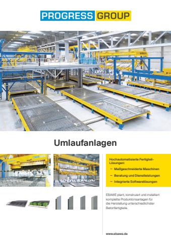 UmlaufanlagenEBAWE plant, konstruiert und installiert komplette Produktionsanlagen f%u00fcr die Herstellung unterschiedlichster Betonfertigteile.Hochautomatisierte FertigteilL%u00f6sungen: %u02db Ma%u00dfgeschneiderte Maschinen%u02db Beratung und Dienstleistungen%u02db Integrierte Softwarel%u00f6sungenwww.ebawe.de