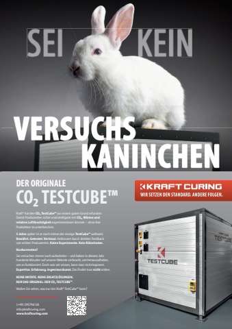 VERSUCHSKANINCHENDER ORIGINALECO2 TESTCUBE%u2122Kraft%u00ae hat den CO2 TestCube%u2122 aus einem guten Grund erfunden: Damit Produzenten sicher und intelligent mit CO2, W%u00e4rme und relative Luftfeuchtigkeit experimentieren k%u00f6nnen %u2013 ohne ihre Produktion zu unterbrechen.5 Jahre sp%u00e4ter ist er noch immer der einzige TestCube%u2122 weltweit. Bew%u00e4hrt. Getestet. Vertraut. Verbessert durch direktes Feedback von echten Produzenten. Keine Experimente. Kein R%u00e4tselraten.Konkurrenten?Sie versuchen immer noch aufzuholen %u2013 und haben in diesem Jahr hunderte Minuten auf unserer Website verbracht, um herauszufi nden, wie es funktioniert. Doch was wir wissen, kann man nicht kopieren. Expertise. Erfahrung. Ingenieurskunst. Das fi ndet man nicht online.KEINE IMITATE. KEINE ERSATZL%u00d6SUNGEN.NUR DAS ORIGINAL: DER CO2 TESTCUBE%u2122.Wollen Sie sehen, was nur der Kraft%u00ae TestCube%u2122 kann?(+49) 595796120info@kraftcuring.comwww.kraftcuring.comSEI KEIN