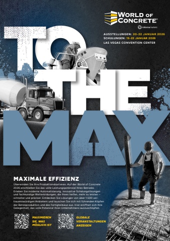 MAXIMALE EFFIZIENZ%u00dcberwinden Sie Ihre Produktionsbarrieren. Auf der World of Concrete 2026 erschlie%u00dfen Sie das volle Leistungspotenzial Ihres Betriebs. Erleben Sie moderne Automatisierung, innovative Schalungsl%u00f6sungen und fachkundige Weiterbildungen, die Ihnen helfen, mehr zu leisten %u2013 schneller und pr%u00e4ziser. Entdecken Sie L%u00f6sungen von %u00fcber 1.500 vertrauensw%u00fcrdigen Anbietern und tauschen Sie sich mit f%u00fchrenden K%u00f6pfen der Betonproduktion und des Fertigteilbaus aus. Hier er%u00f6ffnet sich Ihre Gelegenheit, das volle Potenzial Ihres Unternehmens auszusch%u00f6pfen.MAXIMIEREN SIE, WAS M%u00d6GLICH ISTGLOBALE VERANSTALTUNGEN ANZEIGENLAS VEGAS CONVENTION CENTERSCHULUNGEN: 19-22 JANUAR 2026AUSSTELLUNGEN: 20-22 JANUAR 2026