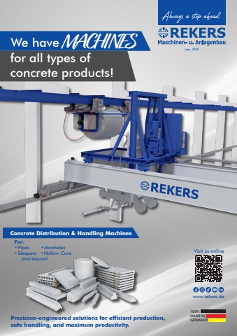 100%MADE INGERMANYwww.rekers.deVisit us onlineConcrete Distribution & Handling MachinesFor:%u2022 Pipes %u2022 Manholes%u2022 Sleepers %u2022 Hollow Core ...and beyondPrecision-engineered solutions for efficient production, safe handling, and maximum productivity.We have for all types of concrete products!MACHINES