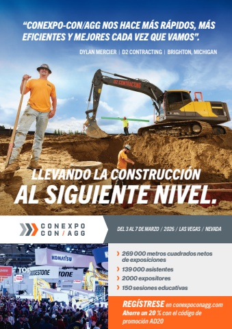 DEL 3 AL 7 DE MARZO / 2026 / LAS VEGAS / NEVADAREG%u00cdSTRESE en conexpoconagg.com Ahorre un 20%u00a0% con el c%u00f3digo de promoci%u00f3n AD20269%u00a0000%u00a0metros cuadrados netos de%u00a0exposiciones 139%u00a0000%u00a0asistentes 2000%u00a0expositores 150%u00a0sesiones educativasLLEVANDO LA CONSTRUCCI%u00d3NAL SIGUIENTE NIVEL.%u201cCONEXPO-CON/AGG NOS HACE M%u00c1S R%u00c1PIDOS, M%u00c1S EFICIENTES Y MEJORES CADA VEZ QUE VAMOS%u201d.DYLAN MERCIER | D2 CONTRACTING | BRIGHTON, MICHIGAN