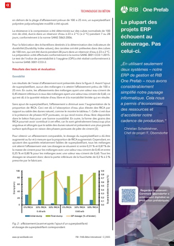 TECHNOLOGIE DU B%u00c9TONwww.cpi-worldwide.com PBI %u2013 Pr%u00e9fa B%u00e9ton International %u2013 5 | 2025en dehors de la plage d%u2019affaissement pr%u00e9vue de 100 %u00b1 25 mm, un superplastifiant polym%u00e8re polycarboxylate modifi%u00e9 a %u00e9t%u00e9 ajout%u00e9.La r%u00e9sistance %u00e0 la compression a %u00e9t%u00e9 d%u00e9termin%u00e9e sur des cubes normalis%u00e9s de 100 mm de c%u00f4t%u00e9, durcis dans un r%u00e9servoir d'eau %u00e0 23 %u00b1 2 %u00b0C (%u00b1 2 %u00b0C) pendant 7 ou 28 jours, conform%u00e9ment %u00e0 la norme SANS 5863:2006.Pour la fabrication des %u00e9chantillons destin%u00e9s %u00e0 la d%u00e9termination des indicateurs de durabilit%u00e9 (Durability Index values), des carottes ont %u00e9t%u00e9 pr%u00e9lev%u00e9es dans des cubes de 100 mm, qui ont %u00e9t%u00e9 durcis pendant 28 jours dans un r%u00e9servoir d'eau %u00e0 23 %u00b1 2 %u00b0C. La pr%u00e9paration a %u00e9t%u00e9 effectu%u00e9e conform%u00e9ment %u00e0 la norme SANS 3001-CO3-1:2015. Le test de l'indice de perm%u00e9abilit%u00e9 %u00e0 l'oxyg%u00e8ne (OPI) a %u00e9t%u00e9 r%u00e9alis%u00e9 conform%u00e9ment %u00e0 la norme SANS 3001-CO3-2.R%u00e9sultats des tests et %u00e9valuationOuvrabilit%u00e9 Les r%u00e9sultats de l'essai d%u2019affaissement sont pr%u00e9sent%u00e9s dans la figure 2. Avant l'ajout de superplastifiant, aucun des m%u00e9langes n'a atteint l%u2019affaissement pr%u00e9vu de 100 %u00b1 25 mm. En outre, les affaissements des m%u00e9langes ayant une valeur eau-ciment de 0,45 %u00e9taient inf%u00e9rieurs %u00e0 ceux des m%u00e9langes ayant une valeur eau-ciment de 0,60, ce qui est d%u00fb %u00e0 la quantit%u00e9 r%u00e9duite d'eau libre et %u00e0 la maniabilit%u00e9 limit%u00e9e qui en r%u00e9sulte.Sans ajout de superplastifiant, l%u2019affaissement a diminu%u00e9 avec l'augmentation de la proportion de fRCA. Ceci est d%u00fb %u00e0 l'absorption d'eau plus %u00e9lev%u00e9e des fRCA par rapport au sable des dunes naturel, comme le montre le tableau 1. Celle-ci est due %u00e0 la pr%u00e9sence de phases HCP poreuses, ce qui rend moins d'eau libre disponible dans le b%u00e9ton frais pour une bonne ouvrabilit%u00e9. En outre, la forme des grains des fRCA pourrait avoir contribu%u00e9 %u00e0 cet effet, car ils sont g%u00e9n%u00e9ralement beaucoup plus anguleux et allong%u00e9s que le sable des dunes naturel et pr%u00e9sentent une plus grande surface sp%u00e9cifique en raison des phases poreuses de p%u00e2te de ciment [3].Pour obtenir un affaissement comparable, le dosage du superplastifiant a d%u00fb %u00eatre augment%u00e9 au fur et %u00e0 mesure que la proportion de fRCA augmentait. Cependant, en ajoutant des quantit%u00e9s relativement faibles de superplastifiant, tous les m%u00e9langes ont atteint l%u2019affaissement vis%u00e9. Les dosages se situaient ici entre 0,31 % et 0,87 % de la masse de ciment pour les m%u00e9langes avec une valeur eau-ciment de 0,45 et entre 0,25 % et 0,80 % pour les m%u00e9langes avec une valeur eau-ciment de 0,60. Tous les dosages se situaient donc dans la partie inf%u00e9rieure de la fourchette de 0,3 % %u00e0 3 % prescrite par le fabricant.fifffififffflfiffffififfflfiff%u001afiff%u0019fiff%u0018fiff%u0017fiff%u0016fiff%u0015fiffifi%u001afi%u0018fi%u0016fifflfififi%u0014%u0013%u0012%u0011%u0010%u000f flfi%u0014%u0013%u0012%u0011%u0010%u000f %u0019fi%u0014%u0013%u0012%u0011%u0010%u000f fi%u0014%u0013%u0012%u0011%u0010%u000f flfi%u0014%u0013%u0012%u0011%u0010%u000f %u0019fi%u0014%u0013%u0012%u0011%u0010%u000ffi%u000e%u001a%u0019%u0013%u000c%u000b fi%u000e%u0018fi%u0013%u000c%u000b%u0009%u0008%u0007%u0006%u0008%u0005%u0004%u0003%u0001%u0001%u0081%u0007%u0006%u0013%u008d%u008f%u0003%u0004%u0090%u0007%u0013%u009d%u0014%u00a0 %u0005%u0009%u00ad%u0008%u0013%u009d%u00ad%u00ad%u00a0%u0080%u0082%u0001%u0001%u0004%u0005%u0013%u0003%u0005%u0009%u00ad%u0008 %u0083%u0001%u0082%u0004%u0005%u0013%u0003%u0005%u0009%u00ad%u0008 %u0084%u0013%u008d%u008f%u0003%u0004%u0090%u0007%u0013%u009d%u0014%u0013%u008f%u0012%u0013%u000b%u0001%u0082%u008d%u0007%u0006%u00a0Fig. 2 : affaissement (avant et apr%u00e8s l'ajout d'un superplastifiant) et dosage de superplastifiant correspondant.