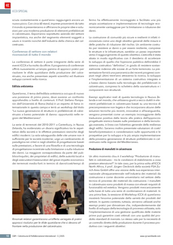 ICCX SPECIAL10 C&PI %u2013 Calcestruzzo & Prefabbricazione International %u2013 5 | 2025 www.cpi-worldwide.comsciuta costantemente e quest%u2019anno raggiunger%u00e0 ancora un nuovo picco. Con circa 60 stand, imprese provenienti da tutto il mondo si presenteranno e offriranno le proprie idee e soluzioni per una moderna produzione di elementi prefabbricati in calcestruzzo. Esporranno soprattutto aziende del settore impiantistica, ma anche del segmento elementi soggetti a usura e ricambi nonch%u00e9 dell%u2019industria della chimica del calcestruzzo.Conferenza di settore con relatori riconosciuti di tutto il mondoLa conferenza di settore %u00e8 parte integrante della serie di eventi ICCX e ha molto da offrire. Il programma di conferenze offrir%u00e0 nuovamente un%u2019ampia gamma di approcci pratici per risolvere le sfide quotidiane della produzione del calcestruzzo, ma anche presentare aspetti scientifici ed illustrare sviluppi correnti nella ricerca.Edilizia antisismicaQuest%u2019anno, il tema dell%u2019edilizia antisismica occupa di nuovo una posizione di primo piano, dove avviene un confronto approfondito a livello di contenuti. Il Prof. Stefano Pampanin dell%u2019Universit%u00e0 di Roma (Italia) %u00e8 un esperto di fama internazionale in questo campo e terr%u00e0 un workshop dal titolo %u201cLa nuova generazione di strutture in prefabbricati di calcestruzzo a basso potenziale di danno: opportunit%u00e0 nelle regioni del Mediterraneo%u201d.La serie di terremoti del 2010-2011 a Canterbury, in Nuova Zelanda, ha evidenziato un divario significativo tra le aspettative della societ%u00e0 e le effettive prestazioni sismiche degli edifici moderni. La sola salvaguardia delle vite umane non %u00e8 sufficiente per le societ%u00e0 moderne; urge un cambiamento di paradigma nei criteri e negli obiettivi di progettazione basati sulle prestazioni, a favore di una filosofia e di una tecnologia di progettazione incentrate sulla limitazione o sulla riduzione dei danni. La maggiore consapevolezza da parte del pubblico/inquilini, dei proprietari di edifici, delle autorit%u00e0 locali e degli assicuratori/riassicuratori del grave impatto economico dei terremoti medio-forti in termini di danni/costi/tempi di fermo ha effettivamente incoraggiato e facilitato una pi%u00f9 ampia accettazione e implementazione di tecnologie economicamente vantaggiose per la limitazione o riduzione dei danni.La costruzione di comunit%u00e0 pi%u00f9 sicure e resilienti %u00e8 infatti riconosciuta come uno degli obiettivi generali delle misure e delle pratiche di riduzione del rischio. Un ambiente costruito per resistere ai danni o per essere resiliente, comprese le strutture e le infrastrutture, sarebbe un passo importante verso il raggiungimento di questo obiettivo. L%u2019asticella %u00e8 stata alzata in modo significativo con il desiderio di accelerare lo sviluppo di quello che l%u2019opinione pubblica definirebbe il sistema costruttivo %u201cdefinitivo%u201d, in grado di resistere sostanzialmente indenne alle scosse di un forte terremoto. La presentazione fornir%u00e0 una panoramica dei recenti progressi compiuti negli ultimi trent%u2019anni attraverso la ricerca, lo sviluppo e l%u2019implementazione di un sistema costruttivo integrato e a basso danno basato sulla tecnologia dei prefabbricati in calcestruzzo, compreso lo scheletro della sovrastruttura e i componenti non strutturali.Esempi applicativi reali di questa tecnologia in Nuova Zelanda e nel mondo, che utilizzano giunti a secco duttili in elementi prefabbricati in calcestruzzo basati su una tecnica di precompressione non legata e che incorporano alcune delle soluzioni tecniche pi%u00f9 recenti, innovative e all%u2019avanguardia, vengono presentati come un esempio incoraggiante della traduzione positiva dalla teoria alla pratica dell%u2019approccio progettuale sismico basato sulle prestazioni e della tecnologia avanzata, in linea con l%u2019obiettivo generale della resilienza degli edifici. Saranno inoltre presentate valutazioni di costi/benefici/prestazioni e considerazioni sulle opportunit%u00e0 e le prospettive per lo sviluppo e la pi%u00f9 ampia implementazione della prossima generazione di strutture prefabbricate in calcestruzzo nella regione del Mediterraneo.Produzione di manufatti in calcestruzzoUn altro momento clou %u00e8 il workshop %u201cProduzione di manufatti in calcestruzzo %u2013 tra le condizioni di stabilimento a cosa prestare attenzione?%u201d. In tale caso, per la prima volta all%u2019ICCX North Africa, il prof. J%u00fcrgen Oecknick della societ%u00e0 PSA Zurich Area GmbH offre una visione della sua esperienza internazionale ultraquarantennale nell%u2019industria dei materiali da costruzione e come docente universitario nel settore della tecnica di processo dei materiali da costruzione. I manufatti in calcestruzzo sono prodotti di massa con elevati requisiti di funzionalit%u00e0 ed estetica. Vengono prodotti meccanicamente sulla base di tutta una serie di combinazioni di materiali. In una prima fase, la sessione di Workshop ICCX di quest%u2019anno mostrer%u00e0 l%u2019enorme potenziale della variet%u00e0 dei prodotti del settore. In questo contesto, tuttavia, verranno utilizzati anche esempi pratici per dimostrare che, indipendentemente dal livello di sviluppo della tecnologia di processo utilizzata, solo l%u2019implementazione di una gestione qualificata delle materie prime pu%u00f2 garantire costi ottimali con una qualit%u00e0 del prodotto standard di mercato. Lo stesso vale per la necessit%u00e0 di un controllo diretto della produzione durante il processo produttivo con i seguenti obiettivi:Rinomati relatori garantiscono un%u2019offerta variegata di pratici approcci risolutivi per le sfide quotidiane che si devono affrontare nella produzione del calcestruzzo.