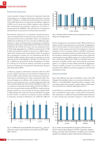 TECNICA DEL CALCESTRUZZO34 C&PI %u2013 Calcestruzzo & Prefabbricazione International %u2013 5 | 2025 www.cpi-worldwide.comResistenza alla compressioneI valori riportati in Figura 3 indicano la resistenza media alla compressione e la relativa deviazione standard, misurate dopo 7 e 28 giorni. I risultati dei test dimostrano che, tenendo conto della dispersione normalmente prevedibile, l'aggiunta di fRCA non ha avuto alcun effetto negativo sulla resistenza alla compressione per entrambi i rapporti a/c. Ci%u00f2 indica l'idoneit%u00e0 generale dell'fRCA nelle percentuali di sostituzione specificate per la produzione di calcestruzzo strutturale.Per entrambi i rapporti a/c e in entrambi i momenti di prova, i valori di resistenza alla compressione dei calcestruzzi con diverse percentuali erano comparabili. Inoltre, una valutazione statistica ha confermato che non vi era alcuna differenza significativa tra i valori di resistenza alla compressione a 28 giorni dei diversi calcestruzzi, indipendentemente dalla percentuale di fRCA (0, 30 o 50 %). Ci%u00f2 indica che una sostituzione fino al 50 % degli aggregati fini con fRCA (corrispondente al 100 % della percentuale di sabbia di dune) ha un effetto trascurabile sulla resistenza alla compressione. Valori di resistenza alla compressione costanti con una sostituzione del 30 % e del 50 % di fRCA rispetto alla miscela di controllo sono stati osservati anche da Evangelista e de Brito [7] e Pereira et al. [9]. A differenza del presente studio, Evangelista e de Brito [7] e Pereira et al. [9] hanno tuttavia aumentato la quantit%u00e0 di acqua d'impasto per compensare l'assorbimento d'acqua delle particelle di fRCA. L'influenza negativa solitamente osservata delle fasi HCP porose e delle numerose zone di transizione interfacciali nei provini di fRCA sulla resistenza alla compressione [3] nel presente studio probabilmente %u00e8 stata compensata dalla riduzione del rapporto a/c effettivo nelle miscele di calcestruzzo, poich%u00e9 si pu%u00f2 presumere che una parte dell'acqua libera sia stata assorbita dalle fasi HCP porose dell'fRCA. Inoltre, con un contenuto di biossido di silicio (SiO2) del 78,7 %, l'fRCA indica che una percentuale elevata dell'fRCA %u00e8 costituita da aggregato quarzitico e non da pasta di cemento. Quest'ultimo %u00e8 rappresentato dal contenuto misurato dell'8,0 % di ossido di calcio (CaO). Il contenuto di biossido di silicio nell'fRCA %u00e8 compreso, secondo la letteratura, tra il 48,0 % e l%u201984,2 % [3]. Di conseguenza, nel presente studio l'fRCA sostituisce la sabbia di dune principalmente con particelle di aggregati e solo in minima parte con fasi di pasta di cemento porose e aderenti. Inoltre, grazie al processo di miscelazione a due fasi utilizzato, le fasi cementizie aderenti nell'fRCA potrebbero presentare una porosit%u00e0 ridotta e la qualit%u00e0 delle vecchie zone di transizione interfacciali potrebbe essere stata migliorata, minimizzando cos%u00ec gli effetti negativi di una fase HCP porosa che si osservano solitamente. Inoltre, la resistenza alla compressione potrebbe essere stata ulteriormente aumentata grazie a un migliore incastro delle particelle di aggregato: mentre la sabbia di dune ha una forma arrotondata e una superficie liscia, l'fRCA ha una forma spigolosa e una struttura superficiale ruvida. Indicatori di durabilit%u00e0Sono stati effettuati due test di durabilit%u00e0, ovvero il test OPI (Oxygen Permeability Index), comunemente utilizzato in Sudafrica, e il test WSI (Water Sorptivity Index), compresi i relativi risultati relativi alla porosit%u00e0. I risultati relativi a OPI, sorptivit%u00e0 e porosit%u00e0 sono riportati nelle Figure da 4 a 7.Il test OPI serve a valutare la permeabilit%u00e0 ai gas ed %u00e8 sensibile a cambiamenti quali crepe e cavit%u00e0 nella microstruttura del calcestruzzo. I coefficienti di permeabilit%u00e0 determinati per le varie miscele sono riportati in Figura 4. I valori OPI sono fifffifflfiffififlfi%u001afi%u0019fifi%u0018%u0017%u0016%u0015%u0014%u0013 ffifi%u0018%u0017%u0016%u0015%u0014%u0013 %u001afi%u0018%u0017%u0016%u0015%u0014%u0013 fi%u0018%u0017%u0016%u0015%u0014%u0013 ffifi%u0018%u0017%u0016%u0015%u0014%u0013 %u001afi%u0018%u0017%u0016%u0015%u0014%u0013fi%u0012fl%u001a%u0017%u0011%u0010%u000f fi%u0012%u0019fi%u0017%u0011%u0010%u000f%u0014%u000e%u000c%u000b%u0009%u0009%u0008%u0007%u0017%u0009%u0006%u000b%u0005%u0004%u0006%u0003%u0017%u0001%u0081%u008d%u008f%u0017%u0090%u0081%u009d%u0009 ffl%u00a0%u0017%u0090%u0081%u009d%u00090,00,51,01,52,02,53,00% fRCA 30% fRCA 50% fRCA 0% fRCA 30% fRCA 50% fRCA0.45 w/b 0.60 RCFk (x 10-11 m/s)fifffflffififffflflfiffffl%u001afiffffl%u0019fiffffl%u0018fiffffl%u0017fiffffl%u0016ff%u0015%u0014%u0013%u0012%u0011%u0010 flff%u0015%u0014%u0013%u0012%u0011%u0010 %u0019ff%u0015%u0014%u0013%u0012%u0011%u0010 ff%u0015%u0014%u0013%u0012%u0011%u0010 flff%u0015%u0014%u0013%u0012%u0011%u0010 %u0019ff%u0015%u0014%u0013%u0012%u0011%u0010ff%u000f%u001a%u0019%u0014%u000e%u000c ff%u000f%u0018ff%u0014%u0012%u0011%u000b%u0009%u0008%u0014%u0007%u0006%u0005%u0004%u0014%u0003%u0001%u0006%u0081Fig. 3: Risultati della resistenza alla compressione dopo 7 e 28 giorni di stagionatura.Fig. 4: Coefficiente di permeabilit%u00e0 all'ossigeno (kOPI) del calcestruzzo indurito dopo 28 giorni (misurato secondo SANS 3001-CO3-2).Fig. 5: Indice di permeabilit%u00e0 all'ossigeno (OPI) del calcestruzzo indurito dopo 28 giorni (l'OPI %u00e8 il logaritmo negativo del kOPI (vedi Fig. 4) ed %u00e8 utilizzato in Sudafrica per il controllo qualit%u00e0 e la valutazione della conformit%u00e0 del calcestruzzo).