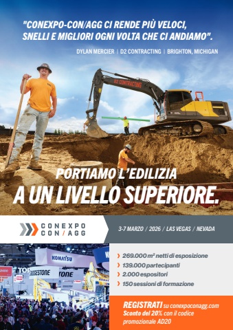 3-7 MARZO / 2026 / LAS VEGAS / NEVADAREGISTRATIsu conexpoconagg.com Sconto del 20% con il codice promozionale AD20269.000 m2 netti di esposizione 139.000 partecipanti 2.000 espositori 150 sessioni di formazionePORTIAMO L%u2019EDILIZIAA UN LIVELLO SUPERIORE.\-CON/AGG CI RENDE PI%u00d9 VELOCI, SNELLI E MIGLIORI OGNI VOLTA CHE CI ANDIAMO\DYLAN MERCIER | D2 CONTRACTING | BRIGHTON, MICHIGAN