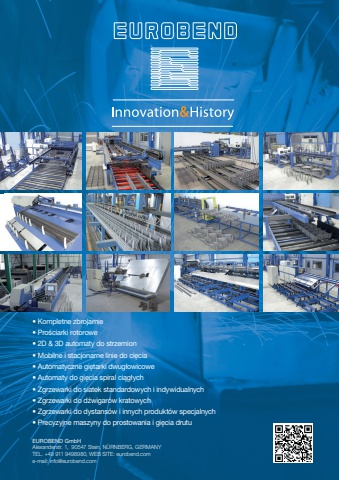 EUROBEND GmbHAlexanderstr. 1,%u00a0 90547 Stein, N%u00dcRNBERG, GERMANYTEL. +49 911 9498980, WEB SITE: eurobend.come-mail: info@eurobend.com%u2022 Kompletne zbrojarnie%u2022 Pro%u015bciarki rotorowe%u2022 2D & 3D automaty do strzemion%u2022 Mobilne i stacjonarne linie do ci%u0119cia%u2022 Automatyczne gi%u0119tarki dwug%u0142owicowe%u2022 Automaty do gi%u0119cia spiral ci%u0105g%u0142ych%u2022 Zgrzewarki do siatek standardowych i indywidualnych%u2022 Zgrzewarki do d%u017awigar%u00f3w kratowych%u2022 Zgrzewarki do dystans%u00f3w i innych produkt%u00f3w specjalnych%u2022 Precyzyjne maszyny do prostowania i gi%u0119cia drutu