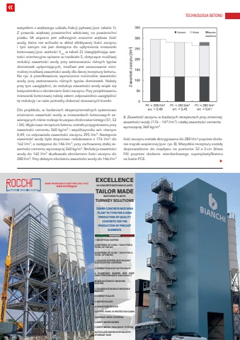 TECHNOLOGIA BETONUwww.cpi-worldwide.com%u0009 ZBI %u2013 Zak%u0142ady Betonowe International %u2013 5 | 2025 31wszystkim z wi%u0119kszego udzia%u0142u frakcji py%u0142owej (por. tabela 1). Z powodu wi%u0119kszej powierzchni w%u0142a%u015bciwej, na powierzchni piasku S4 wi%u0105zana jest adhezyjnie znacznie wi%u0119ksza ilo%u015b%u0107 wody, kt%u00f3ra nie wchodzi w sk%u0142ad efektywnej ilo%u015bci zaczynu i tym samym nie jest dost%u0119pna do up%u0142ynnienia mieszanki betonowej (por. warto%u015bci Vw,s w tabeli 2). Uwzgl%u0119dniaj%u0105c warto%u015bci orientacyjne opisane w rozdziale 5, dotycz%u0105ce mo%u017cliwej redukcji zawarto%u015bci wody przy zastosowaniu r%u00f3%u017cnych typ%u00f3w domieszek up%u0142ynniaj%u0105cych, mo%u017cliwe jest oszacowanie minimalnej mo%u017cliwej zawarto%u015bci wody dla danej receptury betonu. Na rys. 6 przedstawiono wyznaczone minimalne zawarto%u015bci wody przy zastosowaniu r%u00f3%u017cnych typ%u00f3w domieszek. Nale%u017cy przy tym uwzgl%u0119dni%u0107, %u017ce redukcja zawarto%u015bci wody wi%u0105%u017ce si%u0119 bezpo%u015brednio z obni%u017ceniem ilo%u015bci zaczynu. Przy projektowaniu mieszanki betonowej nale%u017cy zatem odpowiednio uwzgl%u0119dni%u0107 t%u0119 redukcj%u0119 i w razie potrzeby dokona%u0107 stosownych korekt. Dla przyk%u0142adu, w badaniach eksperymentalnych systemowo zmieniano zawarto%u015b%u0107 wody w mieszankach betonowych zawieraj%u0105cych r%u00f3%u017cne rodzaje kruszywa drobnoziarnistego (S1, S3 i S4). Wyj%u015bciowa receptura betonu zosta%u0142a przygotowana przy zawarto%u015bci cementu 360 kg/m3 i wsp%u00f3%u0142czynniku w/c r%u00f3wnym 0,49, co odpowiada zawarto%u015bci zaczynu 295 l/m3. Nast%u0119pnie zawarto%u015b%u0107 wody by%u0142a stopniowo redukowana z 176 l/m3 do 162 l/m3, a nast%u0119pnie do 146 l/m3, przy zachowanej sta%u0142ej zawarto%u015bci cementu wynosz%u0105cej 360 kg/m3. Redukcja zawarto%u015bci wody do 162 l/m3 skutkowa%u0142a obni%u017ceniem ilo%u015bci zaczynu do 280 l/m3. Przy dalszym obni%u017ceniu zawarto%u015bci wody do 146 l/m3ilo%u015b%u0107 zaczynu zosta%u0142a skorygowana do 280 l/m3 poprzez dodanie m%u0105czki wapiennej (por. rys. 8). Wszystkie receptury zosta%u0142y doprowadzone do rozp%u0142ywu na poziomie 52 %u00b1 3 cm (klasa F4) poprzez dodanie standardowego superplastyfikatora na bazie PCE. E8. Zawarto%u015b%u0107 zaczynu w badanych recepturach przy zmiennej zawarto%u015bci wody (176 %u2013 147 l/m3) i sta%u0142ej zawarto%u015bci cementu wynosz%u0105cej 360 kg/m3.1 RECEPTION HOPPER4 HOPPERS OF 70 MC / EACH FOR A TOTAL OF 280 MC8 HOPPERS OF 35 MC / EACH FOR A TOTAL OF 280 MC1 LOADING SYSTEM WITH BUCKET ELEVATOR FOR HOPPERS3 CEMENT SILOS OF 80 TON EACH2 PLANETARY MIXERS MPR SERY HIGH PERFORMANCE 3000/2000 LTMIXER AUTOMATIC WASHING SYSTEM1 AGGREGATE MOBILE WEIGHING BUCKET2 CEMENT SCALES2 WATER SCALES2 ADMIXTURE SCALESCONTROL PANEL IN PROTECTION CABINCAMERAS VIDEO CONTROL1 DIRTY WATER DOSER1 DIRTY WATER TREATMENT SYSTEMAUTOCLAVE WATER SYSTEM WITH STORAGE TANKEXCELLENCEIN CONCRETE BATCHING PLANTSTAILOR MADE BATCHING PLANTSTURNKEY SOLUTIONSTOWER CONCRETE BATCHING PLANT TK TYPE FOR A HIGH PRODUCTION OF QUALITY CONCRETE FOR THE PRODUCTION OF PRECAST ELEMENTSCMYCMMYCY CMYKRocchi logo allargato.pdf 1 11/03/19 17:24Zawarto%u015b%u0107 zaczynu [l/m3] Cement Woda M%u0105czkawapienna