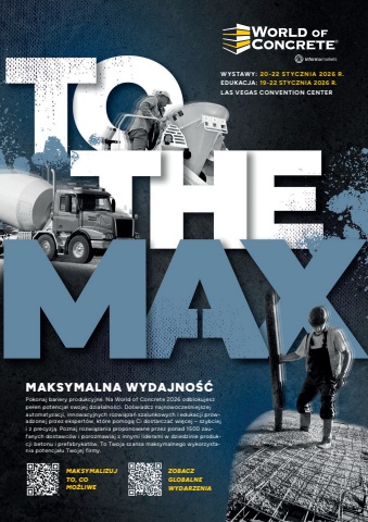 MAKSYMALNA WYDAJNO%u015a%u0106Pokonaj bariery produkcyjne. Na World of Concrete 2026 odblokujesz pe%u0142en potencja%u0142 swojej dzia%u0142alno%u015bci. Do%u015bwiadcz najnowocze%u015bniejszej automatyzacji, innowacyjnych rozwi%u0105za%u0144 szalunkowych i edukacji prowadzonej przez ekspert%u00f3w, kt%u00f3re pomog%u0105 Ci dostarcza%u0107 wi%u0119cej %u2013 szybciej i z precyzj%u0105. Poznaj rozwi%u0105zania proponowane przez ponad 1500 zaufanych dostawc%u00f3w i porozmawiaj z innymi liderami w dziedzinie produkcji betonu i prefabrykat%u00f3w. To Twoja szansa maksymalnego wykorzystania potencja%u0142u Twojej firmy.MAKSYMALIZUJ TO, CO MO%u017bLIWEZOBACZ GLOBALNE WYDARZENIALAS VEGAS CONVENTION CENTEREDUKACJA: 19-22 STYCZNIA 2026 R.WYSTAWY: 20-22 STYCZNIA 2026 R.