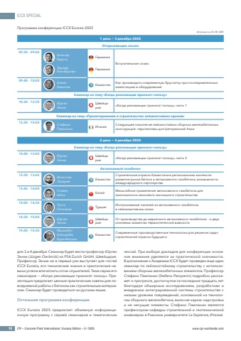 ICCX SPECIAL10 CPI %u2013 Concrete Plant International | Eurasia Edition %u2013 5 | 2025 www.cpi-worldwide.com%u041f%u0440%u043e%u0433%u0440%u0430%u043c%u043c%u0430 %u043a%u043e%u043d%u0444%u0435%u0440%u0435%u043d%u0446%u0438%u0438 ICCX Eurasia 2025%u0410%u043a%u0442%u0443%u0430%u043b%u044c%u043d%u043e %u043d%u0430 26. 08. 2025%u0434%u043d%u044f 3 %u0438 4 %u0434%u0435%u043a%u0430%u0431%u0440%u044f. %u0421%u0435%u043c%u0438%u043d%u0430%u0440 %u0431%u0443%u0434%u0435%u0442 %u0432%u0435%u0441%u0442%u0438 %u043f%u0440%u043e%u0444%u0435%u0441%u0441%u043e%u0440 %u042e%u0440%u0433%u0435%u043d %u042d%u043a%u043d%u0438%u043a (J%u00fcrgen Oecknick) %u0438%u0437 PSA Zurich GmbH, %u0428%u0432%u0435%u0439%u0446%u0430%u0440%u0438%u044f. %u041f%u0440%u043e%u0444%u0435%u0441%u0441%u043e%u0440 %u042d%u043a%u043d%u0438%u043a %u043d%u0435 %u0432 %u043f%u0435%u0440%u0432%u044b%u0439 %u0440%u0430%u0437 %u0432%u044b%u0441%u0442%u0443%u043f%u0430%u0435%u0442 %u0434%u043b%u044f %u0433%u043e%u0441%u0442%u0435%u0439 ICCX Eurasia, %u0435%u0433%u043e %u0442%u0435%u0445%u043d%u0438%u0447%u0435%u0441%u043a%u0438%u0435 %u0437%u043d%u0430%u043d%u0438%u044f %u0438 %u043f%u0440%u0430%u043a%u0442%u0438%u0447%u0435%u0441%u043a%u0438%u0435 %u043d%u0430%u0432%u044b%u043a%u0438 %u0443%u0441%u043f%u0435%u043b%u0438 %u0432%u043f%u0435%u0447%u0430%u0442%u043b%u0438%u0442%u044c %u0441%u043e%u0442%u043d%u0438 %u0441%u043b%u0443%u0448%u0430%u0442%u0435%u043b%u0435%u0439. %u0422%u0435%u043c%u0430 %u0441%u0435%u0440%u0438%u0438 %u0435%u0433%u043e %u0441%u0435%u043c%u0438%u043d%u0430%u0440%u043e%u0432 %u2212 %u00ab%u041a%u043e%u0433%u0434%u0430 %u0440%u0435%u043a%u043b%u0430%u043c%u0430%u0446%u0438%u0438 %u043f%u0440%u0438%u043d%u043e%u0441%u044f%u0442 %u043f%u043e%u043b%u044c%u0437%u0443%u00bb. %u041f%u0440%u0435%u0437%u0435%u043d%u0442%u0430%u0446%u0438%u044f %u043f%u0440%u0435%u0434%u043b%u0430%u0433%u0430%u0435%u0442 %u0446%u0435%u043d%u043d%u044b%u0435 %u043f%u0440%u0430%u043a%u0442%u0438%u0447%u0435%u0441%u043a%u0438%u0435 %u0441%u043e%u0432%u0435%u0442%u044b %u0434%u043b%u044f %u043f%u043e%u0432%u0441%u0435%u0434%u043d%u0435%u0432%u043d%u043e%u0439 %u0440%u0430%u0431%u043e%u0442%u044b %u0441 %u0431%u0435%u0442%u043e%u043d%u043e%u043c %u043a%u0430%u043a %u0441%u0442%u0440%u043e%u0438%u0442%u0435%u043b%u044c%u043d%u044b%u043c %u043c%u0430%u0442%u0435%u0440%u0438%u0430%u043b%u043e%u043c. %u0421%u0435%u043c%u0438%u043d%u0430%u0440 %u0431%u0443%u0434%u0435%u0442 %u043f%u0440%u043e%u0432%u043e%u0434%u0438%u0442%u044c%u0441%u044f %u043d%u0430 %u0440%u0443%u0441%u0441%u043a%u043e%u043c %u044f%u0437%u044b%u043a%u0435.%u041e%u0441%u0442%u0430%u043b%u044c%u043d%u0430%u044f %u043f%u0440%u043e%u0433%u0440%u0430%u043c%u043c%u0430 %u043a%u043e%u043d%u0444%u0435%u0440%u0435%u043d%u0446%u0438%u0438ICCX Eurasia 2025 %u043f%u0440%u0435%u0434%u043b%u0430%u0433%u0430%u0435%u0442 %u043e%u0431%u044a%u0435%u043c%u043d%u0443%u044e %u0438%u043d%u0444%u043e%u0440%u043c%u0430%u0446%u0438%u043e%u043d%u043d%u0443%u044e %u043f%u0440%u043e%u0433%u0440%u0430%u043c%u043c%u0443 %u0441 %u0441%u0435%u0440%u0438%u0435%u0439 %u0441%u0435%u043c%u0438%u043d%u0430%u0440%u043e%u0432 %u0438 %u0442%u0435%u043c%u0430%u0442%u0438%u0447%u0435%u0441%u043a%u0438%u0445 %u0441%u0435%u0441%u0441%u0438%u0439. %u041f%u0440%u0438 %u0432%u044b%u0431%u043e%u0440%u0435 %u0434%u043e%u043a%u043b%u0430%u0434%u043e%u0432 %u0434%u043b%u044f %u043a%u043e%u043d%u0444%u0435%u0440%u0435%u043d%u0446%u0438%u0438 %u043e%u0441%u043d%u043e%u0432%u043d%u043e%u0435 %u0432%u043d%u0438%u043c%u0430%u043d%u0438%u0435 %u0443%u0434%u0435%u043b%u044f%u0435%u0442%u0441%u044f %u0438%u0445 %u043f%u0440%u0430%u043a%u0442%u0438%u0447%u0435%u0441%u043a%u043e%u0439 %u0437%u043d%u0430%u0447%u0438%u043c%u043e%u0441%u0442%u0438. %u0412 %u0434%u043e%u043f%u043e%u043b%u043d%u0435%u043d%u0438%u0435 %u043a %u0410%u043a%u0430%u0434%u0435%u043c%u0438%u0438 ICCX %u0431%u0443%u0434%u0435%u0442 %u043f%u0440%u043e%u0432%u0435%u0434%u0435%u043d %u0435%u0449%u0435 %u043e%u0434%u0438%u043d %u0441%u0435%u043c%u0438%u043d%u0430%u0440 %u043f%u043e %u0441%u0435%u0439%u0441%u043c%u043e%u0441%u0442%u043e%u0439%u043a%u043e%u043c%u0443 %u0441%u0442%u0440%u043e%u0438%u0442%u0435%u043b%u044c%u0441%u0442%u0432%u0443 %u0441 %u0438%u0441%u043f%u043e%u043b%u044c%u0437%u043e%u0432%u0430%u043d%u0438%u0435%u043c %u0441%u0431%u043e%u0440%u043d%u044b%u0445 %u0436%u0435%u043b%u0435%u0437%u043e%u0431%u0435%u0442%u043e%u043d%u043d%u044b%u0445 %u044d%u043b%u0435%u043c%u0435%u043d%u0442%u043e%u0432. %u041f%u0440%u043e%u0444%u0435%u0441%u0441%u043e%u0440 %u0421%u0442%u0435%u0444%u0430%u043d%u043e %u041f%u0430%u043c%u043f%u0430%u043d%u0438%u043d (Stefano Pampanin) %u043f%u043e%u0434%u0440%u043e%u0431%u043d%u043e %u0440%u0430%u0441%u0441%u043a%u0430%u0436%u0435%u0442 %u043e %u043f%u0440%u043e%u0433%u0440%u0435%u0441%u0441%u0435, %u0434%u043e%u0441%u0442%u0438%u0433%u043d%u0443%u0442%u043e%u043c %u0437%u0430 %u043f%u043e%u0441%u043b%u0435%u0434%u043d%u0438%u0435 %u0442%u0440%u0438%u0434%u0446%u0430%u0442%u044c %u043b%u0435%u0442 %u0431%u043b%u0430%u0433%u043e%u0434%u0430%u0440%u044f %u043e%u0431%u0448%u0438%u0440%u043d%u044b%u043c %u0438%u0441%u0441%u043b%u0435%u0434%u043e%u0432%u0430%u043d%u0438%u044f%u043c, %u0440%u0430%u0437%u0440%u0430%u0431%u043e%u0442%u043a%u0430%u043c %u0438 %u0432%u043d%u0435%u0434%u0440%u0435%u043d%u0438%u044e %u0438%u043d%u0442%u0435%u0433%u0440%u0438%u0440%u043e%u0432%u0430%u043d%u043d%u043e%u0439 %u0441%u0438%u0441%u0442%u0435%u043c%u044b %u0441%u0442%u0440%u043e%u0438%u0442%u0435%u043b%u044c%u0441%u0442%u0432%u0430 %u0441 %u043d%u0438%u0437%u043a%u0438%u043c %u0443%u0440%u043e%u0432%u043d%u0435%u043c %u043f%u043e%u0432%u0440%u0435%u0436%u0434%u0435%u043d%u0438%u0439, %u043e%u0441%u043d%u043e%u0432%u0430%u043d%u043d%u043e%u0439 %u043d%u0430 %u0442%u0435%u0445%u043d%u043e%u043b%u043e%u0433%u0438%u0438 %u0441%u0431%u043e%u0440%u043d%u043e%u0433%u043e %u0436%u0435%u043b%u0435%u0437%u043e%u0431%u0435%u0442%u043e%u043d%u0430, %u0432%