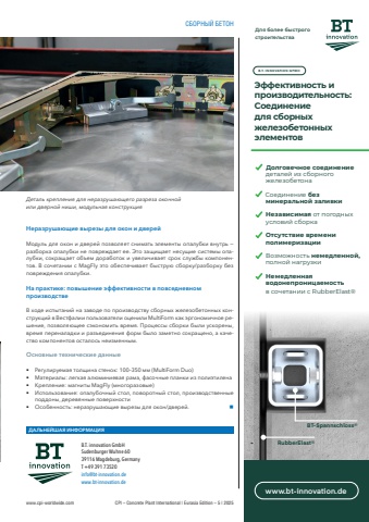 %u0421%u0411%u041e%u0420%u041d%u042b%u0419 %u0411%u0415%u0422%u041e%u041dwww.cpi-worldwide.com CPI %u2013 Concrete Plant International | Eurasia Edition %u2013 5 | 2025%u041d%u0435%u0440%u0430%u0437%u0440%u0443%u0448%u0430%u044e%u0449%u0438%u0435 %u0432%u044b%u0440%u0435%u0437%u044b %u0434%u043b%u044f %u043e%u043a%u043e%u043d %u0438 %u0434%u0432%u0435%u0440%u0435%u0439%u041c%u043e%u0434%u0443%u043b%u044c %u0434%u043b%u044f %u043e%u043a%u043e%u043d %u0438 %u0434%u0432%u0435%u0440%u0435%u0439 %u043f%u043e%u0437%u0432%u043e%u043b%u044f%u0435%u0442 %u0441%u043d%u0438%u043c%u0430%u0442%u044c %u044d%u043b%u0435%u043c%u0435%u043d%u0442%u044b %u043e%u043f%u0430%u043b%u0443%u0431%u043a%u0438 %u0432%u043d%u0443%u0442%u0440%u044c %u2014 %u0440%u0430%u0437%u0431%u043e%u0440%u043a%u0430 %u043e%u043f%u0430%u043b%u0443%u0431%u043a%u0438 %u043d%u0435 %u043f%u043e%u0432%u0440%u0435%u0436%u0434%u0430%u0435%u0442 %u0435%u0435. %u042d%u0442%u043e %u0437%u0430%u0449%u0438%u0449%u0430%u0435%u0442 %u043d%u0435%u0441%u0443%u0449%u0438%u0435 %u0441%u0438%u0441%u0442%u0435%u043c%u044b %u043e%u043f%u0430%u043b%u0443%u0431%u043a%u0438, %u0441%u043e%u043a%u0440%u0430%u0449%u0430%u0435%u0442 %u043e%u0431%u044a%u0435%u043c %u0434%u043e%u0440%u0430%u0431%u043e%u0442%u043e%u043a %u0438 %u0443%u0432%u0435%u043b%u0438%u0447%u0438%u0432%u0430%u0435%u0442 %u0441%u0440%u043e%u043a %u0441%u043b%u0443%u0436%u0431%u044b %u043a%u043e%u043c%u043f%u043e%u043d%u0435%u043d%u0442%u043e%u0432. %u0412 %u0441%u043e%u0447%u0435%u0442%u0430%u043d%u0438%u0438 %u0441 MagFly %u044d%u0442%u043e %u043e%u0431%u0435%u0441%u043f%u0435%u0447%u0438%u0432%u0430%u0435%u0442 %u0431%u044b%u0441%u0442%u0440%u0443%u044e %u0441%u0431%u043e%u0440%u043a%u0443/%u0440%u0430%u0437%u0431%u043e%u0440%u043a%u0443 %u0431%u0435%u0437 %u043f%u043e%u0432%u0440%u0435%u0436%u0434%u0435%u043d%u0438%u044f %u043e%u043f%u0430%u043b%u0443%u0431%u043a%u0438.%u041d%u0430 %u043f%u0440%u0430%u043a%u0442%u0438%u043a%u0435: %u043f%u043e%u0432%u044b%u0448%u0435%u043d%u0438%u0435 %u044d%u0444%u0444%u0435%u043a%u0442%u0438%u0432%u043d%u043e%u0441%u0442%u0438 %u0432 %u043f%u043e%u0432%u0441%u0435%u0434%u043d%u0435%u0432%u043d%u043e%u043c %u043f%u0440%u043e%u0438%u0437%u0432%u043e%u0434%u0441%u0442%u0432%u0435%u0412 %u0445%u043e%u0434%u0435 %u0438%u0441%u043f%u044b%u0442%u0430%u043d%u0438%u0439 %u043d%u0430 %u0437%u0430%u0432%u043e%u0434%u0435 %u043f%u043e %u043f%u0440%u043e%u0438%u0437%u0432%u043e%u0434%u0441%u0442%u0432%u0443 %u0441%u0431%u043e%u0440%u043d%u044b%u0445 %u0436%u0435%u043b%u0435%u0437%u043e%u0431%u0435%u0442%u043e%u043d%u043d%u044b%u0445 %u043a%u043e%u043d%u0441%u0442%u0440%u0443%u043a%u0446%u0438%u0439 %u0432 %u0412%u0435%u0441%u0442%u0444%u0430%u043b%u0438%u0438 %u043f%u043e%u043b%u044c%u0437%u043e%u0432%u0430%u0442%u0435%u043b%u0438 %u043e%u0446%u0435%u043d%u0438%u043b%u0438 MultiForm %u043a%u0430%u043a %u044d%u0440%u0433%u043e%u043d%u043e%u043c%u0438%u0447%u043d%u043e%u0435 %u0440%u0435%u0448%u0435%u043d%u0438%u0435, %u043f%u043e%u0437%u0432%u043e%u043b%u044f%u044e%u0449%u0435%u0435 %u0441%u044d%u043a%u043e%u043d%u043e%u043c%u0438%u0442%u044c %u0432%u0440%u0435%u043c%u044f. %u041f%u0440%u043e%u0446%u0435%u0441%u0441%u044b %u0441%u0431%u043e%u0440%u043a%u0438 %u0431%u044b%u043b%u0438 %u0443%u0441%u043a%u043e%u0440%u0435%u043d%u044b, %u0432%u0440%u0435%u043c%u044f %u043f%u0435%u0440%u0435%u043d%u0430%u043b%u0430%u0434%u043a%u0438 %u0438 %u0440%u0430%u0437%u044a%u0435%u0434%u0438%u043d%u0435%u043d%u0438%u044f %u0444%u043e%u0440%u043c %u0431%u044b%u043b%u043e %u0437%u0430%u043c%u0435%u0442%u043d%u043e %u0441%u043e%u043a%u0440%u0430%u0449%u0435%u043d%u043e, %u0430 %u043a%u0430%u0447%u0435%u0441%u0442%u0432%u043e %u043a%u043e%u043c%u043f%u043e%u043d%u0435%u043d%u0442%u043e%u0432 %u043e%u0441%u0442%u0430%u043b%u043e%u0441%u044c %u043d%u0435%u0438%u0437%u043c%u0435%u043d%u043d%u044b%u043c. %u041e%u0441%u043d%u043e%u0432%u043d%u044b%u0435 %u0442%u0435%u0445%u043d%u0438%u0447%u0435%u0441%u043a%u0438%u0435 %u0434%u0430%u043d%u043d%u044b%u0435%u2022 %u0420%u0435%u0433%u0443%u043b%u0438%u0440%u0443%u0435%u043c%u0430%u044f %u0442%u043e%u043b%u0449%u0438%u043d%u0430 %u0441%u0442%u0435%u043d%u043e%u043a: 100%u2013350 %u043c%u043c (MultiForm Duo)%u2022 %u041c%u0430%u0442%u0435%u0440%u0438%u0430%u043b%u044b: %u043b%u0435%u0433%u043a%u0430%u044f %u0430%u043b%u044e%u043c%u0438%u043d%u0438%u0435%u0432%u0430%u044f %u0440%u0430%u043c%u0430, %u0444%u0430%u0441%u043e%u0447%u043d%u044b%u0435 %u043f%u043b%u0430%u043d%u043a%u0438 %u0438%u0437 %u043f%u043e%u043b%u0438%u044d%u0442%u0438%u043b%u0435%u043d%u0430%u2022 %u041a%u0440%u0435%u043f%u043b%u0435%u043d%u0438%u0435: %u043c%u0430%u0433%u043d%u0438%u0442%u044b MagFly (%u043c%u043d%u043e%u0433%u043e%u0440%u0430%u0437%u043e%u0432%u044b%u0435)%u2022 %u0418%u0441%u043f%u043e%u043b%u044c%u0437%u043e%u0432%u0430%u043d%u0438%u0435: %u043e%u043f%u0430%u043b%u0443%u0431%u043e%u0447%u043d%u044b%u0439 %u0441%u0442%u043e%u043b, %u043f%u043e%u0432%u043e%u0440%u043e%u0442%u043d%u044b%u0439 %u0441%u0442%u043e%u043b, %u043f%u0440%u043e%u0438%u0437%u0432%u043e%u0434%u0441%u0442%u0432%u0435%u043d%u043d%u044b%u0435 %u043f%u043e%u0434%u0434%u043e%u043d%u044b, %u0434%u0435%u0440%u0435%u0432%u044f%u043d%u043d%u044b%u0435 %u043f%u043e%u0432%u0435%u0440%u0445%u043d%u043e%u0441%u0442%u0438%u2022 %u041e%u0441%u043e%u0431%u0435%u043d%u043d%u043e%u0441%u0442%u044c: %u043d%u0435%u0440%u0430%u0437%u0440%u0443%u0448%u0430%u044e%u0449%u0438%u0435 %u0432%u044b%u0440%u0435%u0437%u044b %u0434%u043b%u044f %u043e%u043a%u043e%u043d/%u0434%u0432%u0435%u0440%u0435%u0439. n%u0414%u0410%u041b%u042c%u041d%u0415%u0419%u0428%u0410%u042f %u0418%u041d%u0424%u041e%u0420%u041c%u0410%u0426%u0418%u042fB.T. innovation GmbH Sudenburger Wuhne 60 39116 Magdeburg, Germany T +49 391 73520 info@bt-innovation.dewww.bt-innovation.de%u0414%u0435%u0442%u0430%u043b%u044c %u043a%u0440%u0435%u043f%u043b%u0435%u043d%u0438%u044f %u0434%u043b%u044f %u043d%u0435%u0440%u0430%u0437%u0440%u0443%u0448%u0430%u044e