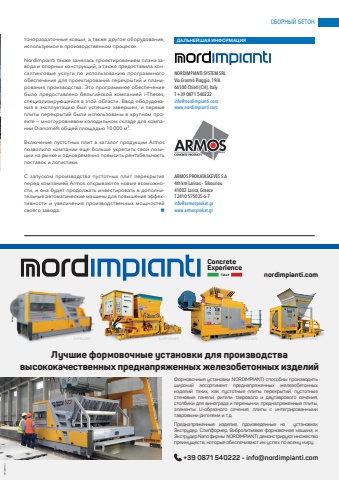 %u0421%u0411%u041e%u0420%u041d%u042b%u0419 %u0411%u0415%u0422%u041e%u041dwww.cpi-worldwide.com CPI %u2013 Concrete Plant International | Eurasia Edition %u2013 5 | 2025 115%u0442%u043e%u043d%u043e%u0440%u0430%u0437%u0434%u0430%u0442%u043e%u0447%u043d%u044b%u0435 %u043a%u043e%u0432%u0448%u0438, %u0430 %u0442%u0430%u043a%u0436%u0435 %u0434%u0440%u0443%u0433%u043e%u0435 %u043e%u0431%u043e%u0440%u0443%u0434%u043e%u0432%u0430%u043d%u0438%u0435, %u0438%u0441%u043f%u043e%u043b%u044c%u0437%u0443%u0435%u043c%u043e%u0435 %u0432 %u043f%u0440%u043e%u0438%u0437%u0432%u043e%u0434%u0441%u0442%u0432%u0435%u043d%u043d%u043e%u043c %u043f%u0440%u043e%u0446%u0435%u0441%u0441%u0435.Nordimpianti %u0442%u0430%u043a%u0436%u0435 %u0437%u0430%u043d%u044f%u043b%u0430%u0441%u044c %u043f%u0440%u043e%u0435%u043a%u0442%u0438%u0440%u043e%u0432%u0430%u043d%u0438%u0435%u043c %u043f%u043b%u0430%u043d%u0430 %u0437%u0430%u0432%u043e%u0434%u0430 %u0438 %u043e%u043f%u043e%u0440%u043d%u044b%u0445 %u043a%u043e%u043d%u0441%u0442%u0440%u0443%u043a%u0446%u0438%u0439, %u0430 %u0442%u0430%u043a%u0436%u0435 %u043f%u0440%u0435%u0434%u043e%u0441%u0442%u0430%u0432%u0438%u043b%u0430 %u043a%u043e%u043d%u0441%u0430%u043b%u0442%u0438%u043d%u0433%u043e%u0432%u044b%u0435 %u0443%u0441%u043b%u0443%u0433%u0438 %u043f%u043e %u0438%u0441%u043f%u043e%u043b%u044c%u0437%u043e%u0432%u0430%u043d%u0438%u044e %u043f%u0440%u043e%u0433%u0440%u0430%u043c%u043c%u043d%u043e%u0433%u043e %u043e%u0431%u0435%u0441%u043f%u0435%u0447%u0435%u043d%u0438%u044f %u0434%u043b%u044f %u043f%u0440%u043e%u0435%u043a%u0442%u0438%u0440%u043e%u0432%u0430%u043d%u0438%u044f %u043f%u0435%u0440%u0435%u043a%u0440%u044b%u0442%u0438%u0439 %u0438 %u043f%u043b%u0430%u043d%u0438%u0440%u043e%u0432%u0430%u043d%u0438%u044f %u043f%u0440%u043e%u0438%u0437%u0432%u043e%u0434%u0441%u0442%u0432%u0430. %u042d%u0442%u043e %u043f%u0440%u043e%u0433%u0440%u0430%u043c%u043c%u043d%u043e%u0435 %u043e%u0431%u0435%u0441%u043f%u0435%u0447%u0435%u043d%u0438%u0435 %u0431%u044b%u043b%u043e %u043f%u0440%u0435%u0434%u043e%u0441%u0442%u0430%u0432%u043b%u0435%u043d%u043e %u0431%u0435%u043b%u044c%u0433%u0438%u0439%u0441%u043a%u043e%u0439 %u043a%u043e%u043c%u043f%u0430%u043d%u0438%u0435%u0439 i-Theses, %u0441%u043f%u0435%u0446%u0438%u0430%u043b%u0438%u0437%u0438%u0440%u0443%u044e%u0449%u0435%u0439%u0441%u044f %u0432 %u044d%u0442%u043e%u0439 %u043e%u0431%u043b%u0430%u0441%u0442%u0438. %u0412%u0432%u043e%u0434 %u043e%u0431%u043e%u0440%u0443%u0434%u043e%u0432%u0430%u043d%u0438%u044f %u0432 %u044d%u043a%u0441%u043f%u043b%u0443%u0430%u0442%u0430%u0446%u0438%u044e %u0431%u044b%u043b %u0443%u0441%u043f%u0435%u0448%u043d%u043e %u0437%u0430%u0432%u0435%u0440%u0448%u0435%u043d, %u0438 %u043f%u0435%u0440%u0432%u044b%u0435 %u043f%u043b%u0438%u0442%u044b %u043f%u0435%u0440%u0435%u043a%u0440%u044b%u0442%u0438%u0439 %u0431%u044b%u043b%u0438 %u0438%u0441%u043f%u043e%u043b%u044c%u0437%u043e%u0432%u0430%u043d%u044b %u0432 %u043a%u0440%u0443%u043f%u043d%u043e%u043c %u043f%u0440%u043e%u0435%u043a%u0442%u0435 %u2014 %u043c%u043d%u043e%u0433%u043e%u0443%u0440%u043e%u0432%u043d%u0435%u0432%u043e%u043c %u0445%u043e%u043b%u043e%u0434%u0438%u043b%u044c%u043d%u043e%u043c %u0441%u043a%u043b%u0430%u0434%u0435 %u0434%u043b%u044f %u043a%u043e%u043c%u043f%u0430%u043d%u0438%u0438 Dianomefs %u043e%u0431%u0449%u0435%u0439 %u043f%u043b%u043e%u0449%u0430%u0434%u044c%u044e 10 000 %u043c%u00b2. %u0412%u043a%u043b%u044e%u0447%u0435%u043d%u0438%u0435 %u043f%u0443%u0441%u0442%u043e%u0442%u043d%u044b%u0445 %u043f%u043b%u0438%u0442 %u0432 %u043a%u0430%u0442%u0430%u043b%u043e%u0433 %u043f%u0440%u043e%u0434%u0443%u043a%u0446%u0438%u0438 Armos %u043f%u043e%u0437%u0432%u043e%u043b%u0438%u043b%u043e %u043a%u043e%u043c%u043f%u0430%u043d%u0438%u0438 %u0435%u0449%u0435 %u0431%u043e%u043b%u044c%u0448%u0435 %u0443%u043a%u0440%u0435%u043f%u0438%u0442%u044c %u0441%u0432%u043e%u0438 %u043f%u043e%u0437%u0438%u0446%u0438%u0438 %u043d%u0430 %u0440%u044b%u043d%u043a%u0435 %u0438 %u043e%u0434%u043d%u043e%u0432%u0440%u0435%u043c%u0435%u043d%u043d%u043e %u043f%u043e%u0432%u044b%u0441%u0438%u0442%u044c %u0440%u0435%u043d%u0442%u0430%u0431%u0435%u043b%u044c%u043d%u043e%u0441%u0442%u044c %u043f%u043e%u0441%u0442%u0430%u0432%u043e%u043a %u0438 %u043b%u043e%u0433%u0438%u0441%u0442%u0438%u043a%u0438.%u0421 %u0437%u0430%u043f%u0443%u0441%u043a%u043e%u043c %u043f%u0440%u043e%u0438%u0437%u0432%u043e%u0434%u0441%u0442%u0432%u0430 %u043f%u0443%u0441%u0442%u043e%u0442%u043d%u044b%u0445 %u043f%u043b%u0438%u0442 %u043f%u0435%u0440%u0435%u043a%u0440%u044b%u0442%u0438%u044f %u043f%u0435%u0440%u0435%u0434 %u043a%u043e%u043c%u043f%u0430%u043d%u0438%u0435%u0439 Armos %u043e%u0442%u043a%u0440%u044b%u0432%u0430%u044e%u0442%u0441%u044f %u043d%u043e%u0432%u044b%u0435 %u0432%u043e%u0437%u043c%u043e%u0436%u043d%u043e%u0441%u0442%u0438, %u0438 %u043e%u043d%u0430 %u0431%u0443%u0434%u0435%u0442 %u043f%u0440%u043e%u0434%u043e%u043b%u0436%u0430%u0442%u044c %u0438%u043d%u0432%u0435%u0441%u0442%u0438%u0440%u043e%u0432%u0430%u0442%u044c %u0432 %u0434%u043e%u043f%u043e%u043b%u043d%u0438%u0442%u0435%u043b%u044c%u043d%u044b%u0435 %u0430%u0432%u0442%u043e%u043c%u0430%u0442%u0438%u0447%u0435%u0441%u043a%u0438%u0435 %u043c%u0430%u0448%u0438%u043d%u044b %u0434%u043b%u044f %u043f%u043e%u0432%u044b%u0448%u0435%u043d%u0438%u044f %u044d%u0444%u0444%u0435%u043a%u0442%u0438%u0432%u043d%u043e%u0441%u0442%u0438 %u0438 %u0443%u0432%u0435%u043b%u0438%u0447%u0435%u043d%u0438%u044f %u043f%u0440%u043e%u0438%u0437%u0432%u043e%u0434%u0441%u0442%u0432%u0435%u043d%u043d%u044b%u0445 %u043c%u043e%u0449%u043d%u043e%u0441%u0442%u0435%u0439 %u0441%u0432%u043e%u0435%u0433%u043e %u0437%u0430%u0432%u043e%u0434%u0430. n%u0414%u0410%u041b%u042c%u041d%u0415%u0419%u0428%u0410%u042f %u0418%u041d%u0424%u041e%u0420%u041c%u0410%u0426%u0418%u042fNORDIMPIANTI SYSTEM SRLVia Erasmo Piaggio, 19/A66100 Chieti (CH), ItalyT +39 0871 540222info@nordimpianti.comwww.nordimpianti.comARMOS PROKATASKEVES S.A4th km Larisas %u2013 Sikouriou41002 Larisa, GreeceT 2410