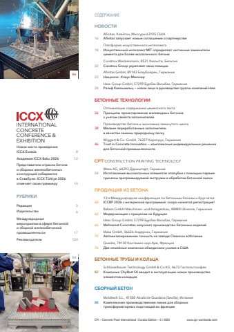 4 CPI %u2013 Concrete Plant International | Eurasia Edition %u2013 5 | 2025 www.cpi-worldwide.com%u0421%u041e%u0414%u0415%u0420%u0416%u0410%u041d%u0418%u0415%u041d%u041e%u0412%u041e%u0421%u0422%u0418Afinitas, %u041a%u043b%u0435%u0439%u0442%u043e%u043d, %u041c%u0438%u0441%u0441%u0443%u0440%u0438 63105 %u0421%u0428%u041016 Afinitas %u0437%u0430%u043f%u0443%u0441%u043a%u0430%u0435%u0442 %u043d%u043e%u0432%u044b%u0435 %u0441%u043e%u0433%u043b%u0430%u0448%u0435%u043d%u0438%u044f %u043e %u043f%u0430%u0440%u0442%u043d%u0435%u0440%u0441%u0442%u0432%u0435%u041f%u043b%u0430%u0442%u0444%u043e%u0440%u043c%u0430 %u0438%u0441%u043a%u0443%u0441%u0441%u0442%u0432%u0435%u043d%u043d%u043e%u0433%u043e %u0438%u043d%u0442%u0435%u043b%u043b%u0435%u043a%u0442%u043018 %u0418%u0441%u043a%u0443%u0441%u0441%u0442%u0432%u0435%u043d%u043d%u044b%u0439 %u0438%u043d%u0442%u0435%u043b%u043b%u0435%u043a%u0442 MIT %u043e%u043f%u0440%u0435%u0434%u0435%u043b%u044f%u0435%u0442 %u0447%u0430%u0441%u0442%u0438%u0447%u043d%u044b%u0435 %u0437%u0430%u043c%u0435%u043d%u0438%u0442%u0435%u043b%u0438 %u0446%u0435%u043c%u0435%u043d%u0442%u0430 %u0434%u043b%u044f %u0431%u043e%u043b%u0435%u0435 %u044d%u043a%u043e%u043b%u043e%u0433%u0438%u0447%u043d%u043e%u0433%u043e %u0431%u0435%u0442%u043e%u043d%u0430Construx Weckenmann, 8531 %u0425%u044e%u043b%u044c%u0441%u0442%u0435, %u0411%u0435%u043b%u044c%u0433%u0438%u044f22 Construx Group %u0443%u043a%u0440%u0435%u043f%u043b%u044f%u0435%u0442 %u0441%u0432%u043e%u0438 %u043f%u043e%u0437%u0438%u0446%u0438%u0438Afinitas GmbH, 89143 %u0411%u043b%u0430%u0443%u0431%u043e%u0439%u0440%u0435%u043d, %u0413%u0435%u0440%u043c%u0430%u043d%u0438%u044f23 %u041d%u0435%u043a%u0440%u043e%u043b%u043e%u0433, %u041a%u043b%u0430%u0443%u0441 %u041c%u044e%u043b%u043b%u0435%u0440 Hess Group GmbH, 57299 %u0411%u0443%u0440%u0431%u0430%u0445-%u0412%u0430%u043b%u044c%u0431%u0430%u0445, %u0413%u0435%u0440%u043c%u0430%u043d%u0438%u044f 24 %u0420%u0430%u043b%u044c%u0444 %u041a%u0432%u0435%u043b%u044c%u043c%u0430%u043b%u044c%u0446 %u2212 %u043d%u043e%u0432%u043e%u0435 %u043b%u0438%u0446%u043e %u0432 %u0440%u0443%u043a%u043e%u0432%u043e%u0434%u0441%u0442%u0432%u0435 %u0433%u0440%u0443%u043f%u043f%u044b %u043a%u043e%u043c%u043f%u0430%u043d%u0438%u0439 Hess%u0411%u0415%u0422%u041e%u041d%u041d%u042b%u0415 %u0422%u0415%u0425%u041d%u041e%u041b%u041e%u0413%u0418%u0418%u041e%u043f%u0442%u0438%u043c%u0438%u0437%u0430%u0446%u0438%u044f %u0441%u043e%u0434%u0435%u0440%u0436%u0430%u043d%u0438%u044f %u0446%u0435%u043c%u0435%u043d%u0442%u043d%u043e%u0433%u043e %u0442%u0435%u0441%u0442%u043026 %u041f%u0440%u0438%u043d%u0446%u0438%u043f%u044b %u043f%u0440%u043e%u0435%u043a%u0442%u0438%u0440%u043e%u0432%u0430%u043d%u0438%u044f %u043c%u0430%u043b%u043e%u0432%u043e%u0434%u043d%u044b%u0445 %u0431%u0435%u0442%u043e%u043d%u043e%u0432 %u0441 %u0443%u0447%u0435%u0442%u043e%u043c %u0441%u0432%u043e%u0439%u0441%u0442%u0432 %u0437%u0430%u043f%u043e%u043b%u043d%u0438%u0442%u0435%u043b%u0435%u0439%u041f%u0440%u043e%u0438%u0437%u0432%u043e%u0434%u0441%u0442%u0432%u043e %u0431%u0435%u0442%u043e%u043d%u0430 %u0438 %u044d%u043a%u043e%u043d%u043e%u043c%u0438%u043a%u0430 %u0437%u0430%u043c%u043a%u043d%u0443%u0442%u043e%u0433%u043e %u0446%u0438%u043a%u043b%u0430 38 %u041c%u0435%u043b%u043a%u0438%u0435 %u043f%u0435%u0440%u0435%u0440%u0430%u0431%u043e%u0442%u0430%u043d%u043d%u044b%u0435 %u0437%u0430%u043f%u043e%u043b%u043d%u0438%u0442%u0435%u043b%u0438 %u0432 %u043a%u0430%u0447%u0435%u0441%u0442%u0432%u0435 %u0437%u0430%u043c%u0435%u043d%u044b %u043f%u0440%u0438%u0440%u043e%u0434%u043d%u043e%u043c%u0443 %u043f%u0435%u0441%u043a%u0443 Wiggert & Co. GmbH, 76227 %u041a%u0430%u0440%u043b%u0441%u0440%u0443%u044d, %u0413%u0435%u0440%u043c%u0430%u043d%u0438%u044f 46 Trust in Concrete Innovation %u2212 %u043a%u043e%u043c%u043f%u043b%u0435%u043a%u0441%u043d%u044b%u0435 %u0438%u043d%u0434%u0438%u0432%u0438%u0434%u0443%u0430%u043b%u044c%u043d%u044b%u0435 %u0440%u0435%u0448%u0435%u043d%u0438%u044f %u0434%u043b%u044f %u0431%u0435%u0442%u043e%u043d%u043d%u043e%u0439 %u043f%u0440%u043e%u043c%u044b%u0448%u043b%u0435%u043d%u043d%u043e%u0441%u0442%u0438Wasa AG, 64293 %u0414%u0430%u0440%u043c%u0448%u0442%u0430%u0434%u0442, %u0413%u0435%u0440%u043c%u0430%u043d%u0438%u044f54 %u0418%u0437%u0433%u043e%u0442%u043e%u0432%u043b%u0435%u043d%u0438%u0435 %u0432%u044b%u0441%u043e%u043a%u043e%u0442%u043e%u0447%u043d%u044b%u0445 %u044d%u043b%u0435%u043c%u0435%u043d%u0442%u043e%u0432 %u043e%u043f%u0430%u043b%u0443%u0431%u043a%u0438 %u0441 %u043f%u043e%u043c%u043e%u0449%u044c%u044e %u043f%u0430%u0440%u0430%u043c%u0435%u0442%u0440%u0438%u0447%u0435%u0441%u043a%u0438 %u043f%u0440%u043e%u0433%u0440%u0430%u043c%u043c%u0438%u0440%u0443%u0435%u043c%u043e%u0439 %u044d%u043a%u0441%u0442%u0440%u0443%u0437%u0438%u0438 %u0438 %u043e%u0431%u0440%u0430%u0431%u043e%u0442%u043a%u0438 %u0431%u0435%u0442%u043e%u043d%u043d%u043e%u0439 %u0441%u043c%u0435%u0441%u0438%u041f%u0420%u041e%u0414%u0423%u041a%u0426%u0418%u042f %u0418%u0417 %u0411%u0415%u0422%u041e%u041d%u041013-%u044f %u041c%u0435%u0436%u0434%u0443%u043d%u0430%u0440%u043e%u0434%u043d%u0430%u044f %u043a%u043e%u043d%u0444%u0435%u0440%u0435%u043d%u0446%u0438%u044f %u043f%u043e %u0431%u0435%u0442%u043e%u043d%u043d%u044b%u043c %u0431%u043b%u043e%u043a%u0430%u043c %u0438 %u0431%u0440%u0443%u0441%u0447%u0430%u0442%u043a%u043560 ICCBP 2026 %u0441 %u0438%u043d%u0442%u0435%u0440%u0435%u0441%u043d%u043e%u0439 %u043f%u0440%u043e%u0433%u0440%u0430%u043c%u043c%u043e%u0439: %u0441%u043a%u043e%u0440%u043e %u043d%u0430%u0447%u043d%u0435%u0442%u0441%u044f %u0440%u0435%u0433%u0438%u0441%u0442%u0440%u0430%u0446%u0438%u044f!Rekers GmbH Maschinen- und Anlagenbau, 48480 %u0428%u043f%u0435%u043b%u043b%u0435, %u0413%u0435%u0440%u043c%u0430%u043d%u0438%u044f62 %u041c%u043e%u0434%u0435%u0440%u043d%u0438%u0437%u0430%u0446%u0438%u044f %u0441 %u043f%u0440%u0438%u0446%u0435%u043b%u043e%u043c %u043d%u0430 %u0431%u0443%u0434%u0443%u0449%u0435%u0435Hess Group GmbH, 57299 %u0411%u0443%u0440%u043