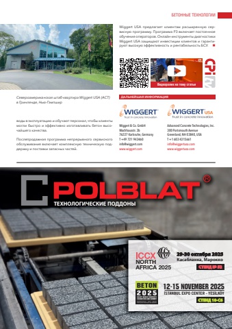 %u0411%u0415%u0422%u041e%u041d%u041d%u042b%u0415 %u0422%u0415%u0425%u041d%u041e%u041b%u041e%u0413%u0418%u0418www.cpi-worldwide.com CPI %u2013 Concrete Plant International | Eurasia Edition %u2013 5 | 2025 53%u0432%u043e%u0434%u044b %u0432 %u044d%u043a%u0441%u043f%u043b%u0443%u0430%u0442%u0430%u0446%u0438%u044e %u0438 %u043e%u0431%u0443%u0447%u0430%u044e%u0442 %u043f%u0435%u0440%u0441%u043e%u043d%u0430%u043b, %u0447%u0442%u043e%u0431%u044b %u043a%u043b%u0438%u0435%u043d%u0442%u044b %u043c%u043e%u0433%u043b%u0438 %u0431%u044b%u0441%u0442%u0440%u043e %u0438 %u044d%u0444%u0444%u0435%u043a%u0442%u0438%u0432%u043d%u043e %u0438%u0437%u0433%u043e%u0442%u0430%u0432%u043b%u0438%u0432%u0430%u0442%u044c %u0431%u0435%u0442%u043e%u043d %u0432%u044b%u0441%u043e%u0447%u0430%u0439%u0448%u0435%u0433%u043e %u043a%u0430%u0447%u0435%u0441%u0442%u0432%u0430. %u041f%u043e%u0441%u043b%u0435%u043f%u0440%u043e%u0434%u0430%u0436%u043d%u0430%u044f %u043f%u0440%u043e%u0433%u0440%u0430%u043c%u043c%u0430 %u043d%u0435%u043f%u0440%u0435%u0440%u044b%u0432%u043d%u043e%u0433%u043e %u0441%u0435%u0440%u0432%u0438%u0441%u043d%u043e%u0433%u043e %u043e%u0431%u0441%u043b%u0443%u0436%u0438%u0432%u0430%u043d%u0438%u044f %u0432%u043a%u043b%u044e%u0447%u0430%u0435%u0442 %u043a%u043e%u043c%u043f%u043b%u0435%u043a%u0441%u043d%u0443%u044e %u0442%u0435%u0445%u043d%u0438%u0447%u0435%u0441%u043a%u0443%u044e %u043f%u043e%u0434%u0434%u0435%u0440%u0436%u043a%u0443 %u0438 %u043f%u043e%u0441%u0442%u0430%u0432%u043a%u0438 %u0437%u0430%u043f%u0430%u0441%u043d%u044b%u0445 %u0447%u0430%u0441%u0442%u0435%u0439.Wiggert USA %u043f%u0440%u0435%u0434%u043b%u0430%u0433%u0430%u0435%u0442 %u043a%u043b%u0438%u0435%u043d%u0442%u0430%u043c %u0440%u0430%u0441%u0448%u0438%u0440%u0435%u043d%u043d%u0443%u044e %u0441%u0435%u0440%u0432%u0438%u0441%u043d%u0443%u044e %u043f%u0440%u043e%u0433%u0440%u0430%u043c%u043c%u0443. %u041f%u0440%u043e%u0433%u0440%u0430%u043c%u043c%u0430 P3 %u0432%u043a%u043b%u044e%u0447%u0430%u0435%u0442 %u043f%u043e%u0441%u0442%u043e%u044f%u043d%u043d%u043e%u0435 %u043e%u0431%u0443%u0447%u0435%u043d%u0438%u0435 %u043e%u043f%u0435%u0440%u0430%u0442%u043e%u0440%u043e%u0432. %u041e%u043d%u043b%u0430%u0439%u043d-%u0438%u043d%u0441%u0442%u0440%u0443%u043c%u0435%u043d%u0442%u044b %u0434%u0438%u0430%u0433%u043d%u043e%u0441%u0442%u0438%u043a%u0438 Wiggert USA %u0437%u0430%u0449%u0438%u0449%u0430%u044e%u0442 %u0438%u043d%u0432%u0435%u0441%u0442%u0438%u0446%u0438%u0438 %u043a%u043b%u0438%u0435%u043d%u0442%u043e%u0432 %u0438 %u0433%u0430%u0440%u0430%u043d%u0442%u0438%u0440%u0443%u044e%u0442 %u0432%u044b%u0441%u043e%u043a%u0443%u044e %u044d%u0444%u0444%u0435%u043a%u0442%u0438%u0432%u043d%u043e%u0441%u0442%u044c %u0438 %u0440%u0435%u043d%u0442%u0430%u0431%u0435%u043b%u044c%u043d%u043e%u0441%u0442%u044c %u0411%u0421%u0423. n%u0414%u0410%u041b%u042c%u041d%u0415%u0419%u0428%u0410%u042f %u0418%u041d%u0424%u041e%u0420%u041c%u0410%u0426%u0418%u042fWiggert & Co. GmbH Wachhausstr. 3b 76227 Karlsruhe, Germany T +49 721 943460info@wiggert.com www.wiggert.comAdvanced Concrete Technologies, Inc.300 Portsmouth AvenueGreenland, NH 03840, USAT +1 603 4315661 info@wiggertusa.comwww.wiggertusa.com%u0412%u0438%u0434%u0435%u043e%u0440%u043e%u043b%u0438%u043a %u043d%u0430 %u0442%u0435%u043c%u0443 %u0441%u0442%u0430%u0442%u044c%u0438%u0421%u0435%u0432%u0435%u0440%u043e%u0430%u043c%u0435%u0440%u0438%u043a%u0430%u043d%u0441%u043a%u0430%u044f %u0448%u0442%u0430%u0431-%u043a%u0432%u0430%u0440%u0442%u0438%u0440%u0430 Wiggert USA (ACT) %u0432 %u0413%u0440%u0438%u043d%u043b%u0435%u043d%u0434%u0435, %u041d%u044c%u044e-%u0413%u044d%u043c%u043f%u0448%u0438%u0440T%u0415%u0425%u041d%u041e%u041b%u041e%u0413%u0418%u0427%u0415%u0421%u041a%u0418%u0415 %u041f%u041e%u0414%u0414%u041e%u041d%u042b29-30 %u043e%u043a%u0442%u044f%u0431%u0440%u044f 2025%u041a%u0430%u0441%u0430%u0431%u043b%u0430%u043d%u043a%u0430, %u041c%u0430%u0440%u043e%u043a%u043a%u043e NORTHAFRICA 2025I.STANBUL EXPO CENTER - YESI.LK%u00d6YC%u0422%u0415%u041d%u0414 10-C6%u0421%u0422%u0415%u041d%u0414 %u2116 5212-15 NOVEMBER 2025Polblat_25-05_RU_halfpage_print.pdf 1 31.08.2025 21:23:38