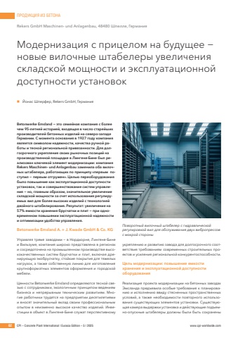 %u041f%u0420%u041e%u0414%u0423%u041a%u0426%u0418%u042f %u0418%u0417 %u0411%u0415%u0422%u041e%u041d%u041062 CPI %u2013 Concrete Plant International | Eurasia Edition %u2013 5 | 2025 www.cpi-worldwide.comBetonwerke Emsland %u2212 %u044d%u0442%u043e %u0441%u0435%u043c%u0435%u0439%u043d%u0430%u044f %u043a%u043e%u043c%u043f%u0430%u043d%u0438%u044f %u0441 %u0431%u043e%u043b%u0435%u0435 %u0447%u0435%u043c 95-%u043b%u0435%u0442%u043d%u0435%u0439 %u0438%u0441%u0442%u043e%u0440%u0438%u0435%u0439, %u0432%u0445%u043e%u0434%u044f%u0449%u0430%u044f %u0432 %u0447%u0438%u0441%u043b%u043e %u0441%u0442%u0430%u0440%u0435%u0439%u0448%u0438%u0445 %u043f%u0440%u043e%u0438%u0437%u0432%u043e%u0434%u0438%u0442%u0435%u043b%u0435%u0439 %u0431%u0435%u0442%u043e%u043d%u043d%u044b%u0445 %u0438%u0437%u0434%u0435%u043b%u0438%u0439 %u043d%u0430 %u0441%u0435%u0432%u0435%u0440%u043e-%u0437%u0430%u043f%u0430%u0434%u0435 %u0413%u0435%u0440%u043c%u0430%u043d%u0438%u0438. %u0421 %u043c%u043e%u043c%u0435%u043d%u0442%u0430 %u043e%u0441%u043d%u043e%u0432%u0430%u043d%u0438%u044f %u0432 1927 %u0433%u043e%u0434%u0443 %u043a%u043e%u043c%u043f%u0430%u043d%u0438%u044f %u044f%u0432%u043b%u044f%u0435%u0442%u0441%u044f %u0441%u0438%u043c%u0432%u043e%u043b%u043e%u043c %u043d%u0430%u0434%u0435%u0436%u043d%u043e%u0441%u0442%u0438, %u043a%u0430%u0447%u0435%u0441%u0442%u0432%u0430 %u0440%u0443%u0447%u043d%u043e%u0439 %u0440%u0430%u0431%u043e%u0442%u044b %u0438 %u0442%u0435%u0441%u043d%u043e%u0439 %u0440%u0435%u0433%u0438%u043e%u043d%u0430%u043b%u044c%u043d%u043e%u0439 %u043f%u0440%u0438%u0432%u044f%u0437%u0430%u043d%u043d%u043e%u0441%u0442%u0438. %u0414%u043b%u044f %u0434%u043e%u043b%u0433%u043e%u0441%u0440%u043e%u0447%u043d%u043e%u0433%u043e %u0443%u043a%u0440%u0435%u043f%u043b%u0435%u043d%u0438%u044f %u0441%u0432%u043e%u0438%u0445 %u0440%u044b%u043d%u043e%u0447%u043d%u044b%u0445 %u043f%u043e%u0437%u0438%u0446%u0438%u0439 %u043d%u0430 %u043f%u0440%u043e%u0438%u0437%u0432%u043e%u0434%u0441%u0442%u0432%u0435%u043d%u043d%u043e%u0439 %u043f%u043b%u043e%u0449%u0430%u0434%u043a%u0435 %u0432 %u041b%u0438%u043d%u0433%u0435%u043d%u0435-%u0411%u0438%u043d%u0435 %u0431%u044b%u043b %u0440%u0435%u0430%u043b%u0438%u0437%u043e%u0432%u0430%u043d %u043a%u043b%u044e%u0447%u0435%u0432%u043e%u0439 %u044d%u043b%u0435%u043c%u0435%u043d%u0442 %u043c%u043e%u0434%u0435%u0440%u043d%u0438%u0437%u0430%u0446%u0438%u0438: %u043a%u043e%u043c%u043f%u0430%u043d%u0438%u044f Rekers Maschinen- und Anlagenbau %u0437%u0430%u043c%u0435%u043d%u0438%u043b%u0430 %u043e%u0431%u0430 %u0432%u0438%u043b%u043e%u0447%u043d%u044b%u0445 %u0448%u0442%u0430%u0431%u0435%u043b%u0435%u0440%u0430, %u0440%u0430%u0431%u043e%u0442%u0430%u044e%u0449%u0438%u0445 %u043f%u043e %u043f%u0440%u0438%u043d%u0446%u0438%u043f%u0443 %u00ab%u043f%u0435%u0440%u0432%u044b%u043c %u043f%u043e%u0441%u0442%u0443%u043f%u0438%u043b %u2212 %u043f%u0435%u0440%u0432%u044b%u043c %u043e%u0442%u0433%u0440%u0443%u0436%u0435%u043d%u00bb. %u0426%u0435%u043b%u044c%u044e %u043f%u0435%u0440%u0435%u043e%u0431%u043e%u0440%u0443%u0434%u043e%u0432%u0430%u043d%u0438%u044f %u0431%u044b%u043b%u043e %u043f%u043e%u0432%u044b%u0448%u0435%u043d%u0438%u0435 %u043a%u0430%u043a %u044d%u043a%u0441%u043f%u043b%u0443%u0430%u0442%u0430%u0446%u0438%u043e%u043d%u043d%u043e%u0439 %u0434%u043e%u0441%u0442%u0443%u043f%u043d%u043e%u0441%u0442%u0438 %u0443%u0441%u0442%u0430%u043d%u043e%u0432%u043e%u043a, %u0442%u0430%u043a %u0438 %u0441%u043e%u0432%u0435%u0440%u0448%u0435%u043d%u0441%u0442%u0432%u043e%u0432%u0430%u043d%u0438%u0435 %u0441%u0438%u0441%u0442%u0435%u043c %u0443%u043f%u0440%u0430%u0432%u043b%u0435%u043d%u0438%u044f %u2212 %u043d%u043e, %u0433%u043b%u0430%u0432%u043d%u044b%u043c %u043e%u0431%u0440%u0430%u0437%u043e%u043c, %u0437%u043d%u0430%u0447%u0438%u0442%u0435%u043b%u044c%u043d%u043e%u0435 %u0443%u0432%u0435%u043b%u0438%u0447%u0435%u043d%u0438%u0435 %u0441%u043a%u043b%u0430%u0434%u0441%u043a%u043e%u0439 %u043c%u043e%u0449%u043d%u043e%u0441%u0442%u0438 %u0437%u0430 %u0441%u0447%u0435%u0442 %u0438%u0441%u043f%u043e%u043b%u044c%u0437%u043e%u0432%u0430%u043d%u0438%u044f %u0440%u0435%u0433%u0443%u043b%u0438%u0440%u0443%u0435%u043c%u044b%u0445 %u0432%u0438%u043b %u0434%u043b%u044f %u0431%u043e%u043b%u0435%u0435 %u0432%u044b%u0441%u043e%u043a%u0438%u0445 %u0438%u0437%u0434%u0435%u043b%u0438%u0439 %u0441 %u0442%u0435%u0445%u043d%u043e%u043b%u043e%u0433%u0438%u0435%u0439 %u0434%u0432%u043e%u0439%u043d%u043e%u0433%u043e %u0448%u0442%u0430%u0431%u0435%u043b%u0438%u0440%u043e%u0432%u0430%u043d%u0438%u044f. %u0420%u0435%u0437%u0443%u043b%u044c%u0442%u0430%u0442: %u0443%u0432%u0435%u043b%u0438%u0447%u0435%u043d%u0438%u0435 %u043d%u0430 57% %u0435%u043c%u043a%u043e%u0441%u0442%u0438 %u0445%u0440%u0430%u043d%u0435%u043d%u0438%u044f %u0431%u0440%u0443%u0441%u0447%u0430%u0442%u043a%u0438 %u0438 %u043f%u043b%u0438%u0442 %u2212 %u043f%u0440%u0438 %u043e%u0434%u043d%u043e%u0432%u0440%u0435%u043c%u0435%u043d%u043d%u043e%u043c %u043f%u043e%u0432%u044b%u0448%u0435%u043d%u0438%u0438 %u044d%u043a%u0441%u043f%u043b%u0443%u0430%u0442%u0430%u0446%u0438%u043e%u043d%u043d%u043e%u0439 %u043d%u0430%u0434%u0435%u0436%u043d%u043e%u0441%u0442%u0438 %u0438 %u043e%u043f%u0442%u0438%u043c%u0438%u0437%u0430%u0446%u0438%u0438 %u0443%u0434%u043e%u0431%u0441%u0442%u0432%u0430 %u0443%u043f%u0440%u0430%u0432%u043b%u0435%u043d%u0438%u044f.Betonwerke Emsland A. + J. Kwade GmbH & Co. KG %u0423%u043f%u0440%u0430%u0432%u043b%u044f%u044f %u0442%u0440%u0435%u043c%u044f %u0437%u0430%u0432%u043e%u0434%u0430%u043c%u0438 %u2212 %u0432 %u041d%u043e%u0440%u0434%u0445%u043e%u0440%u043d%u0435, %u041b%u0438%u043d%u0433%u0435%u043d%u0435-%u0411%u0438%u043d%u0435 %u0438 %u0412%u0438%u043b%u044c%u0437%u0443%u043c%u0435, %u043a%u043e%u043c%u043f%u0430%u043d%u0438%u044f %u0448%u0438%u0440%u043e%u043a%u043e %u043f%u0440%u0435%u0434%u0441%u0442%u0430%u0432%u043b%u0435%u043d%u0430 %u0432 %u0440%u0435%u0433%u0438%u043e%u043d%u0430%u0445 %u0438 %u0441%u043e%u0441%u0440%u0435%u0434%u043e%u0442%u043e%u0447%u0435%