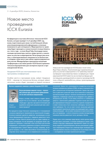 ICCX SPECIAL8 CPI %u2013 Concrete Plant International | Eurasia Edition %u2013 5 | 2025 www.cpi-worldwide.com%u041d%u043e%u0432%u043e%u0435 %u043c%u0435%u0441%u0442%u043e %u043f%u0440%u043e%u0432%u0435%u0434%u0435%u043d%u0438%u044f ICCX Eurasia3 - 4 %u0434%u0435%u043a%u0430%u0431%u0440%u044f 2025, %u0410%u043b%u043c%u0430%u0442%u044b, %u041a%u0430%u0437%u0430%u0445%u0441%u0442%u0430%u043dEURASIA 2025%u041a%u043e%u043d%u0444%u0435%u0440%u0435%u043d%u0446%u0438%u044f %u0438 %u0432%u044b%u0441%u0442%u0430%u0432%u043a%u0430 %u0431%u0435%u0442%u043e%u043d%u043d%u044b%u0445 %u0442%u0435%u0445%u043d%u043e%u043b%u043e%u0433%u0438%u0439 ICCX Eurasia, %u043a%u043e%u0442%u043e%u0440%u0430%u044f %u043f%u0440%u043e%u0439%u0434%u0435%u0442 3 %u0438 4 %u0434%u0435%u043a%u0430%u0431%u0440%u044f 2025 %u0433%u043e%u0434, %u0432%u043d%u043e%u0432%u044c %u043f%u043e%u0434%u0433%u043e%u0442%u043e%u0432%u0438%u043b%u0430 %u0434%u043b%u044f %u0441%u0432%u043e%u0438%u0445 %u0433%u043e%u0441%u0442%u0435%u0439 %u0431%u043e%u043b%u044c%u0448%u043e%u0439 %u043e%u0431%u044a%u0435%u043c %u0443%u0437%u043a%u043e%u0441%u043f%u0435%u0446%u0438%u0430%u043b%u0438%u0437%u0438%u0440%u043e%u0432%u0430%u043d%u043d%u043e%u0439 %u0438%u043d%u0444%u043e%u0440%u043c%u0430%u0446%u0438%u0438 %u0438 %u043e%u0442%u043b%u0438%u0447%u043d%u044b%u0435 %u0432%u043e%u0437%u043c%u043e%u0436%u043d%u043e%u0441%u0442%u0438 %u0434%u043b%u044f %u043d%u0435%u0442%u0432%u043e%u0440%u043a%u0438%u043d%u0433%u0430. %u041c%u0435%u0440%u043e%u043f%u0440%u0438%u044f%u0442%u0438%u0435 %u043f%u043e-%u043f%u0440%u0435%u0436%u043d%u0435%u043c%u0443 %u0431%u0443%u0434%u0435%u0442 %u043f%u0440%u043e%u0445%u043e%u0434%u0438%u0442%u044c %u0432 %u043a%u0430%u0437%u0430%u0445%u0441%u0442%u0430%u043d%u0441%u043a%u043e%u0439 %u0441%u0442%u043e%u043b%u0438%u0446%u0435 %u0410%u043b%u043c%u0430%u0442%u044b, %u043d%u043e %u0441 %u044d%u0442%u043e%u0433%u043e %u0433%u043e%u0434%u0430 %u2013 %u0432 %u043e%u0442%u0435%u043b%u0435 Royal Tulip. %u0411%u043b%u0430%u0433%u043e%u0434%u0430%u0440%u044f %u0441%u043c%u0435%u043d%u0435 %u043b%u043e%u043a%u0430%u0446%u0438%u0438 %u043e%u0440%u0433%u0430%u043d%u0438%u0437%u0430%u0442%u043e%u0440%u044b %u0441%u043c%u043e%u0433%u043b%u0438, %u0441%u0440%u0435%u0434%u0438 %u043f%u0440%u043e%u0447%u0435%u0433%u043e, %u0441%u043d%u0438%u0437%u0438%u0442%u044c %u0446%u0435%u043d%u044b %u043d%u0430 %u0443%u0447%u0430%u0441%u0442%u0438%u0435 %u0432 %u043c%u0435%u0440%u043e%u043f%u0440%u0438%u044f%u0442%u0438%u0438. %u0420%u0435%u0433%u0438%u0441%u0442%u0440%u0430%u0446%u0438%u044f %u0443%u0436%u0435 %u043d%u0430%u0447%u0430%u043b%u0430%u0441%u044c, %u0438 %u0437%u0430%u0438%u043d%u0442%u0435%u0440%u0435%u0441%u043e%u0432%u0430%u043d%u043d%u044b%u0435 %u0441%u043f%u0435%u0446%u0438%u0430%u043b%u0438%u0441%u0442%u044b %u0438%u0437 %u041a%u0430%u0437%u0430%u0445%u0441%u0442%u0430%u043d%u0430 %u0438 %u0441%u043e%u0441%u0435%u0434%u043d%u0438%u0445 %u0441%u0442%u0440%u0430%u043d %u043c%u043e%u0433%u0443%u0442 %u0443%u0436%u0435 %u0441%u0435%u0439%u0447%u0430%u0441 %u0437%u0430%u0440%u0435%u0433%u0438%u0441%u0442%u0440%u0438%u0440%u043e%u0432%u0430%u0442%u044c%u0441%u044f %u0434%u043b%u044f %u0443%u0447%u0430%u0441%u0442%u0438%u044f. %u041c%u0435%u0436%u0434%u0443%u043d%u0430%u0440%u043e%u0434%u043d%u043e %u043f%u0440%u0438%u0437%u043d%u0430%u043d%u043d%u0430%u044f %u043a%u043e%u043d%u0446%u0435%u043f%u0446%u0438%u044f %u043a%u043e%u043d%u0444%u0435%u0440%u0435%u043d%u0446%u0438%u0438 %u0438 %u0432%u044b%u0441%u0442%u0430%u0432%u043a%u0438 %u0434%u0435%u043b%u0430%u0435%u0442 ICCX Eurasia %u043f%u0440%u0438%u0432%u043b%u0435%u043a%u0430%u0442%u0435%u043b%u044c%u043d%u044b%u043c %u043c%u0435%u0440%u043e%u043f%u0440%u0438%u044f%u0442%u0438%u0435%u043c %u0434%u043b%u044f %u044d%u043a%u0441%u043f%u0435%u0440%u0442%u043e%u0432 %u043e%u0442%u0440%u0430%u0441%u043b%u0438 %u0438 %u043f%u0440%u043e%u0438%u0437%u0432%u043e%u0434%u0438%u0442%u0435%u043b%u0435%u0439 %u0431%u0435%u0442%u043e%u043d%u0430.%u0410%u043a%u0430%u0434%u0435%u043c%u0438%u044f ICCX %u043a%u0430%u043a %u043d%u0435%u043e%u0442%u044a%u0435%u043c%u043b%u0435%u043c%u0430%u044f %u0447%u0430%u0441%u0442%u044c %u043f%u0440%u043e%u0433%u0440%u0430%u043c%u043c%u044b %u043a%u043e%u043d%u0444%u0435%u0440%u0435%u043d%u0446%u0438%u0438%u041e%u0441%u043e%u0431%u043e%u0435 %u043c%u0435%u0441%u0442%u043e %u0432 %u043f%u0440%u043e%u0433%u0440%u0430%u043c%u043c%u0435 %u0432%u043d%u043e%u0432%u044c %u0437%u0430%u0439%u043c%u0435%u0442 %u0410%u043a%u0430%u0434%u0435%u043c%u0438%u044f ICCX %u2212 %u0441%u0435%u043c%u0438%u043d%u0430%u0440 %u043f%u043e %u0442%u0435%u0445%u043d%u043e%u043b%u043e%u0433%u0438%u0438 %u0431%u0435%u0442%u043e%u043d%u0430, %u043a%u043e%u0442%u043e%u0440%u044b%u0439 %u0437%u0430%u0439%u043c%u0435%u0442 %u043d%u0435%u0441%u043a%u043e%u043b%u044c%u043a%u043e %u0447%u0430%u0441%u043e%u0432 %u0438 %u0431%u0443%u0434%u0435%u0442 %u043f%u0440%u043e%u0445%u043e%u0434%u0438%u0442%u044c %u0432 %u043f%u0435%u0440%u0432%u043e%u0439 %u043f%u043e%u043b%u043e%u0432%u0438%u043d%u0435 %u041d%u043e%u0432%u044b%u043c %u043c%u0435%u0441%u0442%u043e%u043c %u043f%u0440%u043e%u0432%u0435%u0434%u0435%u043d%u0438%u044f ICCX Eurasia %u0441%u0442%u0430%u043d%u0435%u0442 %u043e%u0442%u0435%u043b%u044c Royal Tulip %u0432 %u0410%u043b%u043c%u0430%u0442%u044b. %u041f%u043e%u0441%u0435%u0442%u0438%u0442%u0435%u043b%u0435%u0439 %u0436%u0434%u0443%u0442 %u043f%u0440%u0438%u0432%u043b%u0435%u043a%u0430%u0442%u0435%u043b%u044c%u043d%u044b%u0435 %u0446%u0435%u043d%u044b %u043d%u0430 %u0443%u0447%u0430%u0441%u0442%u0438%u0435 %u0432 %u043c%u0435%u0440%u043e%u043f%u0440%u0438%u044f%u0442%u0438%u0438 %u0438 %u043f%u043e-%u043f%u0440%u0435%u0436%u043d%u0435%u043c%u0443 %u043a%u043e%u043c%u043f%u0430%u043a%u0442%u043d%u044b%u0439 %u0444%u043e%u0440%u043c%u0430%u0442 %u043e%u0442%u0440%u0430%u0441%u043b%u0435%u0432%u043e%u0439 %u0432%u044b%u0441%u0442%u0430%u0432%u043a%u0438 %u0438 %u043a%u043e%u043d%u0444%u0435%u0440%u04
