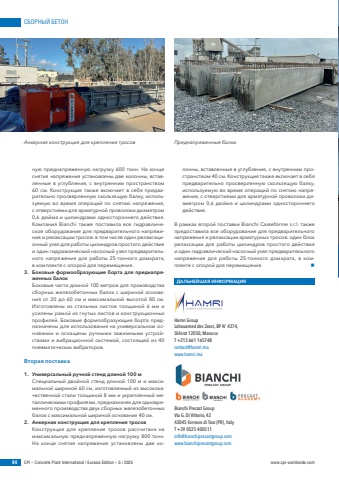 %u0421%u0411%u041e%u0420%u041d%u042b%u0419 %u0411%u0415%u0422%u041e%u041d94 CPI %u2013 Concrete Plant International | Eurasia Edition %u2013 5 | 2025 www.cpi-worldwide.com%u043d%u0443%u044e %u043f%u0440%u0435%u0434%u043d%u0430%u043f%u0440%u044f%u0436%u0435%u043d%u043d%u0443%u044e %u043d%u0430%u0433%u0440%u0443%u0437%u043a%u0443 600 %u0442%u043e%u043d%u043d. %u041d%u0430 %u043a%u043e%u043d%u0446%u0435 %u0441%u043d%u044f%u0442%u0438%u044f %u043d%u0430%u043f%u0440%u044f%u0436%u0435%u043d%u0438%u044f %u0443%u0441%u0442%u0430%u043d%u043e%u0432%u043b%u0435%u043d%u044b %u0434%u0432%u0435 %u043a%u043e%u043b%u043e%u043d%u043d%u044b, %u0432%u0441%u0442%u0430%u0432%u043b%u0435%u043d%u043d%u044b%u0435 %u0432 %u0443%u0433%u043b%u0443%u0431%u043b%u0435%u043d%u0438%u044f, %u0441 %u0432%u043d%u0443%u0442%u0440%u0435%u043d%u043d%u0438%u043c %u043f%u0440%u043e%u0441%u0442%u0440%u0430%u043d%u0441%u0442%u0432%u043e%u043c 60 %u0441%u043c. %u041a%u043e%u043d%u0441%u0442%u0440%u0443%u043a%u0446%u0438%u044f %u0442%u0430%u043a%u0436%u0435 %u0432%u043a%u043b%u044e%u0447%u0430%u0435%u0442 %u0432 %u0441%u0435%u0431%u044f %u043f%u0440%u0435%u0434%u0432%u0430%u0440%u0438%u0442%u0435%u043b%u044c%u043d%u043e %u043f%u0440%u043e%u0441%u0432%u0435%u0440%u043b%u0435%u043d%u043d%u0443%u044e %u0441%u043a%u043e%u043b%u044c%u0437%u044f%u0449%u0443%u044e %u0431%u0430%u043b%u043a%u0443, %u0438%u0441%u043f%u043e%u043b%u044c%u0437%u0443%u0435%u043c%u0443%u044e %u0432%u043e %u0432%u0440%u0435%u043c%u044f %u043e%u043f%u0435%u0440%u0430%u0446%u0438%u0439 %u043f%u043e %u0441%u043d%u044f%u0442%u0438%u044e %u043d%u0430%u043f%u0440%u044f%u0436%u0435%u043d%u0438%u044f, %u0441 %u043e%u0442%u0432%u0435%u0440%u0441%u0442%u0438%u044f%u043c%u0438 %u0434%u043b%u044f %u0430%u0440%u043c%u0430%u0442%u0443%u0440%u043d%u043e%u0439 %u043f%u0440%u043e%u0432%u043e%u043b%u043e%u043a%u0438 %u0434%u0438%u0430%u043c%u0435%u0442%u0440%u043e%u043c 0,6 %u0434%u044e%u0439%u043c%u0430 %u0438 %u0446%u0438%u043b%u0438%u043d%u0434%u0440%u0430%u043c%u0438 %u043e%u0434%u043d%u043e%u0441%u0442%u043e%u0440%u043e%u043d%u043d%u0435%u0433%u043e %u0434%u0435%u0439%u0441%u0442%u0432%u0438%u044f. %u041a%u043e%u043c%u043f%u0430%u043d%u0438%u044f Bianchi %u0442%u0430%u043a%u0436%u0435 %u043f%u043e%u0441%u0442%u0430%u0432%u0438%u043b%u0430 %u0432%u0441%u0435 %u0433%u0438%u0434%u0440%u0430%u0432%u043b%u0438%u0447%u0435%u0441%u043a%u043e%u0435 %u043e%u0431%u043e%u0440%u0443%u0434%u043e%u0432%u0430%u043d%u0438%u0435 %u0434%u043b%u044f %u043f%u0440%u0435%u0434%u0432%u0430%u0440%u0438%u0442%u0435%u043b%u044c%u043d%u043e%u0433%u043e %u043d%u0430%u043f%u0440%u044f%u0436%u0435%u043d%u0438%u044f %u0438 %u0440%u0435%u043b%u0430%u043a%u0441%u0430%u0446%u0438%u0438 %u0442%u0440%u043e%u0441%u043e%u0432: %u0432 %u0442%u043e%u043c %u0447%u0438%u0441%u043b%u0435 %u043e%u0434%u0438%u043d %u0440%u0435%u043b%u0430%u043a%u0441%u0430%u0446%u0438%u043e%u043d%u043d%u044b%u0439 %u0443%u0437%u0435%u043b %u0434%u043b%u044f %u0440%u0430%u0431%u043e%u0442%u044b %u0446%u0438%u043b%u0438%u043d%u0434%u0440%u043e%u0432 %u043f%u0440%u043e%u0441%u0442%u043e%u0433%u043e %u0434%u0435%u0439%u0441%u0442%u0432%u0438%u044f %u0438 %u043e%u0434%u0438%u043d %u0433%u0438%u0434%u0440%u0430%u0432%u043b%u0438%u0447%u0435%u0441%u043a%u0438%u0439 %u043d%u0430%u0441%u043e%u0441%u043d%u044b%u0439 %u0443%u0437%u0435%u043b %u043f%u0440%u0435%u0434%u0432%u0430%u0440%u0438%u0442%u0435%u043b%u044c%u043d%u043e%u0433%u043e %u043d%u0430%u043f%u0440%u044f%u0436%u0435%u043d%u0438%u044f %u0434%u043b%u044f %u0440%u0430%u0431%u043e%u0442%u044b 25-%u0442%u043e%u043d%u043d%u043e%u0433%u043e %u0434%u043e%u043c%u043a%u0440%u0430%u0442%u0430, %u0432 %u043a%u043e%u043c%u043f%u043b%u0435%u043a%u0442%u0435 %u0441 %u043e%u043f%u043e%u0440%u043e%u0439 %u0434%u043b%u044f %u043f%u0435%u0440%u0435%u043c%u0435%u0449%u0435%u043d%u0438%u044f. 3. %u0411%u043e%u043a%u043e%u0432%u044b%u0435 %u0444%u043e%u0440%u043c%u043e%u043e%u0431%u0440%u0430%u0437%u0443%u044e%u0449%u0438%u0435 %u0431%u043e%u0440%u0442%u0430 %u0434%u043b%u044f %u043f%u0440%u0435%u0434%u043d%u0430%u043f%u0440%u044f%u0436%u0435%u043d%u043d%u044b%u0445 %u0431%u0430%u043b%u043e%u043a%u0411%u043e%u043a%u043e%u0432%u044b%u0435 %u0447%u0430%u0441%u0442%u0438 %u0434%u043b%u0438%u043d%u043e%u0439 100 %u043c%u0435%u0442%u0440%u043e%u0432 %u0434%u043b%u044f %u043f%u0440%u043e%u0438%u0437%u0432%u043e%u0434%u0441%u0442%u0432%u0430 %u0441%u0431%u043e%u0440%u043d%u044b%u0445 %u0436%u0435%u043b%u0435%u0437%u043e%u0431%u0435%u0442%u043e%u043d%u043d%u044b%u0445 %u0431%u0430%u043b%u043e%u043a %u0441 %u0448%u0438%u0440%u0438%u043d%u043e%u0439 %u043e%u0441%u043d%u043e%u0432%u0430%u043d%u0438%u044f %u043e%u0442 20 %u0434%u043e 60 %u0441%u043c %u0438 %u043c%u0430%u043a%u0441%u0438%u043c%u0430%u043b%u044c%u043d%u043e%u0439 %u0432%u044b%u0441%u043e%u0442%u043e%u0439 80 %u0441%u043c. %u0418%u0437%u0433%u043e%u0442%u043e%u0432%u043b%u0435%u043d%u044b %u0438%u0437 %u0441%u0442%u0430%u043b%u044c%u043d%u044b%u0445 %u043b%u0438%u0441%u0442%u043e%u0432 %u0442%u043e%u043b%u0449%u0438%u043d%u043e%u0439 6 %u043c%u043c %u0438 %u0443%u0441%u0438%u043b%u0435%u043d%u044b %u0440%u0430%u043c%u043e%u0439 %u0438%u0437 %u0433%u043d%u0443%u0442%u044b%u0445 %u043b%u0438%u0441%u0442%u043e%u0432 %u0438 %u043a%u043e%u043d%u0441%u0442%u0440%u0443%u043a%u0446%u0438%u043e%u043d%u043d%u044b%u0445 %u043f%u0440%u043e%u0444%u0438%u043b%u0435%u0439. %u0411%u043e%u043a%u043e%u0432%u044b%u0435 %u0444%u043e%u0440%u043c%u043e%u043e%u0431%u0440%u0430%u0437%u0443%u044e%u0449%u0438%u0435 %u0431%u043e%u0440%u0442%u0430 %u043f%u0440%u0435%u0434%u043d%u0430%u0437%u043d%u0430%u0447%u0435%u043d%u044b %u0434%u043b%u044f %u0438%u0441%u043f%u043e%u043b%u044c%u0437%u043e%u0432%u0430%u043d%u0438%u044f %u043d%u0430 %u0443%u043d%u0438%u0432%u0435%u0440%u0441%u0430%u043b%u044c%u043d%u043e%u043c %u043e%u0441%u043d%u043e%u0432%u0430%u043d%u0438%u0438 %u0438 %u043e%u0441%u043d%u0430%u0449%u0435%u043d%u044b %u0440%u0443%u0447%u043d%u044b%u043c%u0438 %u0437%u0430%u0436%