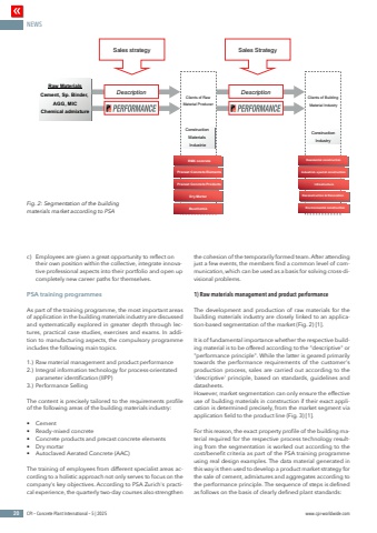 NEWS20 CPI %u2013 Concrete Plant International %u2013 5 | 2025 www.cpi-worldwide.com%u0017ff2%u0001%u0013ff/\\%u0008%u000e%u000e%u0005%u0001%u0013%u0010%\%u000c%u0016%u0011ffi ffifflflffl%u0011%u0013!%u000c&%)*(+ffi*!&%%u0001%u0013%u001a*ff(!%u001a#)%u0001%u0011%ffl+)*(!ff%u0003%u000f%u000e%u000b%u0010%u0014%u0013%u0001%u0011%u000c%u0001%u0007%u0008%u0016%u0001%u0005%u0008%u0014%u000b%u0012%u000e%u0008%u000f%u0001%u0006%u0012%u0011%u0015%u0009%u000b%u0012%u0001%u0003%u000b%u0016%u0009%u0015%u000e%u0014%u0017%u000e%u0013%u0012%u000c&%)*(+ffi*!&%%u0011%ffl+)*(.%u0003%u000b%u0016%u0009%u0015%u000e%u0014%u0017%u000e%u0013%u0012%u0003%u000f%u000e%u000b%u0010%u0014%u0013%u0001%u0011%u000c%u0001%u0015%u000e%u000f%u000e%u0010%u0005%u0008%u0014%u000b%u0012%u000e%u0008%u000f%u0001%u0004%u0010%u0015%u0013%u0014%u0012%u0017%u000c%u0016%u0011ffi%u0001%u000cfflflffl%u0011%u0013!%u0008%u0006%u0009%u0001%u000b%u0013%u0012%u000b%u0014%u0016%u0007%u0014%u000b%u0015%u0016%u0001%u0003%u0013%u0012%u000b%u0014%u0016%u0001%u0005%u0010%u0011%u0012%u0016%u0015%u0007%u0014%u000b%u0015%u0016%u0001%u0003%u0013%u0012%u000b%u0014%u0016%u0001%u0007%u0014%u0013%u000c%u0017%u000b%u0016%u0015%u0006%u0013%u000c%u0009%u000f%u0014%u000c%u0007%u0001%u0008%u0010%u000f%u0013%u0014%u0012%u0015%u0008%u0014%u000c%u0010%u000f%u0005%u000f%u0009%u0015%u0013%u0014%u0012%u000c%u0007%u0003 %u0013%u0011%u0008%u000c%u0007%u0001%u0008%u0010%u000f%u0013%u0014%u0012%u0015%u0008%u0014%u000c%u0010%u000f%u0005%u000f%u000b%u0012%u0007%u0013%u0014%u0012%u0015%u0008%u0014%u0015%u0012%u0001%u0004%u0014%u0018%u0001%u0006%u0013%u0014%u0016%u0014 %u0006%u0008%u0010%u000f%u0013%u0014%u0012%u0015%u0008%u0014%u000c%u0010%u000f%u0001%u0001%u0006%u000f%u0010%u0016%u0007%u0014%u000c%u0010%u000f,%u0017%u000b%u000e%u0011%u000f %u0004%u000f%u0016%u000c%u0012%u0010%u000f%u000e%u000f%u0014%u0007%u0001%u0008%u0010%u000f%u0013%u0014%u0012%u0015%u0008%u0014%u000c%u0010%u000fc) Employees are given a great opportunity to reflect on their own position within the collective, integrate innovative professional aspects into their portfolio and open up completely new career paths for themselves. PSA training programmes As part of the training programme, the most important areas of application in the building materials industry are discussed and systematically explored in greater depth through lectures, practical case studies, exercises and exams. In addition to manufacturing aspects, the compulsory programme includes the following main topics.1.) Raw material management and product performance2.) Integral information technology for process-orientated parameter identification (IIPP)3.) Performance SellingThe content is precisely tailored to the requirements profile of the following areas of the building materials industry:%u2022 Cement%u2022 Ready-mixed concrete%u2022 Concrete products and precast concrete elements%u2022 Dry mortar%u2022 Autoclaved Aerated Concrete (AAC)The training of employees from different specialist areas according to a holistic approach not only serves to focus on the company's key objectives. According to PSA Zurich's practical experience, the quarterly two-day courses also strengthen the cohesion of the temporarily formed team. After attending just a few events, the members find a common level of communication, which can be used as a basis for solving cross-divisional problems. 1) Raw materials management and product performanceThe development and production of raw materials for the building materials industry are closely linked to an application-based segmentation of the market (Fig. 2) [1].It is of fundamental importance whether the respective building material is to be offered according to the \\ principle\towards the performance requirements of the customer's production process, sales are carried out according to the 'descriptive' principle, based on standards, guidelines and datasheets.However, market segmentation can only ensure the effective use of building materials in construction if their exact application is determined precisely, from the market segment via application field to the product line (Fig. 3) [1]. For this reason, the exact property profile of the building material required for the respective process technology resulting from the segmentation is worked out according to the cost/benefit criteria as part of the PSA training programme using real design examples. The data material generated in this way is then used to develop a product market strategy for the sale of cement, admixtures and aggregates according to the performance principle. The sequence of steps is defined as follows on the basis of clearly defined plant standards: Fig. 2: Segmentation of the building materials market according to PSA