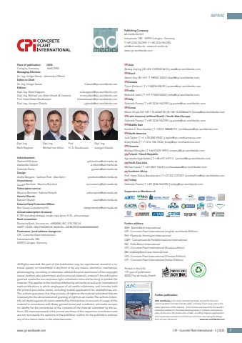 www.cpi-worldwide.com CPI %u2013 Concrete Plant International %u2013 5 | 2025 7IMPRINTSupporters or Members of:AsiaZhang Jinying | M +86 13920414614 | asia@cpi-worldwide.comBrazilAkemi Soy | M +55 11 98965 3005 | brazil@cpi-worldwide.comEurasiaTimur Dmitrov | T +7 4822630039 | eurasia@cpi-worldwide.comIndiaMukund Joshi | T +91 9158010000 | india@cpi-worldwide.com ItalyGabriele Pianta | T +49 2236 962390 | g.pianta@cpi-worldwide.com KoreaMoon-Hi Lee | M +49 173 5356753 | M +82 10 42806473 | korea@cpi-worldwide.comLatin America (without Brazil) / South West EuropeGabriele Pianta | T +49 2236 962390 | g.pianta@cpi-worldwide.comMiddle EastKambiz S. Pour Kardan | T +98 21 88888191 | middleeast@cpi-worldwide.comNorth AmericaJudi Taylor | T +1 678-880-9942 | j.taylor@cpi-northamerica.comKristy Kieda | T +1 616 706 7536 | kristy@cpi-northamerica.comOceaniaMichael Khrapko | T +64 9 629 5992 | oceania@cpi-worldwide.comPoland / Czech RepublicAgnieszka Spychalska | T +48 697 619111 | poland@cpi-worldwide.comSouth East AsiaMichael Lazar | T +65 6861 5668 | southeastasia@cpi-worldwide.comSouthern AfricaProf. Hans-Dieter Beushausen | T +27 82 7375057 | southafrica@cpi-worldwide.com TurkeyGabriele Pianta | T +49 2236 962390 | turkey@cpi-worldwide.comFurther editions:BWI %u00b7 BetonWerk InternationalCPI %u00b7 Concrete Plant International (english worldwide Edition)PHI %u00b7 Planta de Hormig%u00f3n InternacionalC&PI %u00b7 Calcestruzzo & Prefabbricazione International PBI %u00b7 Pr%u00e9fa B%u00e9ton InternationalCPI %u00b7 Concrete Plant International (Eurasia edition)ZBI %u00b7 ZakladyBetonowe InternationalCPI %u00b7 Concrete Plant International (Chinese Edition)CPI %u00b7 Concrete Plant International (Indian Edition)Place of publication: ISSN:Cologne, Germany 1864-239XManaging Directors:Dr.-Ing. Holger Karutz %u00b7 Alexander OlbrichEditor-in-Chief:Dr.-Ing. Holger Karutz h.karutz@cpi-worldwide.comEditors:Dipl.-Ing. Mark K%u00fcppers m.kueppers@cpi-worldwide.comDipl.-Ing. Michael von Ahlen (Head of Content) m.vonahlen@cpi-worldwide.comProf. Hans-Dieter Beushausen h.beushausen@cpi-worldwide.comDipl.-Ing. Juergen Glaesle j.glaesle@cpi-worldwide.comAdvertisement:Gerhard Kl%u00f6ckner g.kloeckner@ad-media.deAlexander Olbrich a.olbrich@ad-media.deGabriele Pianta g.pianta@ad-media.deDesign:Andr%u00e9 Besgens %u00b7 Carmen Frick %u00b7 Alex Konn production@ad-media.deAccountancy:Sandra Borchert %u00b7 Maurice Borchert accountancy@ad-media.deSubscription service:Maurice Borchert %u00b7 Sabrina Pontalti subscription@ad-media.deHead of Events:Bahram Ghaleh events@ad-media.de External Data Protection Officer:Ben Green Consultancy UG dataprotection@ad-media.de Annual subscription (6 issues):$ 189 including postage, single copy price: $ 35,- plus postageBank connection:Deutsche Bank, Account no.: 6800080, BIC: 370 700 24SWIFT CODE: DEUTDEDBKOE, IBAN-No.: DE88370700240680008000Postmaster | send address changes to:CPI %u2013 Concrete Plant InternationalIndustriestra%u00dfe 18050999 Cologne, GermanyAll Rights reserved. No part of this publication may be reproduced, stored in a re -trieval system, or transmitted in any form or by any means, electronic, mechanical, photocopying, recording or otherwise, without the prior permission of the copyright owner. Authors who submit texts and/or pictorial material (%u201ematerial%u201c) for publication grant ad-media the non-exclusive right, unlimited in time and territory, to publish the material. This applies to the media published by ad-media as well as to international trade publications in which employees of ad-media collaborate, and includes both the printed and online sector, including mobile applications for smartphones, etc. The authors guarantee that they possess all rights to the material submitted that are necessary for the aforementioned granting of rights to ad-media. The authors indemnify ad-media against all claims asserted by third parties on account of usage of the material in accordance with these general terms and conditions. ad-media accepts no liability for the correctness of the contents of the material submitted by the authors. All views expressed in this journal are those of the respective contributors and are not neccesarily the opinions of the publisher, neither do the publishers endorse any of the claims made in the advertisements.Further publication:AAC worldwide is the only international trade journal for the autoclaved aerated concrete industry (AAC-industry). Each issue covers the entire spectrum of the industry %u2013 from trends and news from the world%u00b4s individual markets to the latest developments in research and science, state-of-the-art in the production of AAC, building material applications and construction solutions and last but not least, interesting buildings from all over the world. www.aac-worldwide.comDipl.-Ing. Mark K%u00fcppersDipl.-Ing. Michael von AhlenProf.H.-D. BeushausenDipl.-Ing. Juergen GlaeslePublishing Company:ad-media GmbHIndustriestr. 180 %u00b7 50999 Cologne %u00b7 GermanyT +49 2236 962390 %u00b7 F +49 2236 962396info@ad-media.de %u00b7 www.ad-media.dewww.cpi-worldwide.comPrinted in the USA 19th year of publication %u00a92007 by ad-media GmbH www.aac-worldwide.com3 | 2025News & Markets Wehrhahn Teeyer Smart Technology Corp. Ltd. established in China Science & Innovation Integrated RC columns in formwork blocks and new partition wall connection Production Technology Smart Steam Solution for Green and Efficient AAC Production Application & Construction Coupled autoclaved aerated concrete confined walls subjected to lateral loads Projects A winery that blends tradition, innovation, and sustainabilityAerated Concrete AutoclavedWORLDWIDEwww.kapag.kz