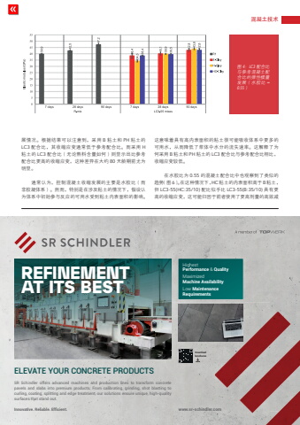 www.sr-schindler.comHighestPerformance & QualityMaximizedMachine AvailabilityLow MaintenanceRequirementsREFINEMENTAT ITS BEST ELEVATE YOUR CONCRETE PRODUCTSHighestPerformance & QualityMaximizedMachine AvailabilityLow MaintenanceRequirementsDownloadbrochuresSR Schindler offers advanced machines and production lines to transform concretepavers and slabs into premium products. From calibrating, grinding, shot blasting to curling, coating, splitting and edge treatment, our solutions ensure unique, high-quality surfaces that stand out.Innovative. Reliable. Effi cient.%u6df7%u51dd%u571f%u6280%u672f%u56fe 4%uff1aLC3 %u914d%u5408%u6bd4%u4e0e%u53c2%u8003%u6df7%u51dd%u571f%u914d%u5408%u6bd4%u7684%u5f39%u6027%u6a21%u91cf%u53d1%u5c55%uff08%u6c34%u80f6%u6bd4 = 0.55%uff09%u5c55%u60c5%u51b5%u3002%u6839%u636e%u7ed3%u679c%u53ef%u4ee5%u6ce8%u610f%u5230%uff0c%u91c7%u7528 B %u7c98%u571f%u548c PH %u7c98%u571f%u7684LC3 %u914d%u5408%u6bd4%uff0c%u5176%u6536%u7f29%u5e94%u53d8%u901a%u5e38%u4f4e%u4e8e%u53c2%u8003%u914d%u5408%u6bd4%u3002%u800c%u91c7%u7528 H%u7c98%u571f%u7684 LC3 %u914d%u5408%u6bd4%uff08%u65e0%u8bba%u719f%u6599%u542b%u91cf%u5982%u4f55%uff09%u5219%u663e%u793a%u51fa%u6bd4%u53c2%u8003%u914d%u5408%u6bd4%u66f4%u9ad8%u7684%u6536%u7f29%u5e94%u53d8%uff0c%u8fd9%u79cd%u5dee%u5f02%u5728%u5927%u7ea6 80 %u5929%u9f84%u671f%u524d%u5c24%u4e3a%u660e%u663e%u3002%u901a%u5e38%u8ba4%u4e3a%uff0c%u63a7%u5236%u6df7%u51dd%u571f%u6536%u7f29%u53d1%u5c55%u7684%u4e3b%u8981%u662f%u6c34%u80f6%u6bd4%uff08%u800c%u975e%u80f6%u51dd%u4f53%u7cfb%uff09%u3002%u7136%u800c%uff0c%u7279%u522b%u662f%u5728%u6d89%u53ca%u7c98%u571f%u7684%u60c5%u51b5%u4e0b%uff0c%u5047%u8bbe%u8ba4%u4e3a%u4f53%u7cfb%u4e2d%u521d%u59cb%u53c2%u4e0e%u53cd%u5e94%u7684%u53ef%u7528%u6c34%u53d7%u5230%u7c98%u571f%u5185%u8868%u9762%u79ef%u7684%u5f71%u54cd%u3002%u8fd9%u610f%u5473%u7740%u5177%u6709%u9ad8%u5185%u8868%u9762%u79ef%u7684%u7c98%u571f%u5f88%u53ef%u80fd%u5438%u6536%u4f53%u7cfb%u4e2d%u66f4%u591a%u7684%u53ef%u7528%u6c34%uff0c%u4ece%u800c%u964d%u4f4e%u4e86%u6d46%u4f53%u4e2d%u6c34%u5206%u7684%u6d41%u5931%u901f%u7387%u3002%u8fd9%u89e3%u91ca%u4e86%u4e3a%u4f55%u91c7%u7528 B %u7c98%u571f%u548c PH %u7c98%u571f%u7684 LC3 %u914d%u5408%u6bd4%u4e0e%u53c2%u8003%u914d%u5408%u6bd4%u76f8%u6bd4%uff0c%u6536%u7f29%u5e94%u53d8%u8f83%u4f4e%u3002%u5728%u6c34%u80f6%u6bd4%u4e3a 0.55 %u7684%u6df7%u51dd%u571f%u914d%u5408%u6bd4%u4e2d%u4e5f%u89c2%u5bdf%u5230%u4e86%u7c7b%u4f3c%u7684%u8d8b%u52bf%uff08%u56fe6%uff09%u3002%u5728%u8fd9%u79cd%u60c5%u51b5%u4e0b%uff0cHC%u7c98%u571f%u7684%u5185%u8868%u9762%u79ef%u9ad8%u4e8eB%u7c98%u571f%uff0c%u4f46 LC3-55(HC:35/10) %u914d%u6bd4%u4f3c%u4e4e%u6bd4 LC3-55(B:35/10) %u5177%u6709%u66f4%u9ad8%u7684%u6536%u7f29%u5e94%u53d8%uff0c%u8fd9%u53ef%u80fd%u5f52%u56e0%u4e8e%u524d%u8005%u4f7f%u7528%u4e86%u66f4%u9ad8%u5242%u91cf%u7684%u9ad8%u6548%u51cf