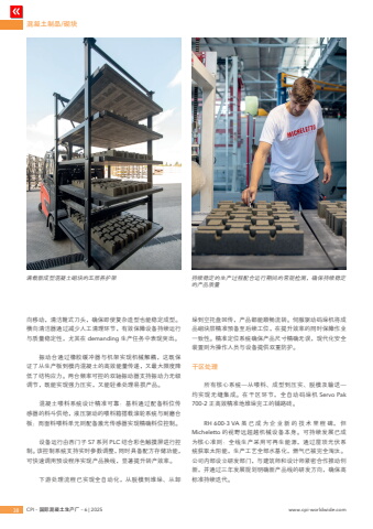 %u6df7%u51dd%u571f%u5236%u54c1/%u780c%u575738 CPI %u2013 %u56fd%u9645%u6df7%u51dd%u571f%u751f%u4ea7%u5382 %u2013 6 | 2025 www.cpi-worldwide.com%u6ee1%u8f7d%u65b0%u6210%u578b%u6df7%u51dd%u571f%u780c%u5757%u7684%u4e94%u5c42%u517b%u62a4%u67b6 %u6301%u7eed%u7a33%u5b9a%u7684%u751f%u4ea7%u8fc7%u7a0b%u914d%u5408%u8fd0%u884c%u671f%u95f4%u7684%u5e38%u89c4%u68c0%u6d4b%uff0c%u786e%u4fdd%u6301%u7eed%u7a33%u5b9a%u7684%u4ea7%u54c1%u8d28%u91cf%u5411%u79fb%u52a8%uff0c%u6e05%u6d01%u9774%u5f0f%u5200%u5934%uff0c%u786e%u4fdd%u5373%u4f7f%u590d%u6742%u9020%u578b%u4e5f%u80fd%u7a33%u5b9a%u6210%u578b%u3002%u6a2a%u5411%u6e05%u6d01%u5668%u901a%u8fc7%u51cf%u5c11%u4eba%u5de5%u6e05%u7406%u73af%u8282%uff0c%u6709%u6548%u4fdd%u969c%u8bbe%u5907%u6301%u7eed%u8fd0%u884c%u4e0e%u8d28%u91cf%u7a33%u5b9a%u6027%uff0c%u5c24%u5176%u5728 demanding %u751f%u4ea7%u4efb%u52a1%u4e2d%u8868%u73b0%u7a81%u51fa%u3002%u632f%u52a8%u53f0%u901a%u8fc7%u6a61%u80f6%u7f13%u51b2%u5668%u4e0e%u673a%u67b6%u5b9e%u73b0%u673a%u68b0%u89e3%u8026%uff0c%u8fd9%u65e2%u4fdd%u8bc1%u4e86%u4ece%u751f%u4ea7%u677f%u5230%u6a21%u5185%u6df7%u51dd%u571f%u7684%u9ad8%u6548%u80fd%u91cf%u4f20%u9012%uff0c%u53c8%u6700%u5927%u9650%u5ea6%u964d%u4f4e%u4e86%u7ed3%u6784%u5e94%u529b%u3002%u4e24%u53f0%u9891%u7387%u53ef%u63a7%u7684%u53cc%u8f74%u632f%u52a8%u5668%u652f%u6301%u632f%u52a8%u529b%u65e0%u7ea7%u8c03%u8282%uff0c%u65e2%u80fd%u5b9e%u73b0%u5f3a%u529b%u538b%u5b9e%uff0c%u53c8%u80fd%u8f7b%u67d4%u5904%u7406%u6613%u635f%u4ea7%u54c1%u3002%u6df7%u51dd%u571f%u5582%u6599%u7cfb%u7edf%u8bbe%u8ba1%u7cbe%u51c6%u53ef%u9760%uff1a%u57fa%u6599%u901a%u8fc7%u914d%u5907%u6599%u4f4d%u4f20%u611f%u5668%u7684%u6599%u6597%u4f9b%u7ed9%uff0c%u6db2%u538b%u9a71%u52a8%u7684%u5582%u6599%u7bb1%u642d%u8f7d%u6eda%u8f6e%u7cfb%u7edf%u4e0e%u8010%u78e8%u53f0%u677f%uff1b%u800c%u9762%u6599%u5582%u6599%u5355%u5143%u5219%u914d%u5907%u6fc0%u5149%u4f20%u611f%u5668%u5b9e%u73b0%u7cbe%u786e%u6599%u4f4d%u63a7%u5236%u3002%u8bbe%u5907%u8fd0%u884c%u7531%u897f%u95e8%u5b50 S7 %u7cfb%u5217 PLC %u7ed3%u5408%u5f69%u8272%u89e6%u6478%u5c4f%u8fdb%u884c%u63a7%u5236%u3002%u8be5%u63a7%u5236%u7cfb%u7edf%u652f%u6301%u5b9e%u65f6%u53c2%u6570%u8c03%u6574%uff0c%u540c%u65f6%u5177%u5907%u914d%u65b9%u5b58%u50a8%u529f%u80fd%uff0c%u53ef%u5feb%u901f%u8c03%u7528%u9884%u8bbe%u7a0b%u5e8f%u5b9e%u73b0%u4ea7%u54c1%u6362%u7ebf%uff0c%u663e%u8457%u63d0%u5347%u8f6c%u4ea7%u6548%u7387%u3002%u4e0b%u6e38%u5904%u7406%u6d41%u7a0b%u5df2%u5b9e%u73b0%u5168%u81ea%u52a8%u5316%uff0c%u4ece%u8131%u6a21%u5230%u5806%u579b%u3001%u4ece%u5378%u579b%u5230%u7a7a%u6258%u76d8%u56de%u4f20%uff0c%u4ea7%u54c1%u90fd%u80fd%u987a%u7545%u6d41%u8f6c%u3002%u4f3a%u670d%u9a71%u52a8%u7801%u579b%u673a%u5c06%u6210%u54c1%u780c%u5757%u5c42%u7cbe%u51c6%u9884%u5907%u81f3%u540e%u7eed%u5de5%u4f4d%uff0c%u5728%u63d0%u5347%u6548%u7387%u7684%u540c%u65f6%u4fdd%u969c%u4f5c%u4e1a%u4e00%u81f4%u6027%u3002%u7cbe%u51c6%u5b9a%u4f4d%u7cfb%u7edf%u786e%u4fdd%u4ea7%u54c1%u5c3a%u5bf8%u7cbe%u786e%u65e0%u8bef%uff0c%u73b0%u4ee3%u5316%u5b89%u5168%u88c5%u7f6e%u5219%u4e3a%u64cd%u4f5c%u4eba%u5458%u4e0e%u8bbe%u5907%u63d0%u4f9b%u53cc%u91cd%u9632%u62a4%u3002%u5e72%u533a%u5904%u7406%u6240%u6709%u6838%u5fc3%u7cfb%u7edf%u2014%u4ece%u5582%u6599%u3001%u6210%u578b%u5230%u538b%u5b9e%u3001%u8131%u6a21%u53ca%u8f93%u9001%u2014%u5747%u5b9e%u73b0%u65e0%u7f1d%u96c6%u6210%u3002%u5728%u5e72%u533a%u73af%u8282%uff0c%u5168%u81ea%u52a8%u7801%u579b%u673a Servo Pak 700-2 %u6b63%u9ad8%u6548%u7cbe%u51c6%u5730%u5806%u579b%u5b8c%u5de5%u7684%u94fa%u8def%u7816%u3002RH 600-3 VA %u867d%u5df2%u6210%u4e3a%u4f01%u4e1a%u65b0%u7684%u6280%u672f %u91cc%u7a0b%u7891%uff0c %u4f46Micheletto %u7684%u89c6%u91ce%u8fdc%u8d85%u8d8a%u673a%u68b0%u8bbe%u5907%u672c%u8eab%u3002%u53ef%u6301%u7eed%u53d1%u5c55%u5df2%u6210%u4e3a%u6838%u5fc3%u51c6%u5219%uff1a%u5168%u7ebf%u751f%u4ea7%u91c7%u7528%u53ef%u518d%u751f%u80fd%u6e90%uff0c%u901a%u8fc7%u5c4b%u9876%u5149%u4f0f%u7cfb%u7edf%u83b7%u53d6%u592a%u9633%u80fd%uff0c%u751f%u4ea7%u5de5%u827a%u5168%u90e8%u6c34%u57fa%u5316%uff0c%u71c3%u6c14%u5df2%u88ab%u5b8c%u5168%u6dd8%u6c70%u3002%u516c%u53f8%u5185%u90e8%u8bbe%u7acb%u7814%u53d1%u90e8%u95e8%uff0c%u4e0e%u5efa%u7b51%u5e08%u548c%u8bbe%u8ba1%u5e08%u7d27%u5bc6%u5408%u4f5c%u63a8%u52a8%u521b%u65b0%uff0c%u5e76%u901a%u8fc7%u4e09%u5e74%u53d1%u5c55%u89c4%u5212%u660e%u786e%u65b0%u4ea7%u54c1%u7ebf%u7684%u7814%u53d1%u65b9%u5411%uff0c%u786e%u4fdd%u9ad8%u6807%u51c6%u6301%u7eed%u8fed%u4ee3%u3002