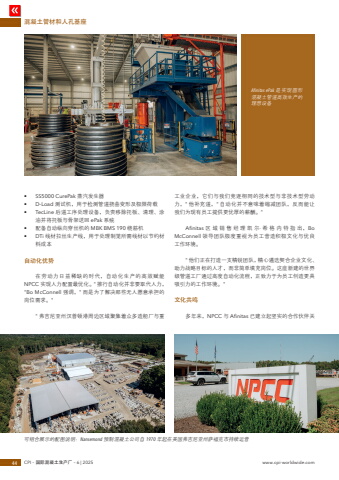 44 CPI %u2013 %u56fd%u9645%u6df7%u51dd%u571f%u751f%u4ea7%u5382 %u2013 6 | 2025 www.cpi-worldwide.com%u6df7%u51dd%u571f%u7ba1%u6750%u548c%u4eba%u5b54%u57fa%u5ea7Afinitas ePak %u662f%u5b9e%u73b0%u5706%u5f62%u6df7%u51dd%u571f%u7ba1%u9053%u9ad8%u6548%u751f%u4ea7%u7684%u7406%u60f3%u8bbe%u5907%u53ef%u7ec4%u5408%u5c55%u793a%u7684%u914d%u56fe%u8bf4%u660e%uff1aNansemond %u9884%u5236%u6df7%u51dd%u571f%u516c%u53f8%u81ea 1970 %u5e74%u8d77%u5728%u7f8e%u56fd%u5f17%u5409%u5c3c%u4e9a%u5dde%u8428%u798f%u514b%u5e02%u6301%u7eed%u8fd0%u8425%u2022 SS5000 CurePak %u84b8%u6c7d%u53d1%u751f%u5668%u2022 D-Load %u6d4b%u8bd5%u673a%uff0c%u7528%u4e8e%u68c0%u6d4b%u7ba1%u9053%u6320%u66f2%u53d8%u5f62%u53ca%u6781%u9650%u8377%u8f7d%u2022 TecLine %u540e%u9053%u5de5%u5e8f%u5904%u7406%u8bbe%u5907%uff0c%u8d1f%u8d23%u79fb%u9664%u6258%u677f%u3001%u6e05%u7406%u3001%u6d82%u6cb9%u5e76%u5c06%u6258%u677f%u4e0e%u9aa8%u67b6%u9001%u56de ePak %u7cfb%u7edf%u2022 %u914d%u5907%u81ea%u52a8%u7eb5%u5411%u7a7f%u4e1d%u673a%u7684 MBK BMS 190 %u7ed5%u7b4b%u673a%u2022 DTi %u7ebf%u6750%u62c9%u4e1d%u751f%u4ea7%u7ebf%uff0c%u7528%u4e8e%u5904%u7406%u5236%u7b3c%u6240%u9700%u7ebf%u6750%u4ee5%u8282%u7ea6%u6750%u6599%u6210%u672c%u81ea%u52a8%u5316%u4f18%u52bf%u5728%u52b3%u52a8%u529b%u65e5%u76ca%u7a00%u7f3a%u7684%u65f6%u4ee3%uff0c%u81ea%u52a8%u5316%u751f%u4ea7%u7684%u9ad8%u6548%u8d4b%u80fdNPCC %u5b9e%u73b0%u4eba%u529b%u914d%u7f6e%u6700%u4f18%u5316%u3002\\%u5c97%u4f4d%u9700%u6c42%u3002\\%u5de5%u4e1a%u4f01%u4e1a%uff0c%u5b83%u4eec%u4e0e%u6211%u4eec%u7ade%u9010%u76f8%u540c%u7684%u6280%u672f%u578b%u4e0e%u975e%u6280%u672f%u578b%u52b3%u52a8%u529b%uff0c\%u6211%u4eec%u4e3a%u73b0%u6709%u5458%u5de5%u63d0%u4f9b%u66f4%u4f18%u539a%u7684%u85aa%u916c%u3002\Afinitas %u533a %u57df%u9500%u552e%u7ecf%u7406%u51ef%u5c14%u00b7 %u5e0c%u683c%u5185 %u7279 %u6307 %u51fa%uff0cBo McConnell %u9886%u5bfc%u56e2%u961f%u6781%u5ea6%u91cd%u89c6%u4e3a%u5458%u5de5%u8425%u9020%u79ef%u6781%u6587%u5316%u4e0e%u4f18%u826f%u5de5%u4f5c%u73af%u5883%u3002\%u52a9%u529b%u6218%u7565%u76ee%u6807%u7684%u4eba%u624d%uff0c%u800c%u975e%u7b80%u5355%u586b%u5145%u5c97%u4f4d%u3002%u8fd9%u5ea7%u65b0%u5efa%u7684%u4e16%u754c%u7ea7%u7ba1%u9053%u5de5%u5382%u901a%u8fc7%u9ad8%u5ea6%u81ea%u52a8%u5316%u6d41%u7a0b%uff0c%u6b63%u81f4%u529b%u4e8e%u4e3a%u5458%u5de5%u521b%u9020%u66f4%u5177%u5438%u5f15%u529b%u7684%u5de5%u4f5c%u73af%u5883%u3002\%u6587%u5316%u5171%u9e23%u591a%u5e74%u6765%uff0cNPCC %u4e0e Afinitas %u5df2%u5efa%u7acb%u8d77%u575a%u5b9e%u7684%u5408%u4f5c%u4f19%u4f34%u5173