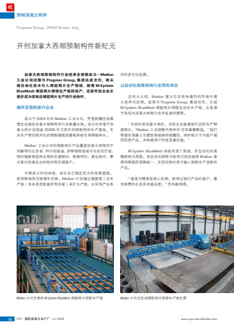%u9884%u5236%u6df7%u51dd%u571f%u6784%u4ef658 CPI %u2013 %u56fd%u9645%u6df7%u51dd%u571f%u751f%u4ea7%u5382 %u2013 6 | 2025 www.cpi-worldwide.comProgress Group, 39042 Brixen, Italy%u5f00%u521b%u52a0%u62ff%u5927%u897f%u90e8%u9884%u5236%u6784%u4ef6%u65b0%u7eaa%u5143Matbar %u516c%u53f8%u5168%u65b0%u7684 M-System BlueMesh %u94a2%u7b4b%u7f51%u7247%u710a%u63a5%u751f%u4ea7%u7ebf Matbar %u516c%u53f8%u5168%u81ea%u52a8%u94a2%u7b4b%u7f51%u7247%u710a%u63a5%u751f%u4ea7%u7ebf%u5168%u666f%u52a0%u62ff%u5927%u897f%u90e8%u9884%u5236%u6784%u4ef6%u884c%u4e1a%u8fce%u6765%u5168%u65b0%u63a8%u52a8%u529b%u2014Matbar %u5de5%u4e1a%u516c%u53f8%u8fd1%u671f%u4e0e Progress Group, %u96c6%u56e2%u8fbe%u6210%u5408%u4f5c%uff0c%u5c06%u5c16%u7aef%u81ea%u52a8%u5316%u6280%u672f%u5f15%u5165%u94a2%u7b4b%u7f51%u7247%u751f%u4ea7%u9886%u57df%u3002%u968f%u7740 M-System BlueMesh %u94a2%u7b4b%u7f51%u7247%u710a%u63a5%u751f%u4ea7%u7ebf%u7684%u6295%u4ea7%uff0c%u8fd9%u5bb6%u5e74%u8f7b%u4f01%u4e1a%u6b63%u9010%u6b65%u6210%u4e3a%u8be5%u5730%u533a%u94a2%u7b4b%u7f51%u7247%u751f%u4ea7%u7684%u884c%u4e1a%u6807%u6746%u3002%u80f8%u6000%u5b8f%u56fe%u7684%u65b0%u5174%u4f01%u4e1a%u6210%u7acb%u4e8e 2024 %u5e74%u7684 Matbar %u5de5%u4e1a%u516c%u53f8%uff0c%u51ed%u501f%u524d%u77bb%u6027%u53d1%u5c55%u7406%u5ff5%u8fc5%u901f%u5728%u52a0%u62ff%u5927%u9884%u5236%u6784%u4ef6%u884c%u4e1a%u5d2d%u9732%u5934%u89d2%u3002%u8be5%u516c%u53f8%u5750%u843d%u4e8e%u52a0%u62ff%u5927%u963f%u5c14%u4f2f%u5854%u7701 20000 %u5e73%u65b9%u82f1%u5c3a%u7684%u9884%u5236%u6784%u4ef6%u751f%u4ea7%u57fa%u5730%uff0c%u4e13%u4e1a%u751f%u4ea7%u5e26%u5b9a%u5236%u5f00%u5b54%u7684%u9884%u5236%u5899%u677f%u53ca%u697c%u677f%u7cfb%u7edf%u4e13%u7528%u94a2%u7b4b%u7f51%u7247%u3002Matbar %u5de5%u4e1a%u516c%u53f8%u7684%u94a2%u7b4b%u7f51%u7247%u4ea7%u54c1%u8986%u76d6%u52a0%u62ff%u5927%u897f%u90e8%u7684%u4e0d%u5217%u98a0%u54e5%u4f26%u6bd4%u4e9a%u7701%u3001%u963f%u5c14%u4f2f%u5854%u7701%u3001%u8428%u65af%u5580%u5f7b%u6e29%u7701%u4e0e%u9a6c%u5c3c%u6258%u5df4%u7701%uff0c%u540c%u65f6%u8f90%u5c04%u7f8e%u56fd%u897f%u5317%u90e8%u7684%u534e%u76db%u987f%u5dde%u3001%u4fc4%u52d2%u5188%u5dde%u3001%u7231%u8fbe%u8377%u5dde%u3001%u8499%u5927%u62ff%u5dde%u53ca%u5357%u5317%u8fbe%u79d1%u4ed6%u5dde%u7b49%u533a%u57df%u5ba2%u6237%u3002%u5c3d%u7ba1%u6210%u7acb%u65f6%u95f4%u5c1a%u77ed%uff0c%u8be5%u4f01%u4e1a%u5df2%u5236%u5b9a%u5b8f%u5927%u7684%u53d1%u5c55%u84dd%u56fe%u3002%u82e5%u6301%u7eed%u4fdd%u6301%u5f53%u524d%u589e%u957f%u6001%u52bf%uff0cMatbar %u8ba1%u5212%u901a%u8fc7%u589e%u7f6e%u7b2c%u4e8c%u53f0%u751f%u4ea7%u7ebf%uff08%u672a%u6765%u8003%u8651%u914d%u5907%u6298%u5f2f%u529f%u80fd%uff09%u6765%u6269%u5927%u4ea7%u80fd%uff0c%u4ee5%u5b9e%u73b0%u4ea7%u54c1%u7cfb%u5217%u7684%u591a%u5143%u5316%u62d3%u5c55%u3002%u4ee5%u81ea%u52a8%u5316%u6218%u7565%u4fdd%u6301%u884c%u4e1a%u9886%u5148%u5730%u4f4d%u81ea%u521b%u7acb%u4e4b%u521d%uff0cMatbar %u4fbf%u7acb%u5fd7%u5728%u7ade%u4e89%u6fc0%u70c8%u7684%u5e02%u573a%u4e2d%u5efa%u7acb%u5dee%u5f02%u5316%u4f18%u52bf%u3002%u9009%u62e9%u4e0e Progress Group, %u96c6%u56e2%u5408%u4f5c%uff0c%u5f15%u8fdbM-System BlueMesh %u94a2%u7b4b%u7f51%u7247%u710a%u63a5%u81ea%u52a8%u5316%u751f%u4ea7%u7ebf%uff0c%u6b63%u662f%u6e90%u4e8e%u5176%u6210%u4e3a%u52a0%u62ff%u5927%u897f%u90e8%u884c%u4e1a%u5f00%u62d3%u8005%u7684%u613f%u666f%u3002\%u7b4b%u7f51%u7247%uff0c\%u5e0c%u671b%u5728%u6df7%u51dd%u571f%u4e0e%u5efa%u7b51%u9886%u57df%u4fdd%u6301%u524d%u77bb%u6027%uff0c%u540c%u65f6%u81f4%u529b%u4e8e%u4e3a%u5ba2%u6237%u63d0%u4f9b%u4f18%u8d28%u4ea7%u54c1%uff0c%u4e3a%u7ec8%u7aef%u7528%u6237%u521b%u9020%u663e%u8457%u4ef7%u503c%u3002\M-System BlueMesh %u7cfb%u7edf%u5b9e%u73b0%u4e86%u9ad8%u901f%u3001%u5168%u81ea%u52a8%u5316%u7684%u9ad8%u7cbe%u5ea6%u7f51%u7247%u710a%u63a5%u3002%u5176%u81ea%u52a8%u5316%u710a%u67aa%u4e0e%u6807%u7b7e%u8bc6%u522b%u529f%u80fd%u4f7f Matbar %u80fd%u591f%u6301%u7eed%u63d0%u4f9b%u89c4%u683c%u7edf%u4e00%u3001%u652f%u6301%u5b9a%u5236%u4e14%u6613%u4e8e%u878d%u5165%u9884%u5236%u751f%u4ea7%u6d41%u7a0b%u7684%u4ea7%u54c1%u3002\%u5148%u79f0%u8d5e%u7684%u6b63%u662f%u5176%u5353%u8d8a%u54c1%u8d28%uff0c\