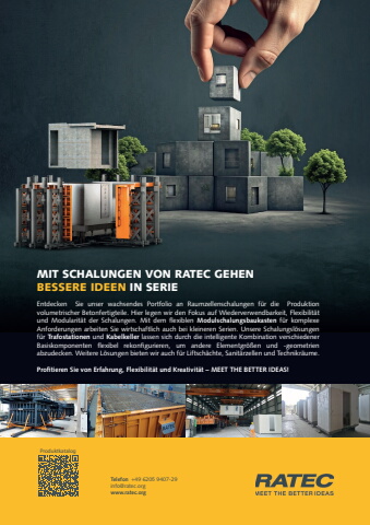 Telefon +49 6205 9407-29info@ratec.orgwww.ratec.orgProduktkatalogEntdecken Sie unser wachsendes Portfolio an Raumzellenschalungen f%u00fcr die Produktion volumetrischer Betonfertigteile. Hier legen wir den Fokus auf Wiederverwendbarkeit, Flexibilit%u00e4t und Modularit%u00e4t der Schalungen. Mit dem flexiblen Modulschalungsbaukasten f%u00fcr komplexe Anforderungen arbeiten Sie wirtschaftlich auch bei kleineren Serien. Unsere Schalungsl%u00f6sungen f%u00fcr Trafostationen und Kabelkeller lassen sich durch die intelligente Kombination verschiedener Basiskomponenten fl exibel rekonfi gurieren, um andere Elementgr%u00f6%u00dfen und -geometrien abzudecken. Weitere L%u00f6sungen bieten wir auch f%u00fcr Liftsch%u00e4chte, Sanit%u00e4rzellen und Technikr%u00e4ume.Profitieren Sie von Erfahrung, Flexibilit%u00e4t und Kreativit%u00e4t %u2013 MEET THE BETTER IDEAS! MIT SCHALUNGEN VON RATEC GEHEN BESSERE IDEEN IN SERIE