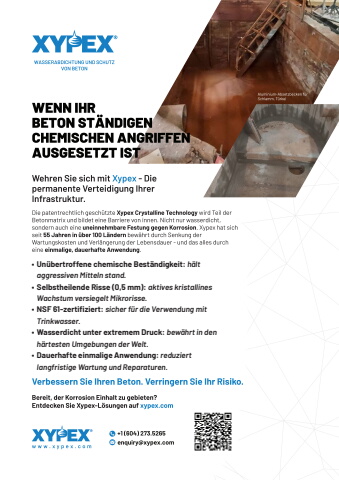 %u2022 Un%u00fcbertroffene chemische Best%u00e4ndigkeit: h%u00e4lt aggressiven Mitteln stand.%u2022 Selbstheilende Risse (0,5 mm): aktives kristallines Wachstum versiegelt Mikrorisse.%u2022 NSF 61-zertifiziert: sicher f%u00fcr die Verwendung mit Trinkwasser.%u2022 Wasserdicht unter extremem Druck: bew%u00e4hrt in den h%u00e4rtesten Umgebungen der Welt.%u2022 Dauerhafte einmalige Anwendung: reduziert langfristige Wartung und Reparaturen.
