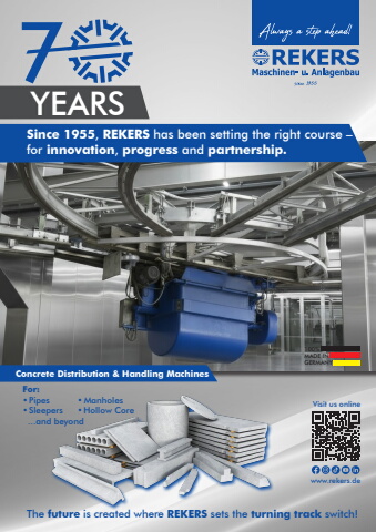 www.rekers.deYEARSSince 1955, REKERS has been setting the right course %u2013 for innovation, progress and partnership.The future is created where REKERS sets the turning track switch! Concrete Distribution & Handling MachinesFor:%u2022 Pipes %u2022 Manholes%u2022 Sleepers %u2022 Hollow Core ...and beyond100%MADE INGERMANYVisit us online