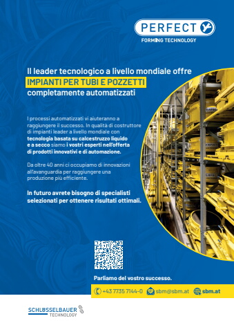 +43 7735 7144-0 sbm@sbm.at sbm.atI processi automatizzati vi aiuteranno a raggiungere il successo. In qualit%u00e0 di costruttore di impianti leader a livello mondiale con tecnologia basata su calcestruzzo liquido e a secco siamo i vostri esperti nell%u2018offerta di prodotti innovativi e di automazione. Da oltre 40 anni ci occupiamo di innovazioni all%u2018avanguardia per raggiungere una produzione pi%u00f9 efficiente. In futuro avrete bisogno di specialisti selezionati per ottenere risultati ottimali.Parliamo del vostro successo. Il leader tecnologico a livello mondiale offre IMPIANTI PER TUBI E POZZETTI completamente automatizzati