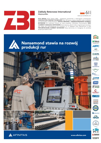 Nansemond stawia na rozw%u00f3j produkcji rurwww.afinitas.comICCX SPECIAL ICCX T%u00fcrkiye 2026 %u2013 wydarzenie premierowe z inspiruj%u0105cymi prezentacjami CONSTRUCTION PRINTING TECHNOLOGY Druk 3D betonu otwiera zupe%u0142nie nowe mo%u017cliwo%u015bci w budownictwie prefabrykowanym KOSTKA BRUKOWA I DROBNOWYMIAROWE ELEMENTY BETONOWE Od rodzinnych korzeni po wizje przysz%u0142o%u015bci: Micheletto Pavimentazioni RURY I ELEMENTY KANALIZACJI BETONOWEJ Automatyzacja, jako%u015b%u0107 i kultura organizacyjna impulsem dla nowej linii technologicznej do produkcji rur w zak%u0142adzie firmy Nansemond w USA PREFABRYKOWANE ELEMENTY BETONOWE Nowy samono%u015bny tor naci%u0105gowy do produkcji spr%u0119%u017conych belek w Danii6 Zak%u0142ady Betonowe InternationalEdycja polskawww.cpi-worldwide.com2025