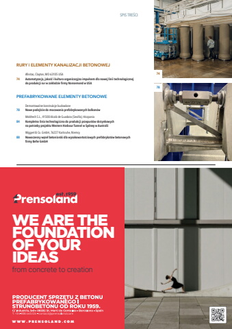 SPIS TRE%u015aCIRURY I ELEMENTY KANALIZACJI BETONOWEJAfinitas, Clayton, MO 63105 USA74%u0009 Automatyzacja, jako%u015b%u0107 i kultura organizacyjna impulsem dla nowej linii technologicznejdo produkcji rur w zak%u0142adzie firmy Nansemond w USAPREFABRYKOWANE ELEMENTY BETONOWEDemontowalne konstrukcje budowlane78%u0009 Nowe podej%u015bcie do mocowania prefabrykowanych balkon%u00f3wMoldtech S.L., 41500 Alcal%u00e1 de Guadaira (Sevilla), Hiszpania84%u0009 Kompletna linia technologiczna do produkcji przepust%u00f3w skrzynkowychna potrzeby projektu Western HarbourTunnel w Sydney w AustraliiWiggert & Co. GmbH, 76227 Karlsruhe, Niemcy88%u0009 Nowoczesny w%u0119ze%u0142 betoniarski dla wysokowarto%u015bciowych prefabrykat%u00f3w betonowychfirmy Befer GmbHfifffflffifl%u001affl%u0019%u001aff%u0018%u0017%u0018fl%u0017fflfl%u001aff%u0018%u0016%u0017%u0015ffl%u0019WE ARE THEFOUNDATIONOF YOURIDEASWWW PRENSOLAND COM7478
