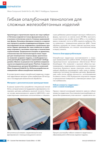 %u0421%u0411%u041e%u0420%u041d%u042b%u0419 %u0411%u0415%u0422%u041e%u041d100 CPI %u2013 Concrete Plant International | Eurasia Edition %u2013 6 | 2025 www.cpi-worldwide.com%u0410%u0440%u0445%u0438%u0442%u0435%u043a%u0442%u0443%u0440%u0430 %u0438 %u0441%u0442%u0440%u043e%u0438%u0442%u0435%u043b%u044c%u043d%u0430%u044f %u043e%u0442%u0440%u0430%u0441%u043b%u044c %u0432%u0441%u0435 %u0447%u0430%u0449%u0435 %u0442%u0440%u0435%u0431%u0443%u044e%u0442 %u043e%u0442 %u0431%u0435%u0442%u043e%u043d%u043d%u044b%u0445 %u0438%u0437%u0434%u0435%u043b%u0438%u0439 %u043d%u0435 %u0442%u043e%u043b%u044c%u043a%u043e %u0444%u0443%u043d%u043a%u0446%u0438%u043e%u043d%u0430%u043b%u044c%u043d%u043e%u0441%u0442%u0438, %u043d%u043e %u0438 %u0432%u044b%u0441%u043e%u043a%u0438%u0445 %u044d%u0441%u0442%u0435%u0442%u0438%u0447%u0435%u0441%u043a%u0438%u0445 %u043a%u0430%u0447%u0435%u0441%u0442%u0432. %u0421%u043b%u043e%u0436%u043d%u044b%u0435 %u043a%u0440%u0438%u0432%u043e%u043b%u0438%u043d%u0435%u0439%u043d%u044b%u0435 %u0444%u043e%u0440%u043c%u044b, %u0431%u0435%u0441%u0448%u043e%u0432%u043d%u044b%u0435 %u0444%u0430%u0441%u0430%u0434%u043d%u044b%u0435 %u044d%u043b%u0435%u043c%u0435%u043d%u0442%u044b %u0438 %u0438%u0437%u0434%u0435%u043b%u0438%u044f %u0434%u043b%u044f %u0433%u043e%u0440%u043e%u0434%u0441%u043a%u043e%u0433%u043e %u0434%u0438%u0437%u0430%u0439%u043d%u0430 %u0438%u043d%u0434%u0438%u0432%u0438%u0434%u0443%u0430%u043b%u044c%u043d%u043e%u0439 %u0444%u043e%u0440%u043c%u044b %u0441%u0442%u0430%u043b%u0438 %u043d%u0435%u043e%u0442%u044a%u0435%u043c%u043b%u0435%u043c%u043e%u0439 %u0447%u0430%u0441%u0442%u044c%u044e %u0441%u043e%u0432%u0440%u0435%u043c%u0435%u043d%u043d%u044b%u0445 %u0441%u0442%u0440%u043e%u0438%u0442%u0435%u043b%u044c%u043d%u044b%u0445 %u043f%u0440%u043e%u0435%u043a%u0442%u043e%u0432. %u041e%u0434%u043d%u0430%u043a%u043e %u043f%u0440%u043e%u0438%u0437%u0432%u043e%u0434%u0441%u0442%u0432%u043e %u0442%u0430%u043a%u0438%u0445 %u044d%u043b%u0435%u043c%u0435%u043d%u0442%u043e%u0432 %u043f%u043e-%u043f%u0440%u0435%u0436%u043d%u0435%u043c%u0443 %u0441%u043e%u043f%u0440%u044f%u0436%u0435%u043d%u043e %u0441 %u0432%u044b%u0441%u043e%u043a%u0438%u043c%u0438 %u0437%u0430%u0442%u0440%u0430%u0442%u0430%u043c%u0438 %u0438 %u0442%u0435%u0445%u043d%u0438%u0447%u0435%u0441%u043a%u0438%u043c%u0438 %u043e%u0433%u0440%u0430%u043d%u0438%u0447%u0435%u043d%u0438%u044f%u043c%u0438. %u0422%u0440%u0430%u0434%u0438%u0446%u0438%u043e%u043d%u043d%u0430%u044f %u043e%u043f%u0430%u043b%u0443%u0431%u043a%u0430 %u0438%u0437 %u0434%u0440%u0435%u0432%u0435%u0441%u0438%u043d%u044b, %u0441%u0442%u0435%u043a%u043b%u043e%u043f%u043b%u0430%u0441%u0442%u0438%u043a%u0430 %u0438%u043b%u0438 %u043f%u0435%u043d%u043e%u043f%u043e%u043b%u0438%u0441%u0442%u0438%u0440%u043e%u043b%u0430 %u043f%u043b%u043e%u0445%u043e %u043f%u043e%u0434%u0445%u043e%u0434%u0438%u0442 %u0434%u043b%u044f %u0433%u0435%u043e%u043c%u0435%u0442%u0440%u0438%u0447%u0435%u0441%u043a%u0438 %u0441%u043b%u043e%u0436%u043d%u044b%u0445 %u0444%u043e%u0440%u043c, %u043f%u0440%u0430%u043a%u0442%u0438%u0447%u0435%u0441%u043a%u0438 %u043d%u0435 %u043f%u043e%u0437%u0432%u043e%u043b%u044f%u0435%u0442 %u0441%u043e%u0437%u0434%u0430%u0432%u0430%u0442%u044c %u043f%u043e%u0434%u0440%u0435%u0437%u044b, %u0430 %u043d%u0435%u043e%u0431%u0445%u043e%u0434%u0438%u043c%u043e%u0441%u0442%u044c %u0432 %u0443%u0433%u043b%u0430%u0445 %u0440%u0430%u0441%u043f%u0430%u043b%u0443%u0431%u043a%u0438 %u0441%u0443%u0449%u0435%u0441%u0442%u0432%u0435%u043d%u043d%u043e %u043e%u0433%u0440%u0430%u043d%u0438%u0447%u0438%u0432%u0430%u0435%u0442 %u0441%u0432%u043e%u0431%u043e%u0434%u0443 %u0434%u0438%u0437%u0430%u0439%u043d%u0430. %u0418%u043c%u0435%u043d%u043d%u043e %u043d%u0430 %u0440%u0435%u0448%u0435%u043d%u0438%u0435 %u044d%u0442%u0438%u0445 %u043f%u0440%u043e%u0431%u043b%u0435%u043c %u043d%u0430%u043f%u0440%u0430%u0432%u043b%u0435%u043d %u043d%u0430%u0443%u0447%u043d%u043e-%u0438%u0441%u0441%u043b%u0435%u0434%u043e%u0432%u0430%u0442%u0435%u043b%u044c%u0441%u043a%u0438%u0439 %u043f%u0440%u043e%u0435%u043a%u0442 FlexCore. %u0421%u043e%u0432%u043c%u0435%u0441%u0442%u043d%u043e %u0441 %u0418%u043d%u043d%u043e%u0432%u0430%u0446%u0438%u043e%u043d%u043d%u044b%u043c %u0446%u0435%u043d%u0442%u0440%u043e%u043c %u0428%u0442%u0430%u0439%u043d%u0431%u0430%u0439%u0441%u0430 %u0438 %u043a%u043e%u043c%u043f%u0430%u043d%u0438%u0435%u0439 Wasa Compound GmbH & Co. KG %u0431%u044b%u043b%u0430 %u0440%u0430%u0437%u0440%u0430%u0431%u043e%u0442%u0430%u043d%u0430 %u0438%u043d%u043d%u043e%u0432%u0430%u0446%u0438%u043e%u043d%u043d%u0430%u044f %u0433%u0438%u0431%u043a%u0430%u044f %u043e%u043f%u0430%u043b%u0443%u0431%u043e%u0447%u043d%u0430%u044f %u0442%u0435%u0445%u043d%u043e%u043b%u043e%u0433%u0438%u044f.%u0412 %u043e%u0441%u043d%u043e%u0432%u0435 %u043f%u0440%u043e%u0435%u043a%u0442%u0430 %u043b%u0435%u0436%u0438%u0442 %u043e%u043f%u0430%u043b%u0443%u0431%u043e%u0447%u043d%u044b%u0439 %u0441%u0435%u0440%u0434%u0435%u0447%u043d%u0438%u043a, %u0441%u043e%u0437%u0434%u0430%u043d%u043d%u044b%u0439 %u0430%u0434%u0434%u0438%u0442%u0438%u0432%u043d%u044b%u043c %u043c%u0435%u0442%u043e%u0434%u043e%u043c %u043f%u0443%u0442%u0435%u043c %u043a%u043e%u043c%u0431%u0438%u043d%u0430%u0446%u0438%u0438 3D-%u044d%u043a%u0441%u0442%u0440%u0443%u0437%u0438%u0438 %u0438 %u043f%u043e%u0441%u043b%u0435%u0434%u0443%u044e%u0449%u0435%u0439 %u043c%u0435%u0445%u0430%u043d%u0438%u0447%u0435%u0441%u043a%u043e%u0439 %u043e%u0431%u0440%u0430%u0431%u043e%u0442%u043a%u0438.%u041c%u0430%u0442%u0435%u0440%u0438%u0430%u043b %u0441 %u0434%u043e%u043f%u043e%u043b%u043d%u0438%u0442%u0435%u043b%u044c%u043d%u044b%u043c%u0438 %u043f%u0440%u0435%u0438%u043c%u0443%u0449%u0435%u0441%u0442%u0432%u0430%u043c%u0438%u0412 %u0440%u0430%u043c%u043a%u0430%u0445 %u043f%u0440%u043e%u0435%u043a%u0442%u0430 %u0431%u044b%u043b %u0440%u0430%u0437%u0440%u0430%u0431%u043e%u0442%u0430%u043d %u0441%u043f%u0435%u0446%u0438%u0430%u043b%u044c%u043d%u044b%u0439 %u043b%u0435%u0433%u043a%u0438%u0439 