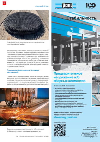 %u0421%u0411%u041e%u0420%u041d%u042b%u0419 %u0411%u0415%u0422%u041e%u041dCPI %u2013 Concrete Plant International | Eurasia Edition %u2013 6 | 2025%u0432%u044b%u0441%u043e%u043a%u043e%u0441%u043a%u043e%u0440%u043e%u0441%u0442%u043d%u0443%u044e %u0441%u0432%u0430%u0440%u043a%u0443 %u0430%u0440%u043c%u043e%u0441%u0435%u0442%u043e%u043a %u0441 %u0438%u0441%u043a%u043b%u044e%u0447%u0438%u0442%u0435%u043b%u044c%u043d%u043e%u0439%u0442%u043e%u0447%u043d%u043e%u0441%u0442%u044c%u044e. %u0411%u043b%u0430%u0433%u043e%u0434%u0430%u0440%u044f %u0430%u0432%u0442%u043e%u043c%u0430%u0442%u0438%u0437%u0438%u0440%u043e%u0432%u0430%u043d%u043d%u044b%u043c %u0441%u0432%u0430%u0440%u043e%u0447%u043d%u044b%u043c%u0433%u043e%u043b%u043e%u0432%u043a%u0430%u043c %u0438 %u0444%u0443%u043d%u043a%u0446%u0438%u0438 %u043c%u0430%u0440%u043a%u0438%u0440%u043e%u0432%u043a%u0438 Matbar %u043f%u043e%u0441%u0442%u0430%u0432%u043b%u044f%u0435%u0442 %u0438%u0437%u0434%u0435%u043b%u0438%u044f, %u043a%u043e%u0442%u043e%u0440%u044b%u0435 %u043e%u0442%u043b%u0438%u0447%u0430%u044e%u0442%u0441%u044f %u0441%u0442%u0430%u0431%u0438%u043b%u044c%u043d%u043e%u0441%u0442%u044c%u044e, %u0432%u043e%u0437%u043c%u043e%u0436%u043d%u043e%u0441%u0442%u044c%u044e %u0438%u043d%u0434%u0438%u0432%u0438%u0434%u0443%u0430%u043b%u0438%u0437%u0430%u0446%u0438%u0438 %u0438 %u043b%u0435%u0433%u043a%u043e %u0438%u043d%u0442%u0435%u0433%u0440%u0438%u0440%u0443%u044e%u0442%u0441%u044f %u0432 %u043f%u0440%u043e%u0446%u0435%u0441%u0441%u044b%u043f%u0440%u043e%u0438%u0437%u0432%u043e%u0434%u0441%u0442%u0432%u0430 %u0441%u0431%u043e%u0440%u043d%u043e%u0433%u043e %u0436%u0435%u043b%u0435%u0437%u043e%u0431%u0435%u0442%u043e%u043d%u0430. %u00ab%u0413%u043b%u0430%u0432%u043d%u044b%u0435 %u043f%u0440%u0435%u0438%u043c%u0443%u0449%u0435%u0441%u0442%u0432%u0430 %u2212 %u044d%u0442%u043e %u0441%u043a%u043e%u0440%u043e%u0441%u0442%u044c %u0438 %u0442%u043e%u0447%u043d%u043e%u0441%u0442%u044c. %u041a%u0430%u0447%u0435%u0441%u0442%u0432%u043e %u043f%u0440%u043e%u0434%u0443%u043a%u0446%u0438%u0438 %u2014 %u044d%u0442%u043e %u0442%u043e, %u0447%u0442%u043e %u0432 %u043f%u0435%u0440%u0432%u0443%u044e %u043e%u0447%u0435%u0440%u0435%u0434%u044c %u043e%u0442%u043c%u0435%u0447%u0430%u044e%u0442 %u043d%u0430%u0448%u0438 %u043a%u043b%u0438%u0435%u043d%u0442%u044b%u00bb, %u2212 %u043f%u043e%u0434%u0447%u0435%u0440%u043a%u0438%u0432%u0430%u0435%u0442 %u0413%u0438%u0431%u0441%u043e%u043d.%u041f%u043e%u0432%u044b%u0448%u0435%u043d%u0438%u0435 %u044d%u0444%u0444%u0435%u043a%u0442%u0438%u0432%u043d%u043e%u0441%u0442%u0438 %u0431%u043b%u0430%u0433%u043e%u0434%u0430%u0440%u044f %u0441%u0438%u0441%u0442%u0435%u043c%u0435 profit%u041f%u043e%u043c%u0438%u043c%u043e %u0441%u0435%u0442%u043a%u043e%u0441%u0432%u0430%u0440%u043e%u0447%u043d%u043e%u0439 %u043b%u0438%u043d%u0438%u0438, Matbar %u0438%u0441%u043f%u043e%u043b%u044c%u0437%u0443%u0435%u0442 %u0441%u0438%u0441%u0442%u0435%u043c%u0443 MES profit. %u042d%u0442%u043e %u043f%u0440%u043e%u0433%u0440%u0430%u043c%u043c%u043d%u043e%u0435 %u043e%u0431%u0435%u0441%u043f%u0435%u0447%u0435%u043d%u0438%u0435 %u043e%u0442 Progress Group %u043f%u043e%u0437%u0432%u043e%u043b%u044f%u0435%u0442 %u043e%u043f%u0442%u0438%u043c%u0438%u0437%u0438%u0440%u043e%u0432%u0430%u0442%u044c %u0432%u0441%u0435 %u043f%u0440%u043e%u0446%u0435%u0441%u0441%u044b %u043f%u043b%u0430%u043d%u0438%u0440%u043e%u0432%u0430%u043d%u0438%u044f %u0438 %u043f%u0440%u043e%u0438%u0437%u0432%u043e%u0434%u0441%u0442%u0432%u0430 %u2013 %u043e%u0442 %u043f%u043e%u043b%u0443%u0447%u0435%u043d%u0438%u044f %u0437%u0430%u043a%u0430%u0437%u0430 %u0434%u043e %u0441%u043e%u0441%u0442%u0430%u0432%u043b%u0435%u043d%u0438%u044f %u0433%u0440%u0430%u0444%u0438%u043a%u043e%u0432 %u0438 %u0440%u0430%u0441%u043f%u0440%u0435%u0434%u0435%u043b%u0435%u043d%u0438%u044f %u0440%u0435%u0441%u0443%u0440%u0441%u043e%u0432. %u0411%u043b%u0430%u0433%u043e%u0434%u0430%u0440%u044f %u043c%u043e%u043d%u0438%u0442%u043e%u0440%u0438%u043d%u0433%u0443 %u0421%u043e%u0432%u0440%u0435%u043c%u0435%u043d%u043d%u0430%u044f %u0441%u0432%u0430%u0440%u043e%u0447%u043d%u0430%u044f %u0442%u0435%u0445%u043d%u043e%u043b%u043e%u0433%u0438%u044f %u043e%u0431%u0435%u0441%u043f%u0435%u0447%u0438%u0432%u0430%u0435%u0442 %u0441%u0442%u0430%u0431%u0438%u043b%u044c%u043d%u0443%u044e %u0442%u043e%u0447%u043d%u043e%u0441%u0442%u044c %u043f%u0440%u043e%u0438%u0437%u0432%u043e%u0434%u0441%u0442%u0432%u0430 %u0430%u0440%u043c%u043e%u0441%u0435%u0442%u043e%u043a%u0418%u043d%u0434%u0438%u0432%u0438%u0434%u0443%u0430%u043b%u044c%u043d%u044b%u0435 %u0430%u0440%u043c%u0430%u0442%u0443%u0440%u043d%u044b%u0435 %u044d%u043b%u0435%u043c%u0435%u043d%u0442%u044b %u0434%u043e%u043f%u043e%u043b%u043d%u044f%u044e%u0442 %u043b%u0438%u043d%u0435%u0439%u043a%u0443 %u0438%u0437%u0434%u0435%u043b%u0438%u0439 Matbarstressing.paul.euMax-Paul-Str. 188525 D%u00fcrmentingenGermany%u000b +49(0)7371/500-0%u0019 +49(0)7371/500-111 stressing@paul.euPaul at YouTubestressing-channel.paul.eu%u041a%u043e%u043c%u043f%u0435%u0442%u0435%u043d%u0442%u043d%u043e%u0441%u0442%u044c %u0432 %u0442%u0435%u0445%u043d%u043e%u043b%u043e%u0433%u0438%u0438 %u043f%u0440%u0435%u0434%u043d%u0430%u043f%u0440%u044f%u0436%u0435%u043d%u043d%u043e%u0433%u043e %u0431%u0435%u0442%u043e%u043d%u0430. %u041a%u043e%u043c%u043f%u0430%u043d%u0438%u044f PAUL %u043f%u043e%u0441%u0442%u0430%u0432%u043b%u044f%u0435%u0442%u2022 %u0423%u0441%u0442%u0430%u043d%u043e%u0432%u043a%u0438 %u043f%u0440%u0435%u0434%u0432%u0430%u0440%u0438%u0442%u0435%u043b%u044c%u043d%u043e%u0433%u043e %u043d%u0430%u043f%u0440%u044f%u0436%u0435%u043d%u0438%u044f, %u0432%u043a%u043b%u044e%u0447%u0430%u044f %u043f%u0440%u043e%u0435%u043a%u0442%u043d%u044b%u0435 %u0440%u0430%u0431%u043e%u0442%u044b%u2022 %u041d%u0430%u0442%u044f%u0436%u043d%u044b%u0435 %u0430%u043d%u043a%u0435%u0440%u043d%u044b%u0435 %u0443%u0441%u0442%u0440%u043e%u0439%u0441%u0442%u0432%u0430%u2022 %u041e%u0431%u043e%u0440%u0443%u0434%u043e%u0432%u0430%u043d%u0438%u0435 