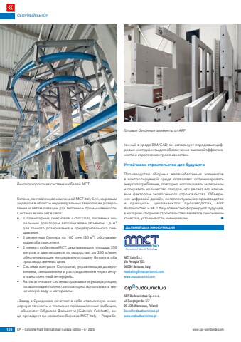 %u0421%u0411%u041e%u0420%u041d%u042b%u0419 %u0411%u0415%u0422%u041e%u041d124 CPI %u2013 Concrete Plant International | Eurasia Edition %u2013 6 | 2025 www.cpi-worldwide.com%u0431%u0435%u0442%u043e%u043d%u0430, %u043f%u043e%u0441%u0442%u0430%u0432%u043b%u0435%u043d%u043d%u0430%u044f %u043a%u043e%u043c%u043f%u0430%u043d%u0438%u0435%u0439 MCT Italy S.r.l., %u043c%u0438%u0440%u043e%u0432%u044b%u043c %u043b%u0438%u0434%u0435%u0440%u043e%u043c %u0432 %u043e%u0431%u043b%u0430%u0441%u0442%u0438 %u0438%u043d%u0434%u0438%u0432%u0438%u0434%u0443%u0430%u043b%u044c%u043d%u044b%u0445 %u0442%u0435%u0445%u043d%u043e%u043b%u043e%u0433%u0438%u0439 %u0434%u043e%u0437%u0438%u0440%u043e%u0432%u0430%u043d%u0438%u044f %u0438 %u0430%u0432%u0442%u043e%u043c%u0430%u0442%u0438%u0437%u0430%u0446%u0438%u0438 %u0434%u043b%u044f %u0431%u0435%u0442%u043e%u043d%u043d%u043e%u0439 %u043f%u0440%u043e%u043c%u044b%u0448%u043b%u0435%u043d%u043d%u043e%u0441%u0442%u0438. %u0421%u0438%u0441%u0442%u0435%u043c%u0430 %u0432%u043a%u043b%u044e%u0447%u0430%u0435%u0442 %u0432 %u0441%u0435%u0431%u044f:%u2022 2 %u043f%u043b%u0430%u043d%u0435%u0442%u0430%u0440%u043d%u044b%u0445 %u0441%u043c%u0435%u0441%u0438%u0442%u0435%u043b%u044f 2250/1500, %u043f%u0438%u0442%u0430%u0435%u043c%u044b%u0445 %u043c%u043e%u0431%u0438%u043b%u044c%u043d%u044b%u043c %u0434%u043e%u0437%u0430%u0442%u043e%u0440%u043e%u043c %u0437%u0430%u043f%u043e%u043b%u043d%u0438%u0442%u0435%u043b%u0435%u0439 %u043e%u0431%u044a%u0435%u043c%u043e%u043c 1,5 %u043c%u00b3 %u0434%u043b%u044f %u0442%u043e%u0447%u043d%u043e%u0433%u043e %u0434%u043e%u0437%u0438%u0440%u043e%u0432%u0430%u043d%u0438%u044f %u0438 %u043f%u0440%u0435%u0434%u0432%u0430%u0440%u0438%u0442%u0435%u043b%u044c%u043d%u043e%u0433%u043e %u0441%u043c%u0435%u0448%u0438%u0432%u0430%u043d%u0438%u044f.%u2022 3 %u0446%u0435%u043c%u0435%u043d%u0442%u043d%u044b%u0445 %u0431%u0443%u043d%u043a%u0435%u0440%u0430 %u043f%u043e 100 %u0442%u043e%u043d%u043d (80 %u043c%u00b3), %u043e%u0431%u0441%u043b%u0443%u0436%u0438%u0432%u0430%u044e%u0449%u0438%u0445 %u043e%u0431%u0430 %u0441%u043c%u0435%u0441%u0438%u0442%u0435%u043b%u044f.%u2022 2 %u043b%u0438%u043d%u0438%u0438 %u0441 %u043a%u044e%u0431%u0435%u043b%u044f%u043c%u0438 MCT, %u043e%u0445%u0432%u0430%u0442%u044b%u0432%u0430%u044e%u0449%u0438%u0435 %u043f%u043b%u043e%u0449%u0430%u0434%u044c 350 %u043c%u0435%u0442%u0440%u043e%u0432 %u0438 %u0434%u0432%u0438%u0433%u0430%u044e%u0449%u0438%u0435%u0441%u044f %u0441%u043e %u0441%u043a%u043e%u0440%u043e%u0441%u0442%u044c%u044e %u0434%u043e 240 %u043c/%u043c%u0438%u043d, %u043e%u0431%u0435%u0441%u043f%u0435%u0447%u0438%u0432%u0430%u044e%u0449%u0438%u0435 %u043d%u0435%u043f%u0440%u0435%u0440%u044b%u0432%u043d%u0443%u044e %u043f%u043e%u0434%u0430%u0447%u0443 %u0431%u0435%u0442%u043e%u043d%u0430 %u0432 %u043e%u0431%u0430 %u043f%u0440%u043e%u0438%u0437%u0432%u043e%u0434%u0441%u0442%u0432%u0435%u043d%u043d%u044b%u0445 %u0446%u0435%u0445%u0430.%u2022 %u0421%u0438%u0441%u0442%u0435%u043c%u0430 %u043a%u043e%u043d%u0442%u0440%u043e%u043b%u044f Compumat, %u0443%u043f%u0440%u0430%u0432%u043b%u044f%u044e%u0449%u0430%u044f %u0434%u043e%u0437%u0438%u0440%u043e%u0432%u0430%u043d%u0438%u0435%u043c, %u0441%u043c%u0435%u0448%u0438%u0432%u0430%u043d%u0438%u0435%u043c %u0438 %u0440%u0430%u0441%u043f%u0440%u0435%u0434%u0435%u043b%u0435%u043d%u0438%u0435%u043c %u0447%u0435%u0440%u0435%u0437 %u0438%u043d%u0442%u0443%u0438%u0442%u0438%u0432%u043d%u043e %u043f%u043e%u043d%u044f%u0442%u043d%u044b%u0439 %u0438%u043d%u0442%u0435%u0440%u0444%u0435%u0439%u0441.%u2022 %u0410%u0432%u0442%u043e%u043c%u0430%u0442%u0438%u0447%u0435%u0441%u043a%u0438%u0435 %u0441%u0438%u0441%u0442%u0435%u043c%u044b %u043f%u0440%u043e%u043c%u044b%u0432%u043a%u0438 %u0438 %u0440%u0435%u0446%u0438%u0440%u043a%u0443%u043b%u044f%u0446%u0438%u0438, %u043f%u043e%u0437%u0432%u043e%u043b%u044f%u044e%u0449%u0438%u0435 %u043f%u043e%u043b%u043d%u043e%u0441%u0442%u044c%u044e %u043f%u043e%u0432%u0442%u043e%u0440%u043d%u043e %u0438%u0441%u043f%u043e%u043b%u044c%u0437%u043e%u0432%u0430%u0442%u044c %u0442%u0435%u0445%u043d%u0438%u0447%u0435%u0441%u043a%u0443%u044e %u0432%u043e%u0434%u0443 %u0438 %u043c%u0430%u0442%u0435%u0440%u0438%u0430%u043b%u044b.%u00ab%u0417%u0430%u0432%u043e%u0434 %u0432 %u0421%u0443%u0445%u0435%u0434%u043d%u044e%u0432%u0435 %u0441%u043e%u0447%u0435%u0442%u0430%u0435%u0442 %u0432 %u0441%u0435%u0431%u0435 %u0438%u0442%u0430%u043b%u044c%u044f%u043d%u0441%u043a%u0443%u044e %u0438%u043d%u0436%u0435%u043d%u0435%u0440%u043d%u0443%u044e %u0442%u043e%u0447%u043d%u043e%u0441%u0442%u044c %u0438 %u043f%u043e%u043b%u044c%u0441%u043a%u0438%u0435 %u043f%u0440%u043e%u043c%u044b%u0448%u043b%u0435%u043d%u043d%u044b%u0435 %u0430%u043c%u0431%u0438%u0446%u0438%u0438, %u2014 %u043e%u0431%u044a%u044f%u0441%u043d%u044f%u0435%u0442 %u0413%u0430%u0431%u0440%u0438%u044d%u043b%u0435 %u0424%u0430%u043b%u044c%u043a%u0435%u0442%u0442%u0438 (Gabriele Falchetti), %u0432%u0438%u0446%u0435-%u043f%u0440%u0435%u0437%u0438%u0434%u0435%u043d%u0442 %u043f%u043e %u0440%u0430%u0437%u0432%u0438%u0442%u0438%u044e %u0431%u0438%u0437%u043d%u0435%u0441%u0430 MCT Italy. %u2212 %u0420%u0430%u0437%u0440%u0430%u0431%u043e%u0442%u0430%u043d%u043d%u044b%u0439 %u0432 %u0441%u0440%u0435%u0434%u0435 BIM/CAD, %u043e%u043d %u0438%u0441%u043f%u043e%u043b%u044c%u0437%u0443%u0435%u0442 %u043f%u0435%u0440%u0435%u0434%u043e%u0432%u044b%u0435 %u0446%u0438%u0444%u0440%u043e%u0432%u044b%u0435 %u0438%u043d%u0441%u0442%u0440%u0443%u043c%u0435%u043d%u0442%u044b %u0434%u043b%u044f %u043e%u0431%u0435%u0441%u043f%u0435%u0447%u0435%u043d%u0438%u044f %u0432%u044b%u0441%u043e%u043a%u043e%u0439 %u044d%u0444%u0444%u0435%u043a%u0442%u0438%u0432%u043d%u043e%u0441%u0442%u0438 %u0438 %u0441%u0442%u0440%u043e%u0433%u043e%u0433%u043e %u043a%u043e%u043d%u0442%u0440%u043e%u043b%u044f %u043a%u0430%u0447%u0435%u0441%u0442%u0432%u0430%u00bb.%u0423%u0441%u0442%u043e%u0439%u0447%u0438%u0432%u043e%u0435 %u0441%u0442%u0440%u043e%u0438%u0442%u0435%u043b%u044c%u0441%u0442%u0432%u0