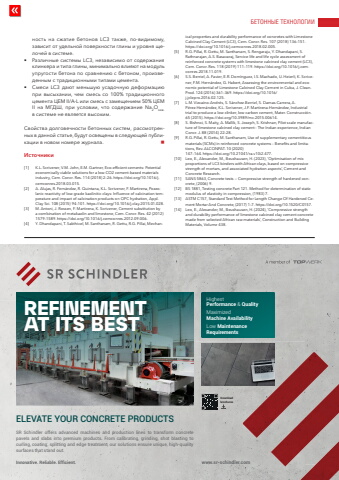 %u0411%u0415%u0422%u041e%u041d%u041d%u042b%u0415 %u0422%u0415%u0425%u041d%u041e%u041b%u041e%u0413%u0418%u0418www.cpi-worldwide.com CPI %u2013 Concrete Plant International | Eurasia Edition %u2013 6 | 2025 31%u043d%u043e%u0441%u0442%u044c %u043d%u0430 %u0441%u0436%u0430%u0442%u0438%u0435 %u0431%u0435%u0442%u043e%u043d%u043e%u0432 LC3 %u0442%u0430%u043a%u0436%u0435, %u043f%u043e-%u0432%u0438%u0434%u0438%u043c%u043e%u043c%u0443, %u0437%u0430%u0432%u0438%u0441%u0438%u0442 %u043e%u0442 %u0443%u0434%u0435%u043b%u044c%u043d%u043e%u0439 %u043f%u043e%u0432%u0435%u0440%u0445%u043d%u043e%u0441%u0442%u0438 %u0433%u043b%u0438%u043d%u044b %u0438 %u0443%u0440%u043e%u0432%u043d%u044f %u0449%u0435%u043b%u043e%u0447%u0435%u0439 %u0432 %u0441%u0438%u0441%u0442%u0435%u043c%u0435.%u2022 %u0420%u0430%u0437%u043b%u0438%u0447%u043d%u044b%u0435 %u0441%u0438%u0441%u0442%u0435%u043c%u044b LC3, %u043d%u0435%u0437%u0430%u0432%u0438%u0441%u0438%u043c%u043e %u043e%u0442 %u0441%u043e%u0434%u0435%u0440%u0436%u0430%u043d%u0438%u044f %u043a%u043b%u0438%u043d%u043a%u0435%u0440%u0430 %u0438 %u0442%u0438%u043f%u0430 %u0433%u043b%u0438%u043d%u044b, %u043c%u0438%u043d%u0438%u043c%u0430%u043b%u044c%u043d%u043e %u0432%u043b%u0438%u044f%u044e%u0442 %u043d%u0430 %u043c%u043e%u0434%u0443%u043b%u044c %u0443%u043f%u0440%u0443%u0433%u043e%u0441%u0442%u0438 %u0431%u0435%u0442%u043e%u043d%u0430 %u043f%u043e %u0441%u0440%u0430%u0432%u043d%u0435%u043d%u0438%u044e %u0441 %u0431%u0435%u0442%u043e%u043d%u043e%u043c, %u043f%u0440%u043e%u0438%u0437%u0432%u0435%u0434%u0435%u043d%u043d%u044b%u043c %u0441 %u0442%u0440%u0430%u0434%u0438%u0446%u0438%u043e%u043d%u043d%u044b%u043c%u0438 %u0442%u0438%u043f%u0430%u043c%u0438 %u0446%u0435%u043c%u0435%u043d%u0442%u0430.%u2022 %u0421%u043c%u0435%u0441%u0438 LC3 %u0434%u0430%u044e%u0442 %u043c%u0435%u043d%u044c%u0448%u0443%u044e %u0443%u0441%u0430%u0434%u043e%u0447%u043d%u0443%u044e %u0434%u0435%u0444%u043e%u0440%u043c%u0430%u0446%u0438%u044e %u043f%u0440%u0438 %u0432%u044b%u0441%u044b%u0445%u0430%u043d%u0438%u0438, %u0447%u0435%u043c %u0441%u043c%u0435%u0441%u044c %u0441%u043e 100% %u0442%u0440%u0430%u0434%u0438%u0446%u0438%u043e%u043d%u043d%u043e%u0433%u043e %u0446%u0435%u043c%u0435%u043d%u0442%u0430 %u0426%u0415%u041c II/A-L %u0438%u043b%u0438 %u0441%u043c%u0435%u0441%u044c %u0441 %u0437%u0430%u043c%u0435%u0449%u0435%u043d%u0438%u0435%u043c 50% %u0426%u0415%u041c II %u043d%u0430 %u041c%u0413%u0414%u0428, %u043f%u0440%u0438 %u0443%u0441%u043b%u043e%u0432%u0438%u0438, %u0447%u0442%u043e %u0441%u043e%u0434%u0435%u0440%u0436%u0430%u043d%u0438%u0435 Na2O%u044d%u043a%u0432.%u0432 %u0441%u0438%u0441%u0442%u0435%u043c%u0435 %u043d%u0435 %u044f%u0432%u043b%u044f%u0435%u0442%u0441%u044f %u0432%u044b%u0441%u043e%u043a%u0438%u043c.%u0421%u0432%u043e%u0439%u0441%u0442%u0432%u0430 %u0434%u043e%u043b%u0433%u043e%u0432%u0435%u0447%u043d%u043e%u0441%u0442%u0438 %u0431%u0435%u0442%u043e%u043d%u043d%u044b%u0445 %u0441%u0438%u0441%u0442%u0435%u043c, %u0440%u0430%u0441%u0441%u043c%u043e%u0442%u0440%u0435%u043d%u043d%u044b%u0445 %u0432 %u0434%u0430%u043d%u043d%u043e%u0439 %u0441%u0442%u0430%u0442%u044c%u0435, %u0431%u0443%u0434%u0443%u0442 %u043e%u0441%u0432%u0435%u0449%u0435%u043d%u044b %u0432 %u0441%u043b%u0435%u0434%u0443%u044e%u0449%u0435%u0439 %u043f%u0443%u0431%u043b%u0438%u043a%u0430%u0446%u0438%u0438 %u0432 %u043d%u043e%u0432%u043e%u043c %u043d%u043e%u043c%u0435%u0440%u0435 %u0436%u0443%u0440%u043d%u0430%u043b%u0430. %u0084%u0418%u0441%u0442%u043e%u0447%u043d%u0438%u043a%u0438[1] K.L. Scrivener, V.M. John, E.M. Gartner, Eco-efficient cements: Potential economically viable solutions for a low-CO2 cement-based materials industry, Cem. Concr. Res. 114 (2018) 2%u201326. https://doi.org/10.1016/j.cemconres.2018.03.015.[2] A. Alujas, R. Fern%u00e1ndez, R. Quintana, K.L. Scrivener, F. Martirena, Pozzolanic reactivity of low grade kaolinitic clays: Influence of calcination temperature and impact of calcination products on OPC hydration, Appl. Clay Sci. 108 (2015) 94%u2013101. https://doi.org/10.1016/j.clay.2015.01.028.[3] M. Antoni, J. Rossen, F. Martirena, K. Scrivener, Cement substitution by a combination of metakaolin and limestone, Cem. Concr. Res. 42 (2012) 1579%u20131589. https://doi.org/10.1016/j.cemconres.2012.09.006.[4] Y. Dhandapani, T. Sakthivel, M. Santhanam, R. Gettu, R.G. Pillai, Mechanical properties and durability performance of concretes with Limestone Calcined Clay Cement (LC3), Cem. Concr. Res. 107 (2018) 136%u2013151. https://doi.org/10.1016/j.cemconres.2018.02.005.[5] R.G. Pillai, R. Gettu, M. Santhanam, S. Rengaraju, Y. Dhandapani, S. Rathnarajan, A.S. Basavaraj, Service life and life cycle assessment of reinforced concrete systems with limestone calcined clay cement (LC3), Cem. Concr. Res. 118 (2019) 111%u2013119. https://doi.org/10.1016/j.cemconres.2018.11.019.[6] S.S. Berriel, A. Favier, E.R. Dom%u00ednguez, I.S. Machado, U. Heierli, K. Scrivener, F.M. Hern%u00e1ndez, G. Habert, Assessing the environmental and economic potential of Limestone Calcined Clay Cement in Cuba, J. Clean. Prod. 124 (2016) 361%u2013369. https://doi.org/10.1016/ j.jclepro.2016.02.125.[7] L.M. Vizca%u00edno-Andr%u00e9s, S. S%u00e1nchez-Berriel, S. Damas-Carrera, A. P%u00e9rez-Hern%u00e1ndez, K.L. Scrivener, J.F. Martirena-Hern%u00e1ndez, Industrial trial to produce a low clinker, low carbon cement, Mater. Construcci%u00f3n. 65 (2015). https://doi.org/10.3989/mc.2015.00614.[8] S. Bishnoi, S. Maity, A. Mallik, S. Joseph, S. Krishnan, Pilot scale manufacture of limestone calcined clay cement : The Indian experience, Indian Concr. J. 88 (2014) 22%u201328.[9] R.G. Pillai, R. Gettu, M. Santhanam, Use of supplementary cementitious materials (SCMs) in reinforced concrete systems %u2013 Benefits and limitations, Rev. ALCONPAT. 10 (2020) 147%u2013164. https://doi.org/10.21041/ra.v10i2.477.[10] Leo, E., Alexander, M., Beushausen, H. (2023), %u2018Optimisation of mix proportions of LC3 binders with African clays, based on compressive stren