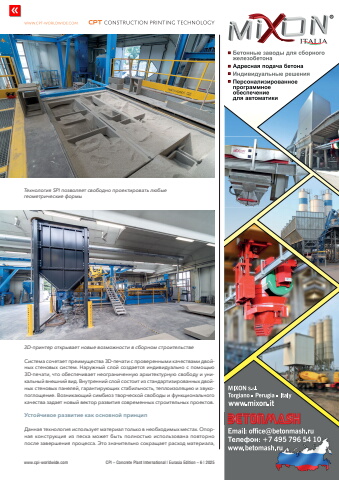 www.cpi-worldwide.com CPI %u2013 Concrete Plant International | Eurasia Edition %u2013 6 | 2025%u0421%u0438%u0441%u0442%u0435%u043c%u0430 %u0441%u043e%u0447%u0435%u0442%u0430%u0435%u0442 %u043f%u0440%u0435%u0438%u043c%u0443%u0449%u0435%u0441%u0442%u0432%u0430 3D-%u043f%u0435%u0447%u0430%u0442%u0438 %u0441 %u043f%u0440%u043e%u0432%u0435%u0440%u0435%u043d%u043d%u044b%u043c%u0438 %u043a%u0430%u0447%u0435%u0441%u0442%u0432%u0430%u043c%u0438 %u0434%u0432%u043e%u0439%u043d%u044b%u0445 %u0441%u0442%u0435%u043d%u043e%u0432%u044b%u0445 %u0441%u0438%u0441%u0442%u0435%u043c. %u041d%u0430%u0440%u0443%u0436%u043d%u044b%u0439 %u0441%u043b%u043e%u0439 %u0441%u043e%u0437%u0434%u0430%u0435%u0442%u0441%u044f %u0438%u043d%u0434%u0438%u0432%u0438%u0434%u0443%u0430%u043b%u044c%u043d%u043e %u0441 %u043f%u043e%u043c%u043e%u0449%u044c%u044e 3D-%u043f%u0435%u0447%u0430%u0442%u0438, %u0447%u0442%u043e %u043e%u0431%u0435%u0441%u043f%u0435%u0447%u0438%u0432%u0430%u0435%u0442 %u043d%u0435%u043e%u0433%u0440%u0430%u043d%u0438%u0447%u0435%u043d%u043d%u0443%u044e %u0430%u0440%u0445%u0438%u0442%u0435%u043a%u0442%u0443%u0440%u043d%u0443%u044e %u0441%u0432%u043e%u0431%u043e%u0434%u0443 %u0438 %u0443%u043d%u0438%u043a%u0430%u043b%u044c%u043d%u044b%u0439 %u0432%u043d%u0435%u0448%u043d%u0438%u0439 %u0432%u0438%u0434. %u0412%u043d%u0443%u0442%u0440%u0435%u043d%u043d%u0438%u0439 %u0441%u043b%u043e%u0439 %u0441%u043e%u0441%u0442%u043e%u0438%u0442 %u0438%u0437 %u0441%u0442%u0430%u043d%u0434%u0430%u0440%u0442%u0438%u0437%u0438%u0440%u043e%u0432%u0430%u043d%u043d%u044b%u0445 %u0434%u0432%u043e%u0439%u043d%u044b%u0445 %u0441%u0442%u0435%u043d%u043e%u0432%u044b%u0445 %u043f%u0430%u043d%u0435%u043b%u0435%u0439, %u0433%u0430%u0440%u0430%u043d%u0442%u0438%u0440%u0443%u044e%u0449%u0438%u0445 %u0441%u0442%u0430%u0431%u0438%u043b%u044c%u043d%u043e%u0441%u0442%u044c, %u0442%u0435%u043f%u043b%u043e%u0438%u0437%u043e%u043b%u044f%u0446%u0438%u044e %u0438 %u0437%u0432%u0443%u043a%u043e%u043f%u043e%u0433%u043b%u043e%u0449%u0435%u043d%u0438%u0435. %u0412%u043e%u0437%u043d%u0438%u043a%u0430%u044e%u0449%u0438%u0439 %u0441%u0438%u043c%u0431%u0438%u043e%u0437 %u0442%u0432%u043e%u0440%u0447%u0435%u0441%u043a%u043e%u0439 %u0441%u0432%u043e%u0431%u043e%u0434%u044b %u0438 %u0444%u0443%u043d%u043a%u0446%u0438%u043e%u043d%u0430%u043b%u044c%u043d%u043e%u0433%u043e %u043a%u0430%u0447%u0435%u0441%u0442%u0432%u0430 %u0437%u0430%u0434%u0430%u0435%u0442 %u043d%u043e%u0432%u044b%u0439 %u0432%u0435%u043a%u0442%u043e%u0440 %u0440%u0430%u0437%u0432%u0438%u0442%u0438%u044f %u0441%u043e%u0432%u0440%u0435%u043c%u0435%u043d%u043d%u044b%u0445 %u0441%u0442%u0440%u043e%u0438%u0442%u0435%u043b%u044c%u043d%u044b%u0445 %u043f%u0440%u043e%u0435%u043a%u0442%u043e%u0432.%u0423%u0441%u0442%u043e%u0439%u0447%u0438%u0432%u043e%u0435 %u0440%u0430%u0437%u0432%u0438%u0442%u0438%u0435 %u043a%u0430%u043a %u043e%u0441%u043d%u043e%u0432%u043d%u043e%u0439 %u043f%u0440%u0438%u043d%u0446%u0438%u043f%u0414%u0430%u043d%u043d%u0430%u044f %u0442%u0435%u0445%u043d%u043e%u043b%u043e%u0433%u0438%u044f %u0438%u0441%u043f%u043e%u043b%u044c%u0437%u0443%u0435%u0442 %u043c%u0430%u0442%u0435%u0440%u0438%u0430%u043b %u0442%u043e%u043b%u044c%u043a%u043e %u0432 %u043d%u0435%u043e%u0431%u0445%u043e%u0434%u0438%u043c%u044b%u0445 %u043c%u0435%u0441%u0442%u0430%u0445. %u041e%u043f%u043e%u0440%u043d%u0430%u044f %u043a%u043e%u043d%u0441%u0442%u0440%u0443%u043a%u0446%u0438%u044f %u0438%u0437 %u043f%u0435%u0441%u043a%u0430 %u043c%u043e%u0436%u0435%u0442 %u0431%u044b%u0442%u044c %u043f%u043e%u043b%u043d%u043e%u0441%u0442%u044c%u044e %u0438%u0441%u043f%u043e%u043b%u044c%u0437%u043e%u0432%u0430%u043d%u0430 %u043f%u043e%u0432%u0442%u043e%u0440%u043d%u043e %u043f%u043e%u0441%u043b%u0435 %u0437%u0430%u0432%u0435%u0440%u0448%u0435%u043d%u0438%u044f %u043f%u0440%u043e%u0446%u0435%u0441%u0441%u0430. %u042d%u0442%u043e %u0437%u043d%u0430%u0447%u0438%u0442%u0435%u043b%u044c%u043d%u043e %u0441%u043e%u043a%u0440%u0430%u0449%u0430%u0435%u0442 %u0440%u0430%u0441%u0445%u043e%u0434 %u043c%u0430%u0442%u0435%u0440%u0438%u0430%u043b%u0430, %u0422%u0435%u0445%u043d%u043e%u043b%u043e%u0433%u0438%u044f SPI %u043f%u043e%u0437%u0432%u043e%u043b%u044f%u0435%u0442 %u0441%u0432%u043e%u0431%u043e%u0434%u043d%u043e %u043f%u0440%u043e%u0435%u043a%u0442%u0438%u0440%u043e%u0432%u0430%u0442%u044c %u043b%u044e%u0431%u044b%u0435 %u0433%u0435%u043e%u043c%u0435%u0442%u0440%u0438%u0447%u0435%u0441%u043a%u0438%u0435 %u0444%u043e%u0440%u043c%u044b3D-%u043f%u0440%u0438%u043d%u0442%u0435%u0440 %u043e%u0442%u043a%u0440%u044b%u0432%u0430%u0435%u0442 %u043d%u043e%u0432%u044b%u0435 %u0432%u043e%u0437%u043c%u043e%u0436%u043d%u043e%u0441%u0442%u0438 %u0432 %u0441%u0431%u043e%u0440%u043d%u043e%u043c %u0441%u0442%u0440%u043e%u0438%u0442%u0435%u043b%u044c%u0441%u0442%u0432%u0435