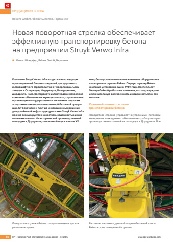 %u041f%u0420%u041e%u0414%u0423%u041a%u0426%u0418%u042f %u0418%u0417 %u0411%u0415%u0422%u041e%u041d%u041066 CPI %u2013 Concrete Plant International | Eurasia Edition %u2013 6 | 2025 www.cpi-worldwide.com%u041a%u043e%u043c%u043f%u0430%u043d%u0438%u044f Struyk Verwo Infra %u0432%u0445%u043e%u0434%u0438%u0442 %u0432 %u0447%u0438%u0441%u043b%u043e %u0432%u0435%u0434%u0443%u0449%u0438%u0445 %u043f%u0440%u043e%u0438%u0437%u0432%u043e%u0434%u0438%u0442%u0435%u043b%u0435%u0439 %u0431%u0435%u0442%u043e%u043d%u043d%u044b%u0445 %u0438%u0437%u0434%u0435%u043b%u0438%u0439 %u0434%u043b%u044f %u0434%u043e%u0440%u043e%u0436%u043d%u043e%u0433%u043e %u0438 %u043b%u0430%u043d%u0434%u0448%u0430%u0444%u0442%u043d%u043e%u0433%u043e %u0441%u0442%u0440%u043e%u0438%u0442%u0435%u043b%u044c%u0441%u0442%u0432%u0430 %u0432 %u041d%u0438%u0434%u0435%u0440%u043b%u0430%u043d%u0434%u0430%u0445. %u0421%u0435%u043c%u044c %u0437%u0430%u0432%u043e%u0434%u043e%u0432 %u0432 %u041e%u0441%u0442%u0435%u0440%u0445%u0430%u0443%u0442%u0435, %u041d%u0435%u0434%u0435%u0440%u0432%u0435%u0440%u0442%u0435, %u0412%u043b%u0430%u0430%u0440%u0434%u0438%u043d%u0433%u0435%u043d%u0435, %u0414%u043e%u0440%u0434%u0440%u0435%u0445%u0442%u0435, %u0422%u0438%u043b%u0435, %u0412%u0435%u0441%u0442%u0435%u0440%u0432%u043e%u0440%u0442%u0435 %u0438 %u0410%u043c%u0441%u0442%u0435%u0440%u0434%u0430%u043c%u0435 %u043f%u043e%u0437%u0432%u043e%u043b%u044f%u044e%u0442 %u043a%u043e%u043c%u043f%u0430%u043d%u0438%u0438 %u043e%u0431%u0435%u0441%u043f%u0435%u0447%u0438%u0432%u0430%u0442%u044c %u043c%u0443%u043d%u0438%u0446%u0438%u043f%u0430%u043b%u0438%u0442%u0435%u0442%u044b, %u0441%u0442%u0440%u043e%u0438%u0442%u0435%u043b%u044c%u043d%u044b%u0435 %u043e%u0440%u0433%u0430%u043d%u0438%u0437%u0430%u0446%u0438%u0438 %u0438 %u0433%u043e%u0441%u0443%u0434%u0430%u0440%u0441%u0442%u0432%u0435%u043d%u043d%u044b%u0445 %u0437%u0430%u043a%u0430%u0437%u0447%u0438%u043a%u043e%u0432 %u0448%u0438%u0440%u043e%u043a%u0438%u043c %u0430%u0441%u0441%u043e%u0440%u0442%u0438%u043c%u0435%u043d%u0442%u043e%u043c %u0432%u044b%u0441%u043e%u043a%u043e%u043a%u0430%u0447%u0435%u0441%u0442%u0432%u0435%u043d%u043d%u043e%u0439 %u0431%u0435%u0442%u043e%u043d%u043d%u043e%u0439 %u043f%u0440%u043e%u0434%u0443%u043a%u0446%u0438%u0438. %u041e%u0442 %u0431%u0440%u0443%u0441%u0447%u0430%u0442%u043a%u0438 %u0438 %u043f%u043b%u0438%u0442 %u0434%u043e %u0438%u043d%u043d%u043e%u0432%u0430%u0446%u0438%u043e%u043d%u043d%u044b%u0445 %u0440%u0435%u0448%u0435%u043d%u0438%u0439 %u0434%u043b%u044f %u0443%u0441%u0442%u043e%u0439%u0447%u0438%u0432%u043e%u0439 %u0438%u043d%u0444%u0440%u0430%u0441%u0442%u0440%u0443%u043a%u0442%u0443%u0440%u044b %u2212 %u0438%u043c%u044f Struyk Verwo Infra %u043f%u0440%u043e%u0447%u043d%u043e %u0430%u0441%u0441%u043e%u0446%u0438%u0438%u0440%u0443%u0435%u0442%u0441%u044f %u0441 %u043a%u0430%u0447%u0435%u0441%u0442%u0432%u043e%u043c, %u043d%u0430%u0434%u0435%u0436%u043d%u043e%u0441%u0442%u044c%u044e %u0438 %u043c%u043d%u043e%u0433%u043e%u043b%u0435%u0442%u043d%u0438%u043c %u043e%u043f%u044b%u0442%u043e%u043c. %u041d%u0430 %u0438%u0441%u0442%u043e%u0440%u0438%u0447%u0435%u0441%u043a%u043e%u0439 %u043f%u0440%u043e%u0438%u0437%u0432%u043e%u0434%u0441%u0442%u0432%u0435%u043d%u043d%u043e%u0439 %u043f%u043b%u043e%u0449%u0430%u0434%u043a%u0435 %u0432 %u0414%u043e%u0440%u0434%u0440%u0435%u0445%u0442%u0435, %u043e%u0441%u043d%u043e%u0432%u0430%u043d%u043d%u043e%u0439 %u0435%u0449%u0435 %u0432 %u043d%u0430%u0447%u0430%u043b%u0435 XX %u0432%u0435%u043a%u0430, %u0431%u044b%u043b%u043e %u0443%u0441%u0442%u0430%u043d%u043e%u0432%u043b%u0435%u043d%u043e %u043d%u043e%u0432%u043e%u0435 %u043a%u043b%u044e%u0447%u0435%u0432%u043e%u0435 %u043e%u0431%u043e%u0440%u0443%u0434%u043e%u0432%u0430%u043d%u0438%u0435 %u2212 %u043f%u043e%u0432%u043e%u0440%u043e%u0442%u043d%u0430%u044f %u0441%u0442%u0440%u0435%u043b%u043a%u0430 Rekers. %u041f%u0435%u0440%u0432%u0443%u044e %u0441%u0442%u0440%u0435%u043b%u043a%u0443 Rekers %u043a%u043e%u043c%u043f%u0430%u043d%u0438%u044f %u0443%u0441%u0442%u0430%u043d%u043e%u0432%u0438%u043b%u0430 %u0435%u0449%u0435 %u0432 1969 %u0433%u043e%u0434%u0443. %u041f%u043e%u0441%u043b%u0435 55 %u043b%u0435%u0442 %u0431%u0435%u0441%u043f%u0435%u0440%u0435%u0431%u043e%u0439%u043d%u043e%u0439 %u0440%u0430%u0431%u043e%u0442%u044b %u0435%u0435 %u0437%u0430%u043c%u0435%u043d%u0438%u043b%u0438, %u0447%u0442%u043e %u043f%u043e%u0434%u0442%u0432%u0435%u0440%u0436%u0434%u0430%u0435%u0442 %u0438%u0441%u043a%u043b%u044e%u0447%u0438%u0442%u0435%u043b%u044c%u043d%u0443%u044e %u0434%u043e%u043b%u0433%u043e%u0432%u0435%u0447%u043d%u043e%u0441%u0442%u044c %u0438 %u043d%u0430%u0434%u0435%u0436%u043d%u043e%u0441%u0442%u044c %u044d%u0442%u043e%u0439 %u0442%u0435%u0445%u043d%u043e%u043b%u043e%u0433%u0438%u0438. %u041a%u043b%u044e%u0447%u0435%u0432%u043e%u0439 %u044d%u043b%u0435%u043c%u0435%u043d%u0442 %u0441%u0438%u0441%u0442%u0435%u043c%u044b %u0442%u0440%u0430%u043d%u0441%u043f%u043e%u0440%u0442%u0438%u0440%u043e%u0432%u043a%u0438 %u0431%u0435%u0442%u043e%u043d%u0430%u041f%u043e%u0432%u043e%u0440%u043e%u0442%u043d%u0430%u044f %u0441%u0442%u0440%u0435%u043b%u043a%u0430 %u0443%u043f%u0440%u0430%u0432%u043b%u044f%u0435%u0442 %u0432%u043d%u0443%u0442%u0440%u0435%u043d%u043d%u0438%u043c%u0438 %u043f%u043e%u0442%u043e%u043a%u0430%u043c%u0438 %u043c%u0430%u0442%u0435%u0440%u0438%u0430%u043b%u043e%u0432 %u0438 %u0435%u0436%u0435%u0434%u043d%u0435%u0432%u043d%u043e %u043e%u0431%u0435%u0441%u043f%u0435%u0447%u0438%u0432%u0430%u0435%u0442 %u0440%u0430%u0431%u043e%u0442%u0443 %u0447%u0435%u0442%u044b%u0440%u0435%u0445 %u043f%u0440%u043e%u0438%u0437%u0432%u043e%u0434%u0441%u0442%u0432%u0435%u043d%u043d%u044b%u0445 %u043b%u0438%u043d%u0438%u0439 %u043d%u0430 %u043f%u043b%u043e%u0449%u0430%u0434%u043a%u0435 %u0432 %u0414%u043e%u0440%u0434%u0440%u0435%u0445%u0442%u0435. %u0412%u0441%u0435 %u041d%u043e%u0432%u0430%u044f %u043f%u043e%u0432%u043e%u0440%u043e%u0442%u043d%u0430%u044f %u0441%u0442%u0440%u0435%u043b%u043a%u0430 %u043e%