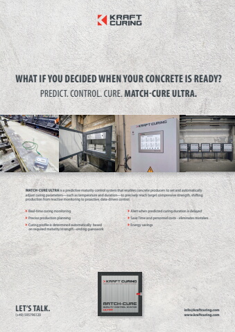 info@kraftcuring.com www.kraftcuring.comWHAT IF YOU DECIDED WHEN YOUR CONCRETE IS READY?PREDICT. CONTROL. CURE. MATCH-CURE ULTRA.MATCH-CURE ULTRA is a predictive maturity control system that enables concrete producers to set and automatically adjust curing parameters%u2014such as temperature and duration%u2014to precisely reach target compressive strength, shifting production from reactive monitoring to proactive, data-driven control.%uf07d Real-time curing monitoring %uf07d Precise production planning %uf07d Curing profi le is determined automatically based on required maturity/strength - ending guesswork%uf07d Alert when predicted curing duration is delayed%uf07d Save Time and personnel costs - eliminates mistakes%uf07d Energy savingsLET%u2019S TALK.(+49) 595796120
