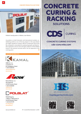 CONCRETE PRODUCTS & CAST STONEwww.cpi-worldwide.com CPI %u2013 Concrete Plant International %u2013 6 | 2025its position on both domestic and international markets, establishing itself as one of the key players in this specialized yet highly significant industry. Recent investments show that the company is committed to sustained growth and that further expansion and an even stronger presence of the Polblat brand in the precast concrete sector can be expected in the coming years. nFURTHER INFORMATIONKAMAL Sp. z o.o. ul. Kamienna 74 85-726 Bydgoszcz, Poland T +48 52 3435510 sekretariat@kamal.plwww.kamal.plRector Polska Sp. z o.o. Ulica %u015al%u0105ska 64e32-500 Chrzan%u00f3w, Poland T +48 32 6260260 info@rector.plwww.rector.plPOLBLAT Kopyt Sp. J. Mak%u00f3w, ul. Ma%u0142%u0119czy%u0144ska 34 26-640 Skaryszew, Poland T +48 535 073799 biuro@polblat.pl www.polblat.plPolblat%u2019s headquarters in Mak%u00f3w, near Radom.cds-concrete.com hsanlagentechnik.comcds-concrete.comCONCRETE CURING SYSTEMShsanlagentechnik.comCONCRETECURING & RACKINGSOLUTIONS